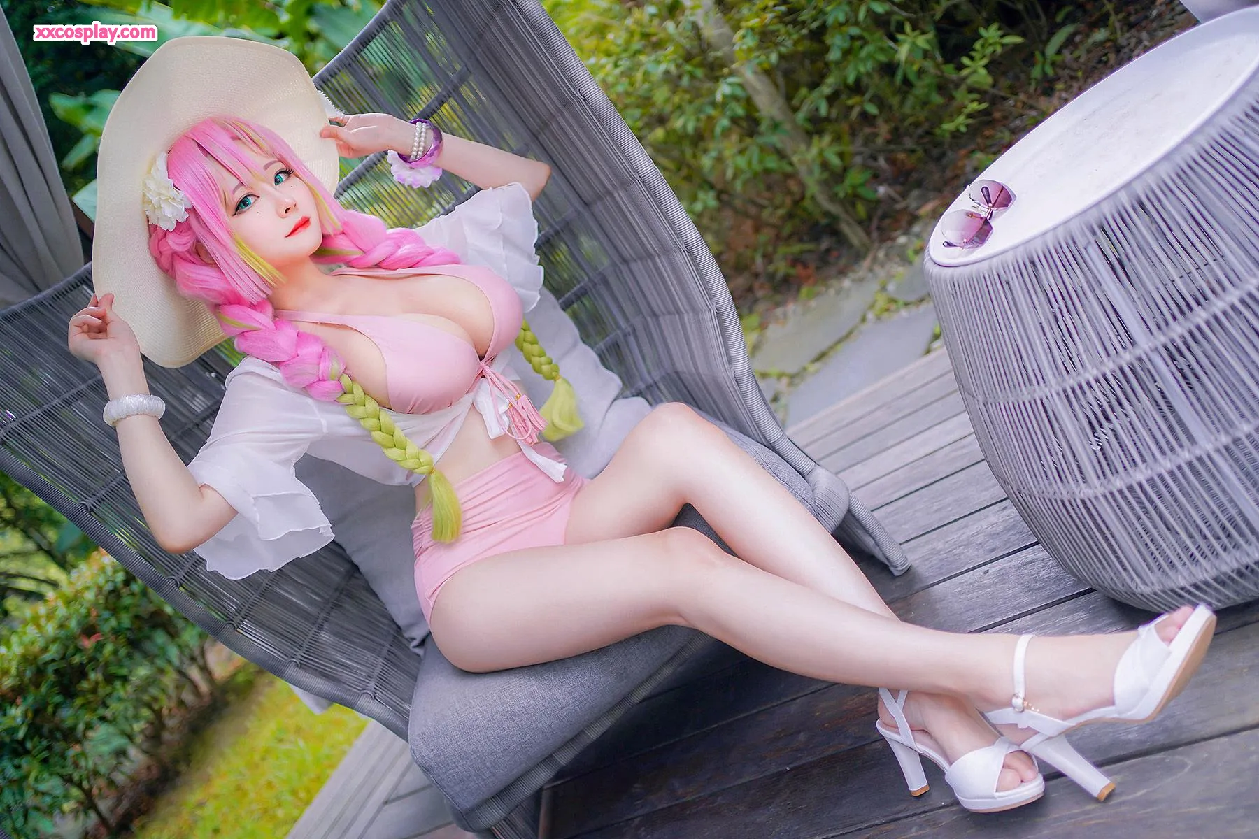 Arty亚缇 as Mitsuri Kanroji - Demon Slayer Cosplay Arty亚缇 Mitsuri Kanroji Demon Slayer Cosplay Swimsuit