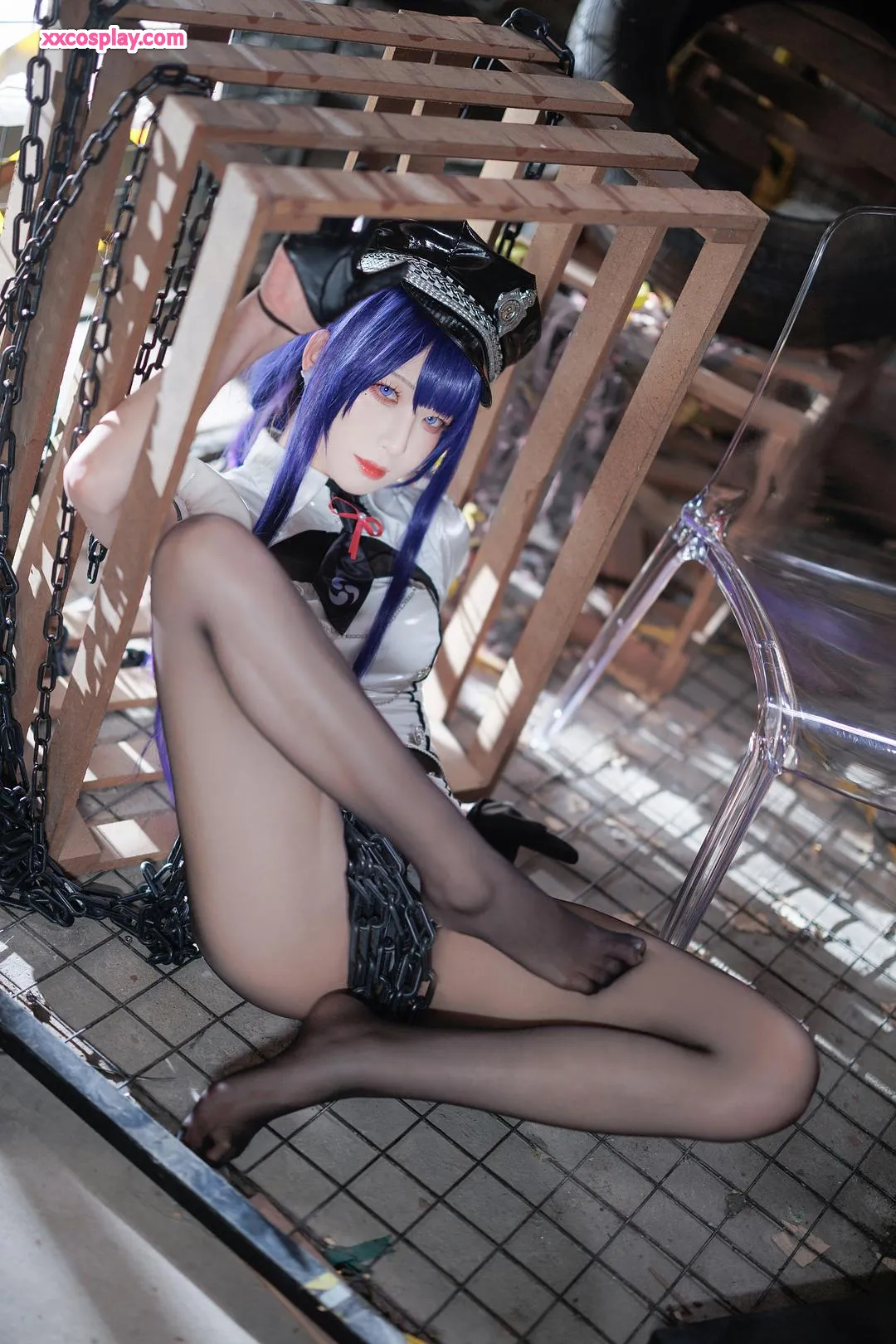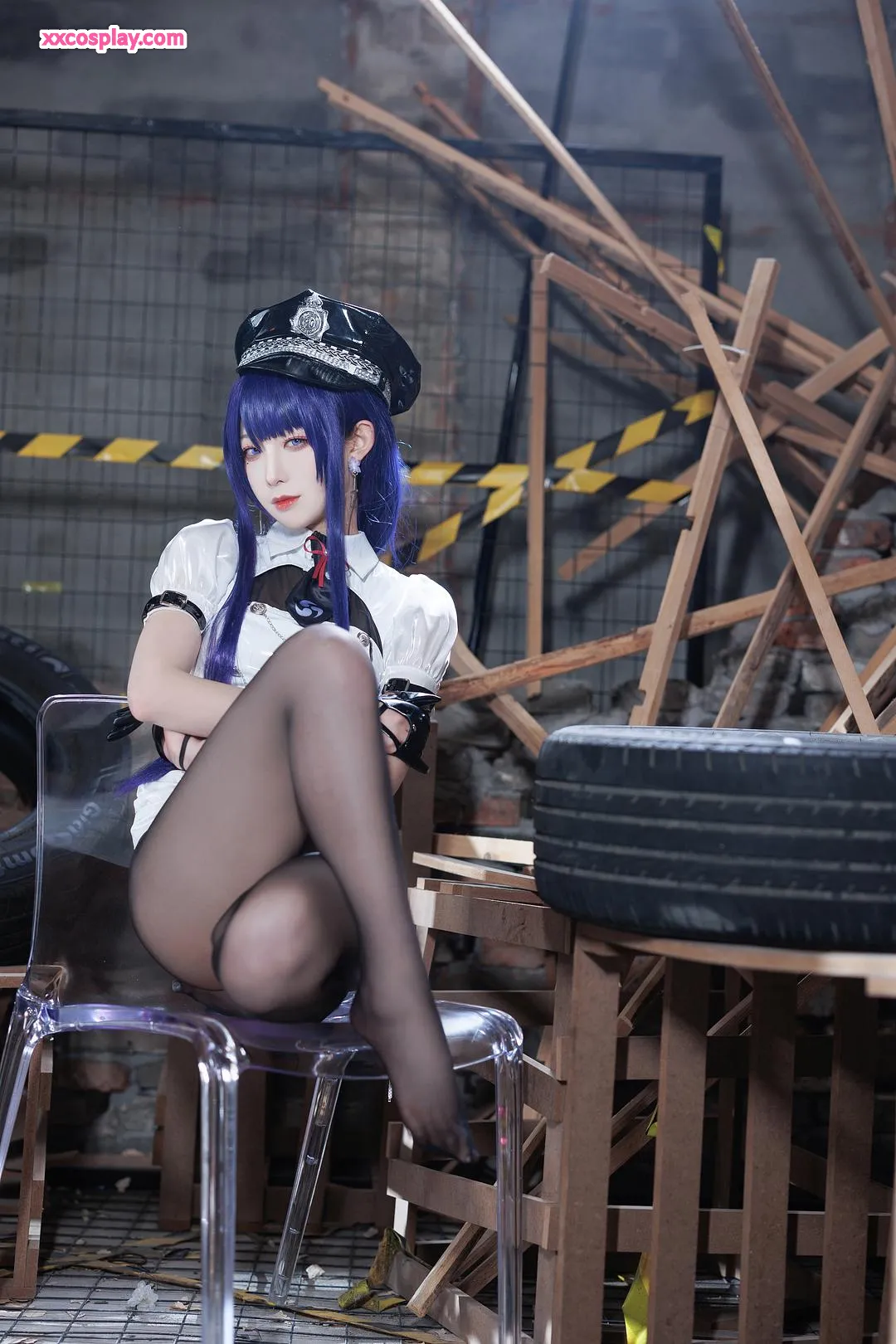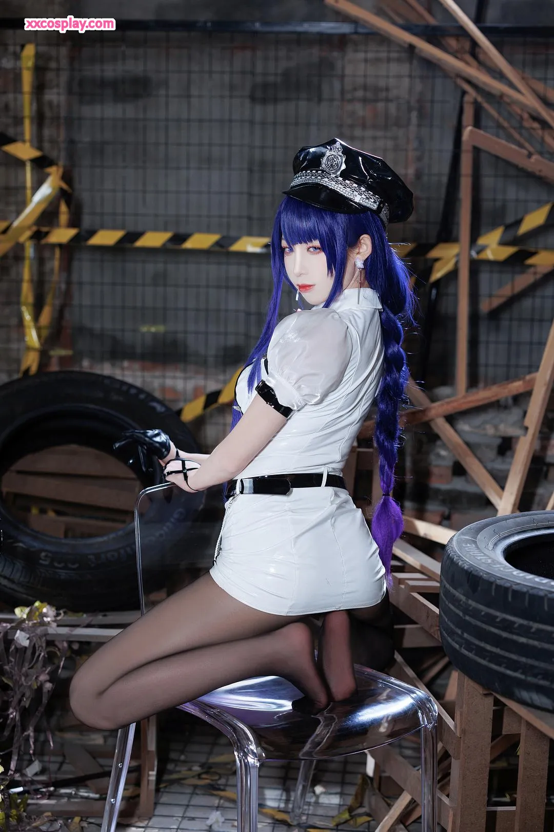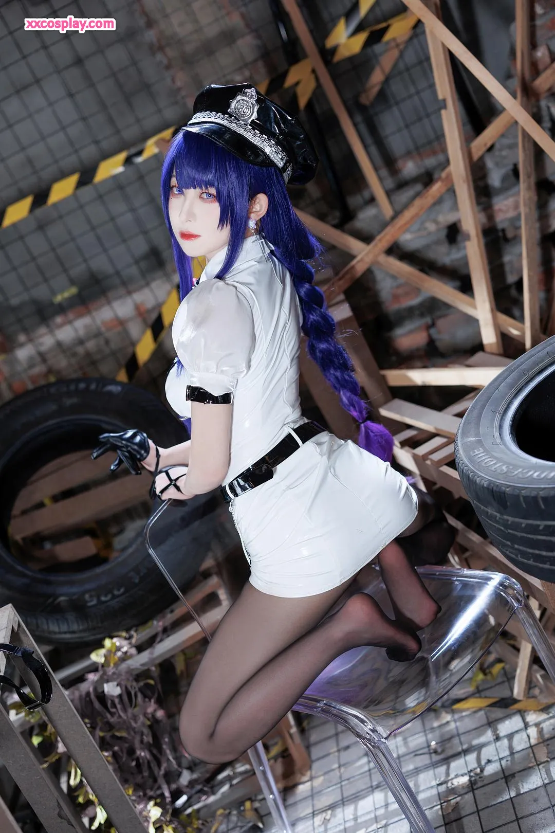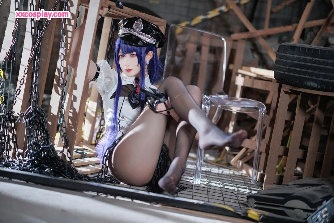Feng JiangJangV: Raiden Shogun Sexy Police Cosplay 封疆疆v Raiden Shogun Genshin Impact Police Police Uniform