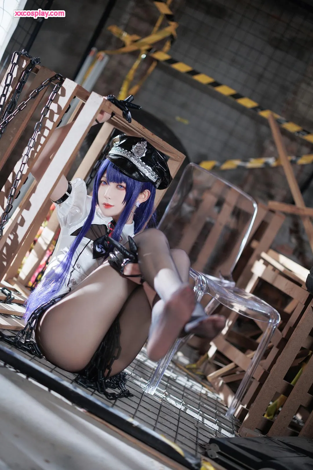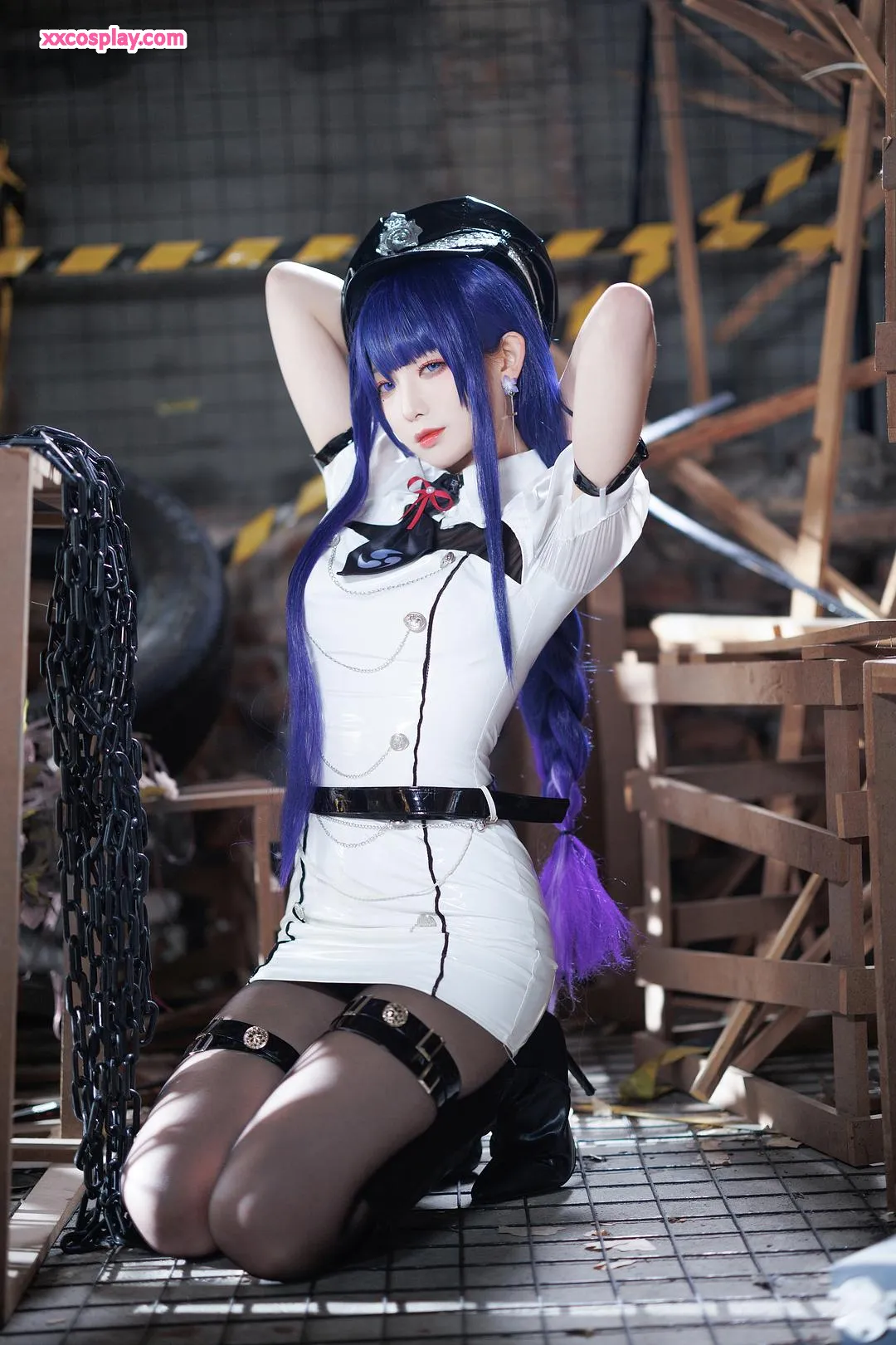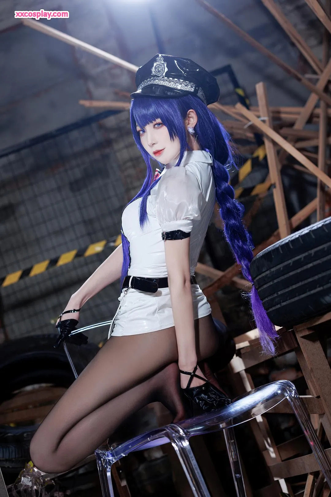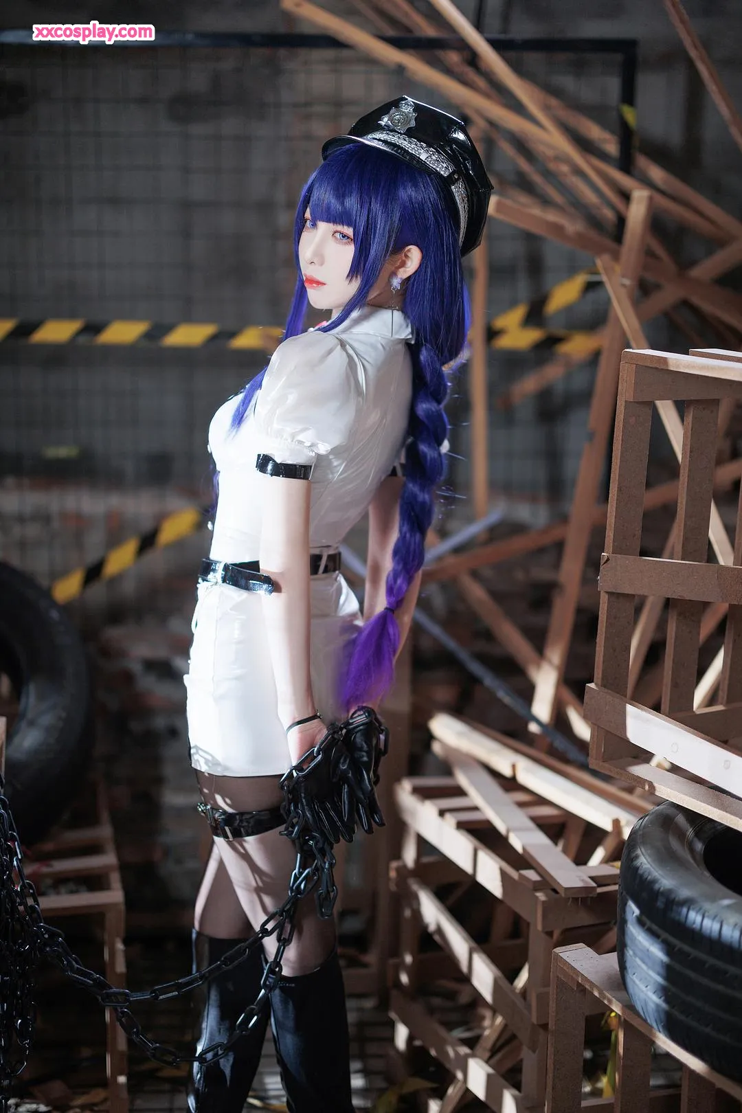 Feng JiangJangV: Raiden Shogun Sexy Police Cosplay 封疆疆v Raiden Shogun Genshin Impact Police Police Uniform