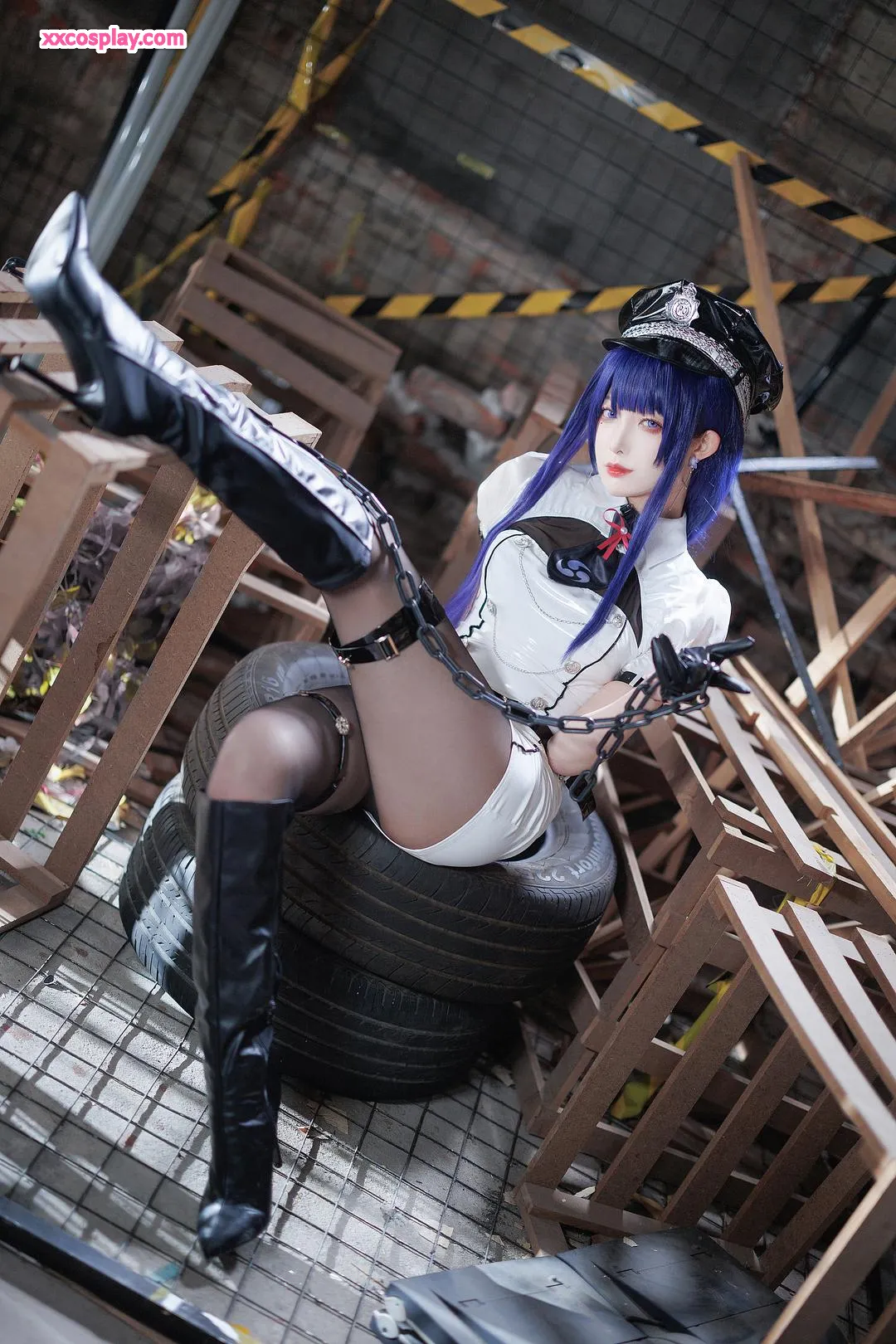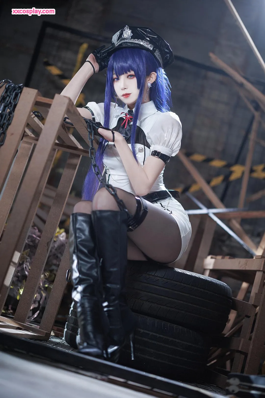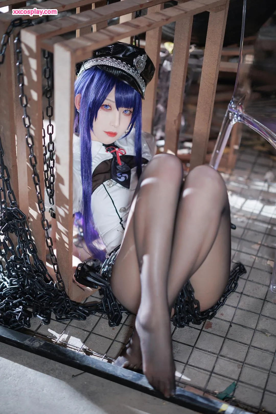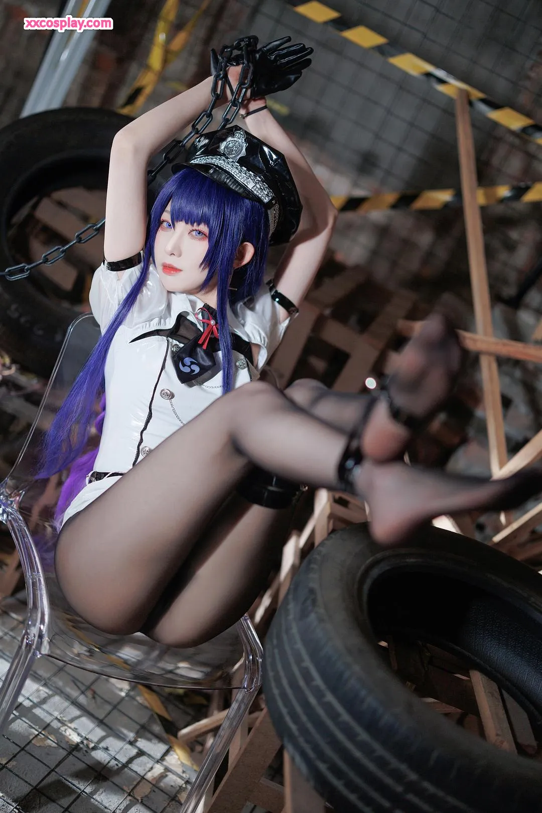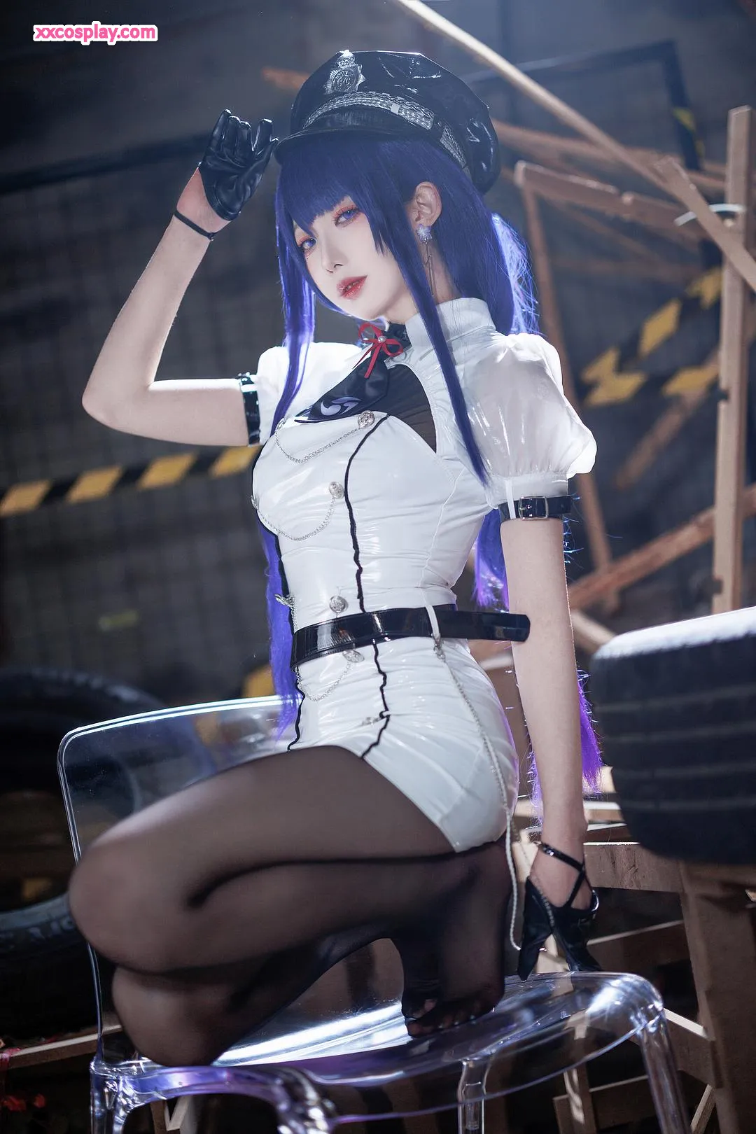 Feng JiangJangV: Raiden Shogun Sexy Police Cosplay 封疆疆v Raiden Shogun Genshin Impact Police Police Uniform