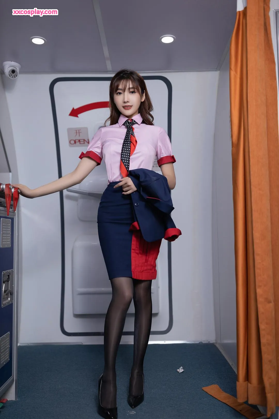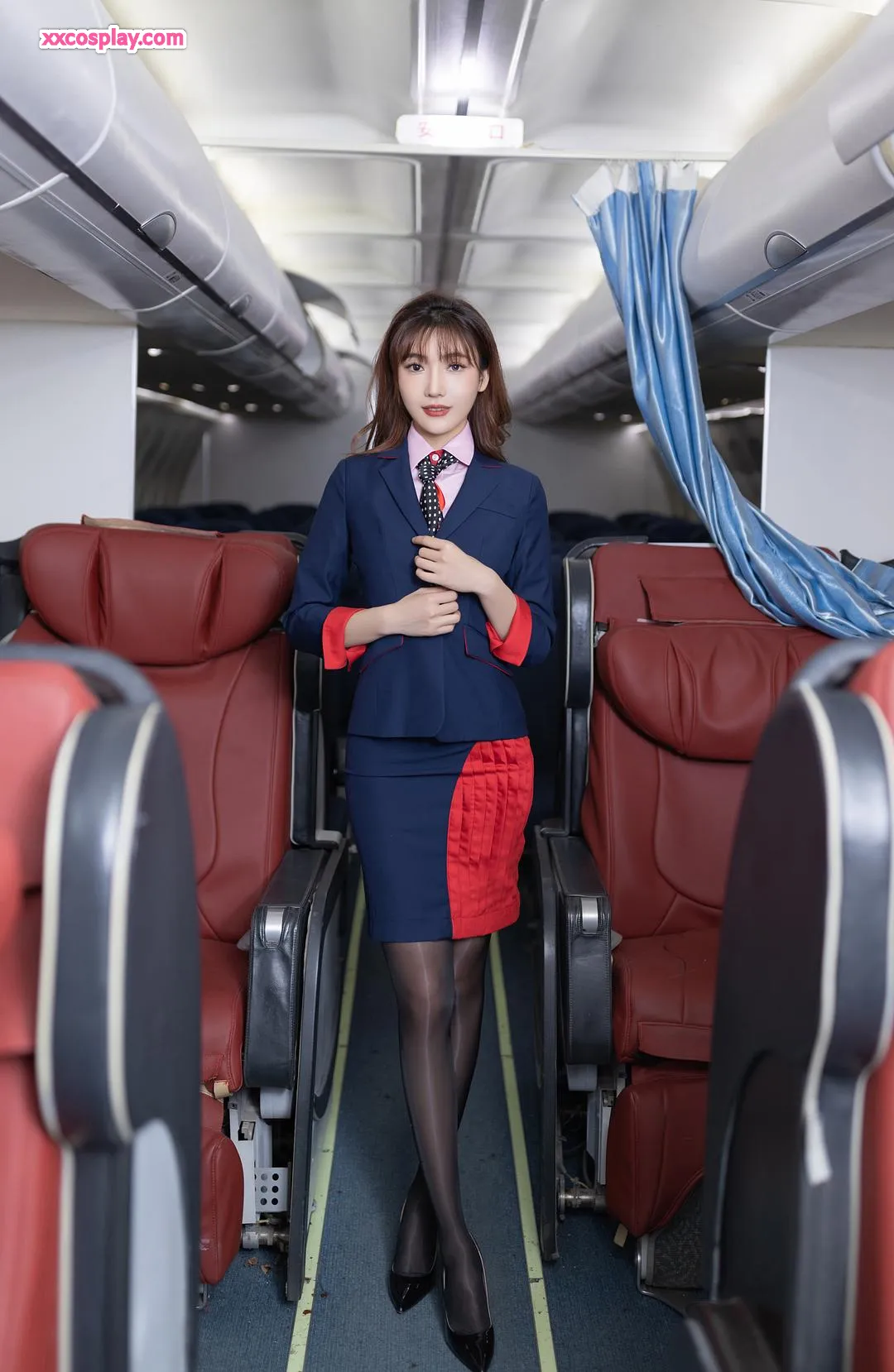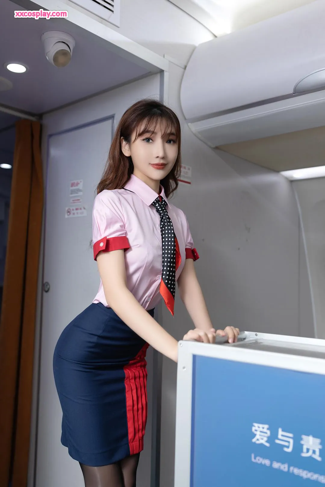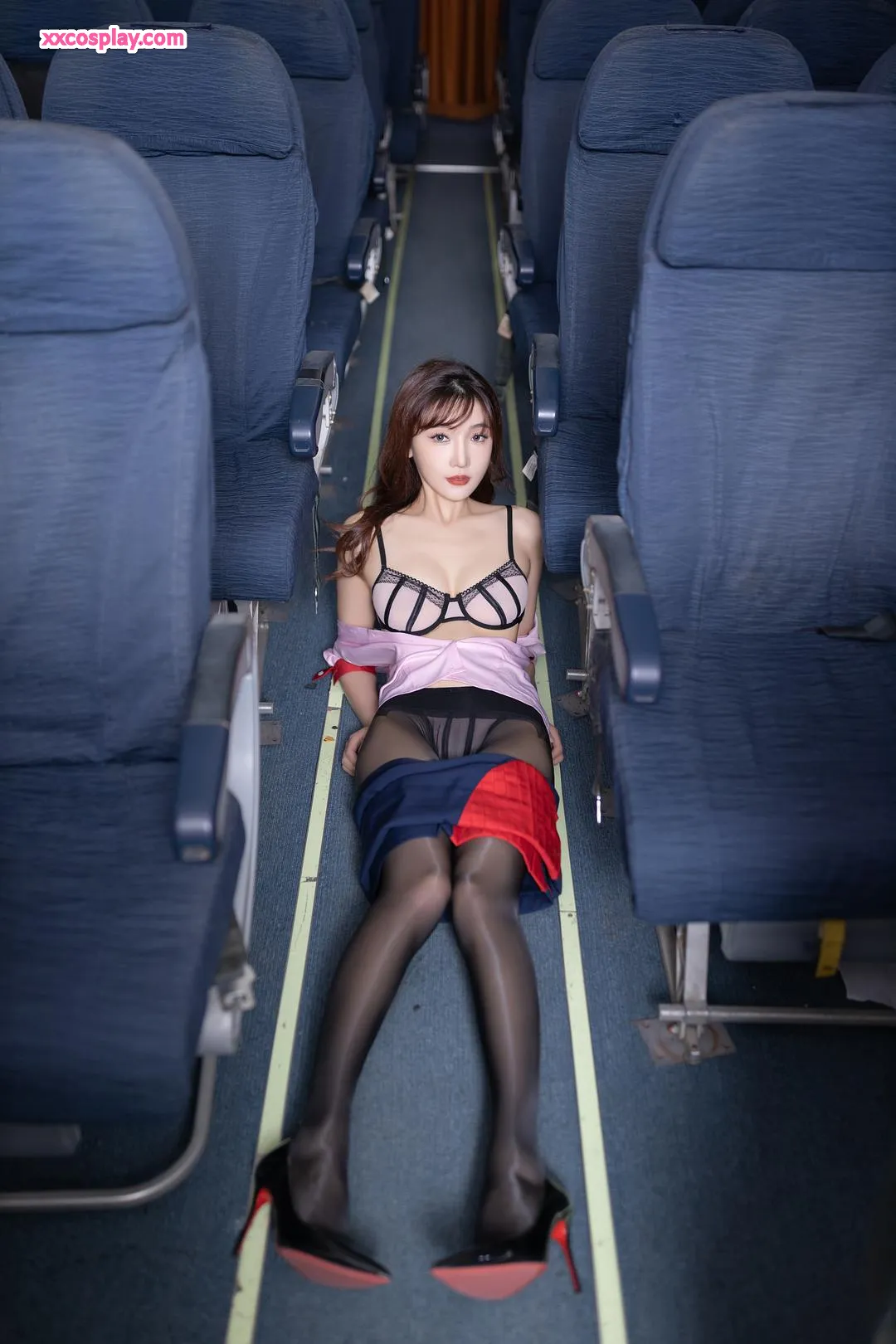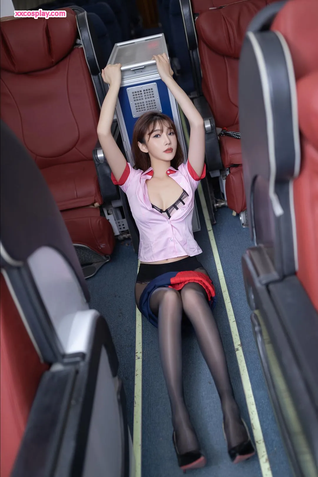Lu Xuanxuan & An Ran: Pink Flight Attendant Seduction 陆萱萱&安然 Flight Attendant Stockings High Heels Lingerie