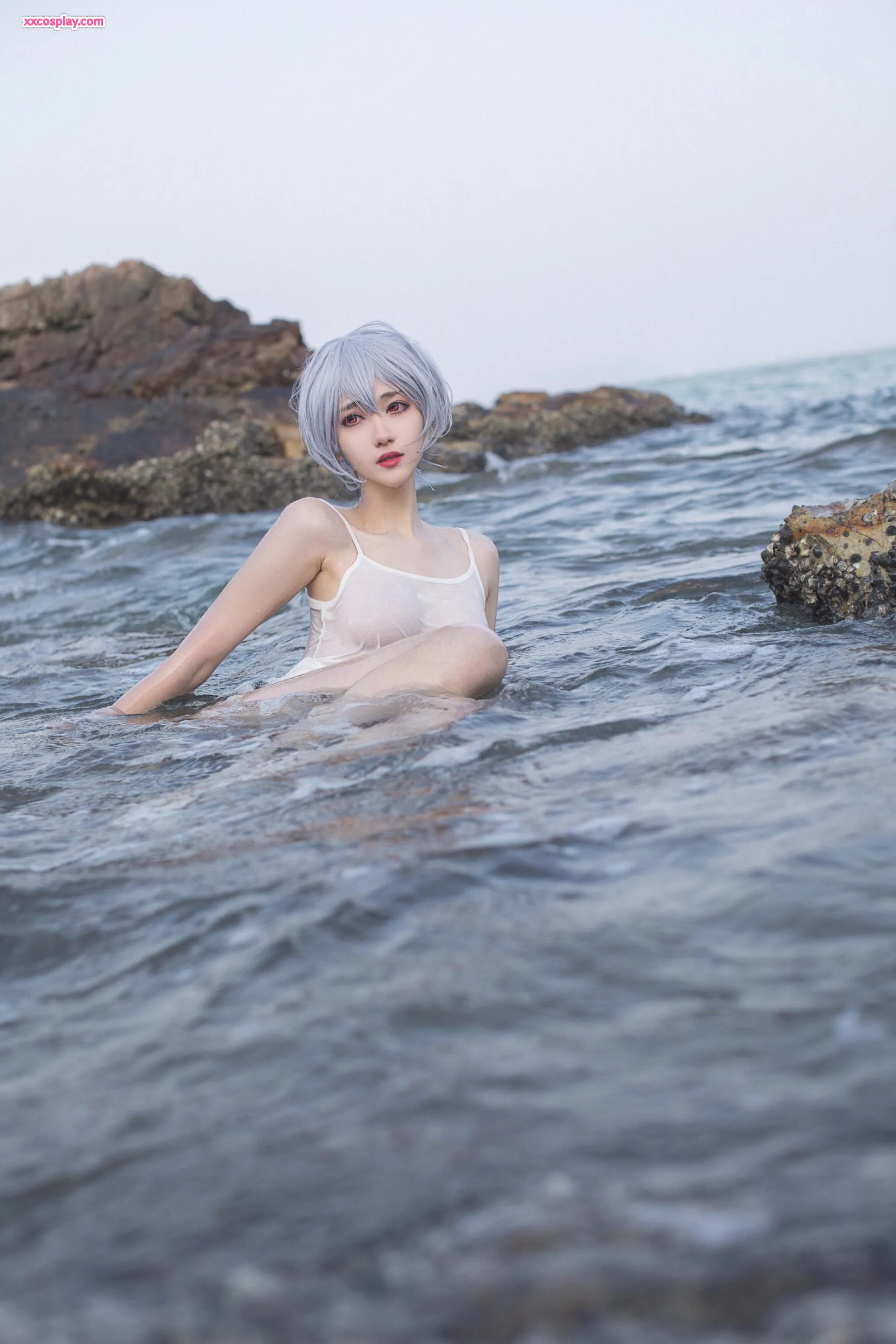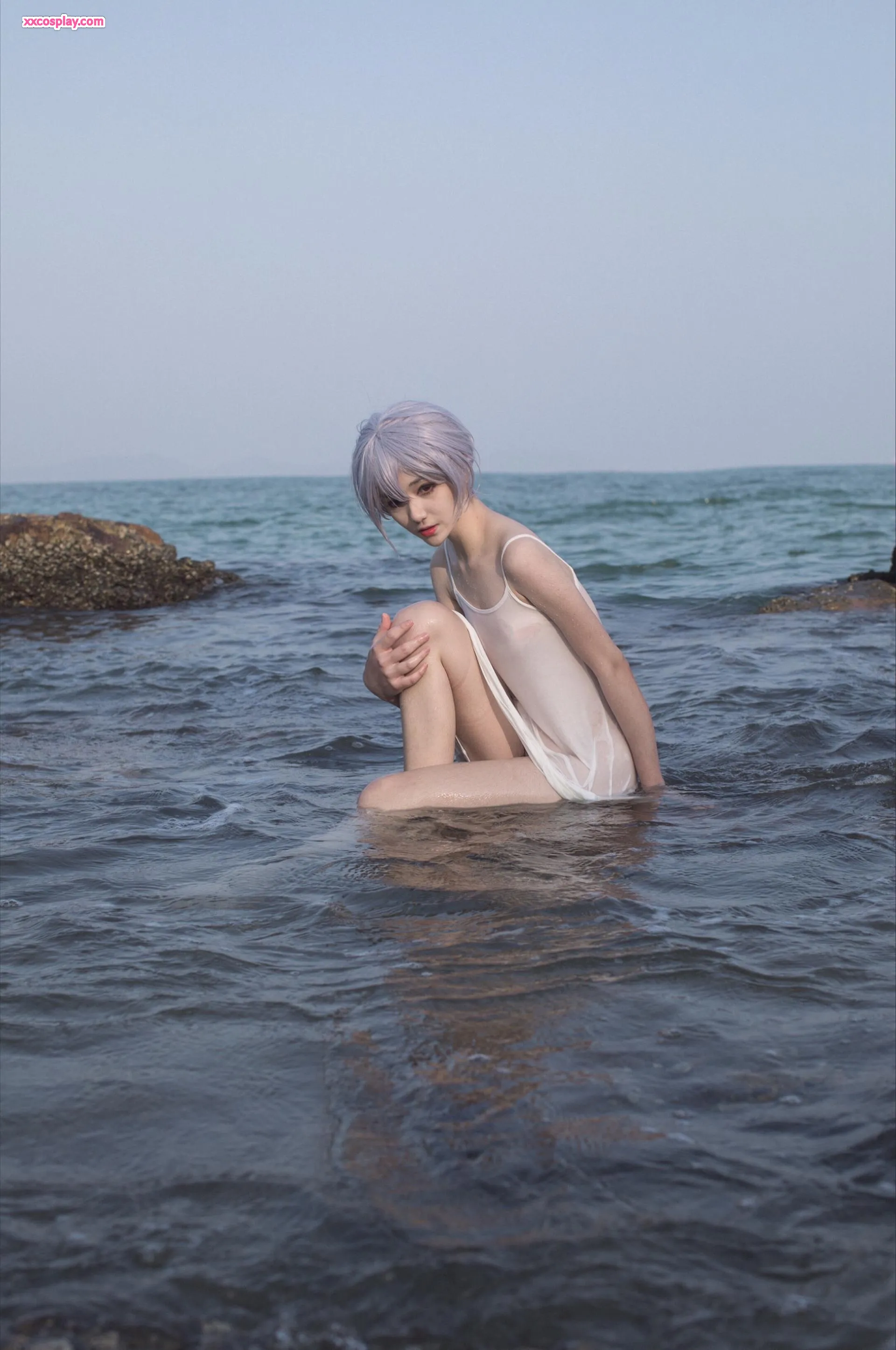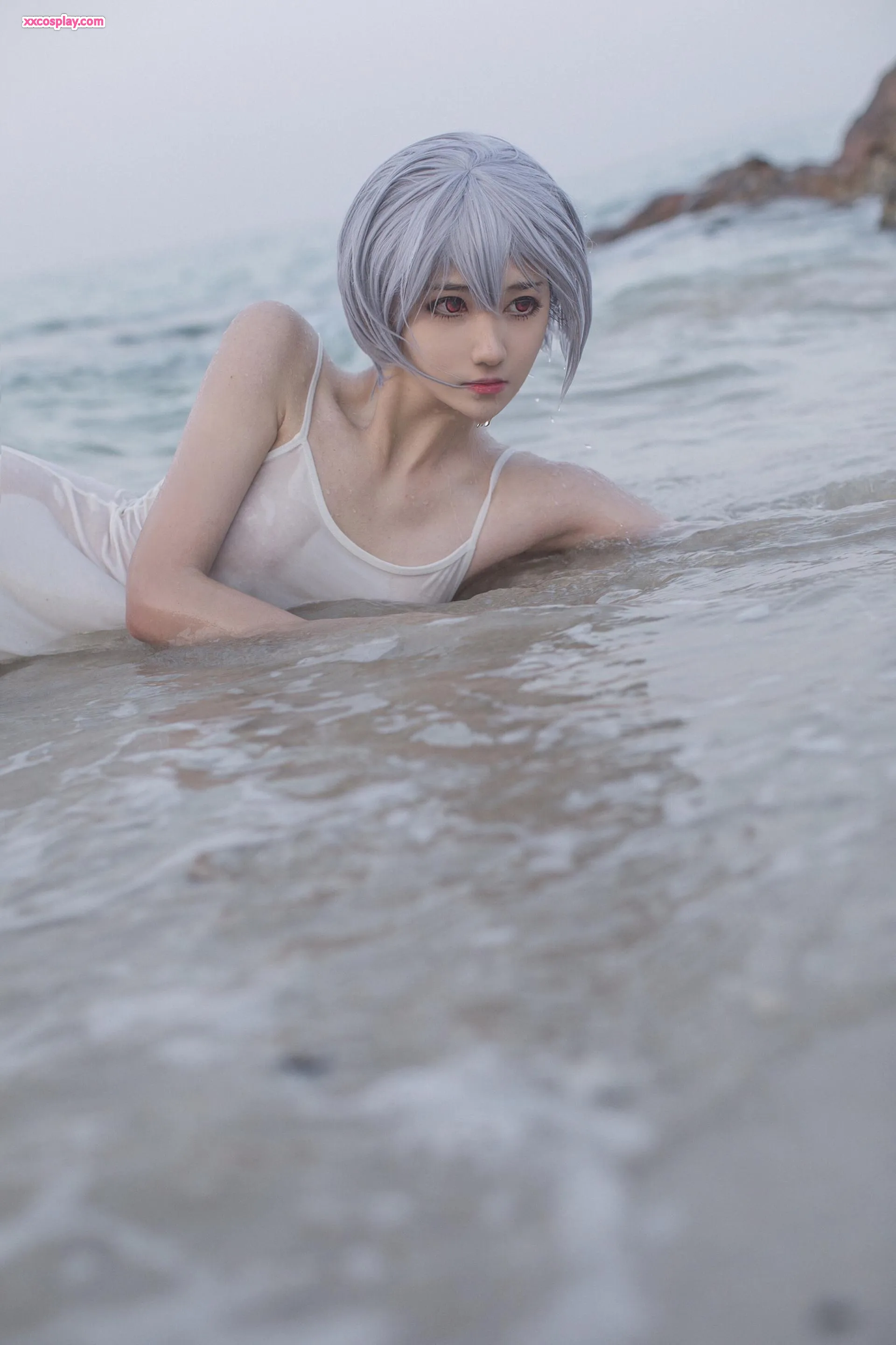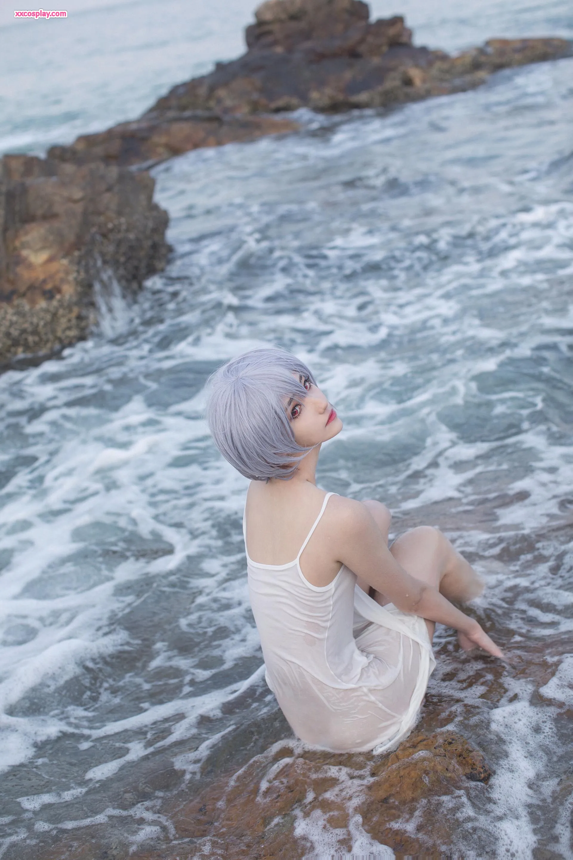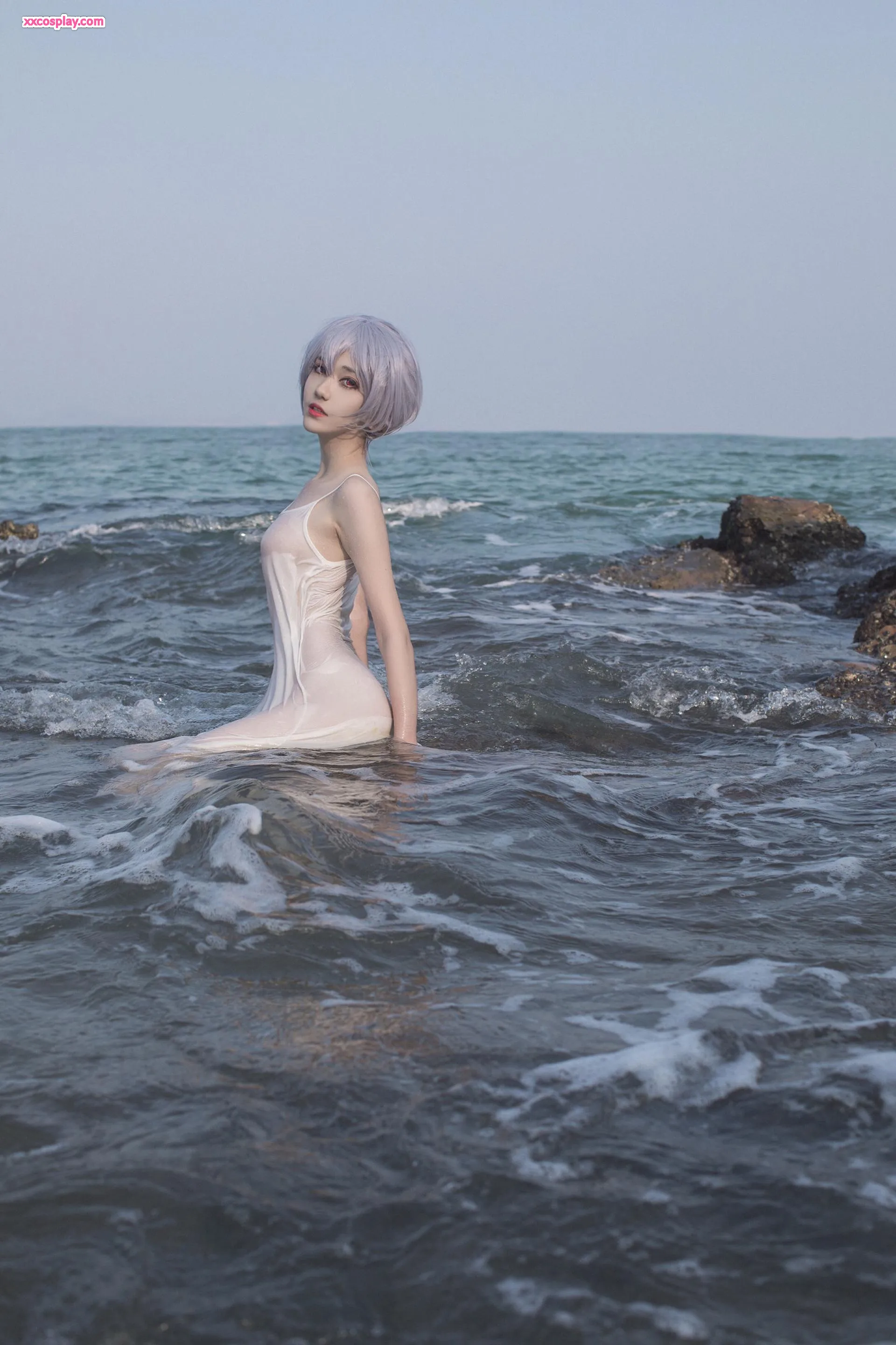 Minamimomo Momoko as Rei Ayanami in White Dress 南桃Momoko Rei Ayanami Neon Genesis Evangelion Cosplay White Dress
