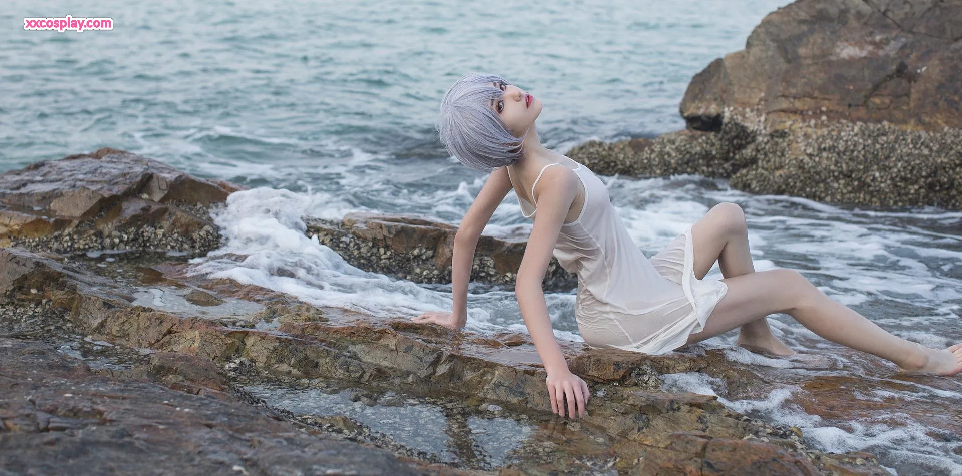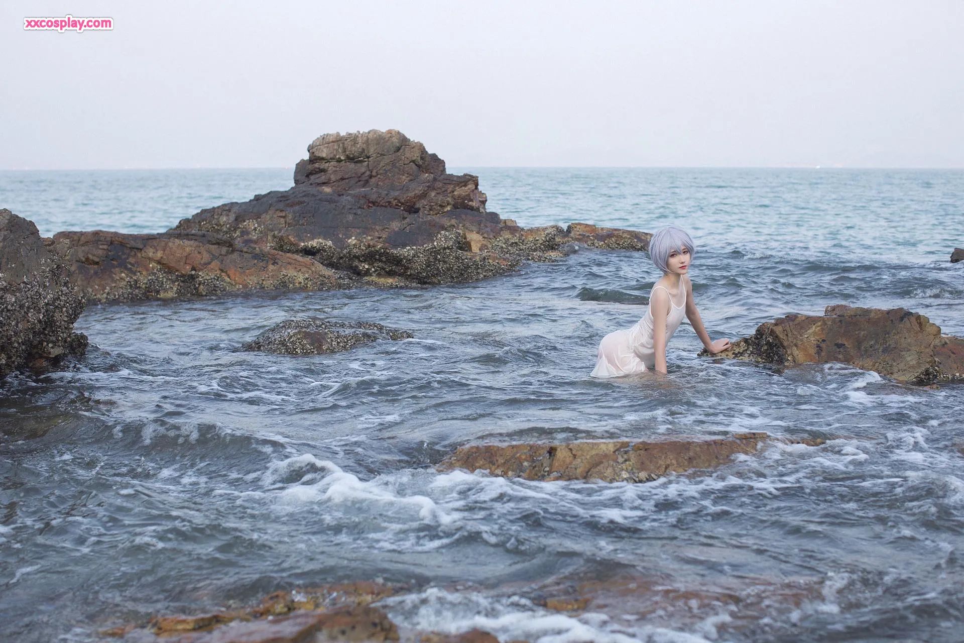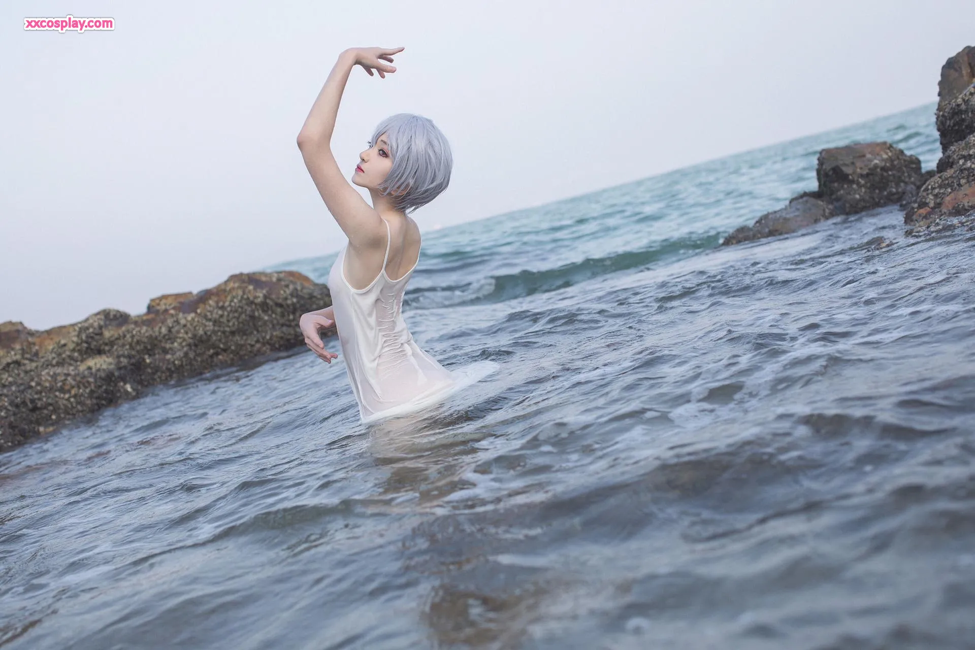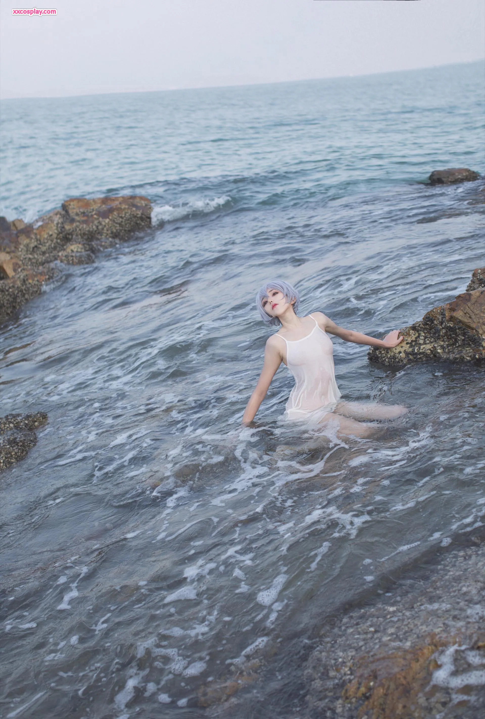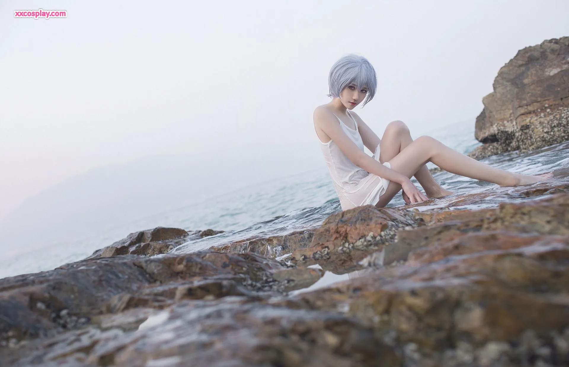 Minamimomo Momoko as Rei Ayanami in White Dress 南桃Momoko Rei Ayanami Neon Genesis Evangelion Cosplay White Dress