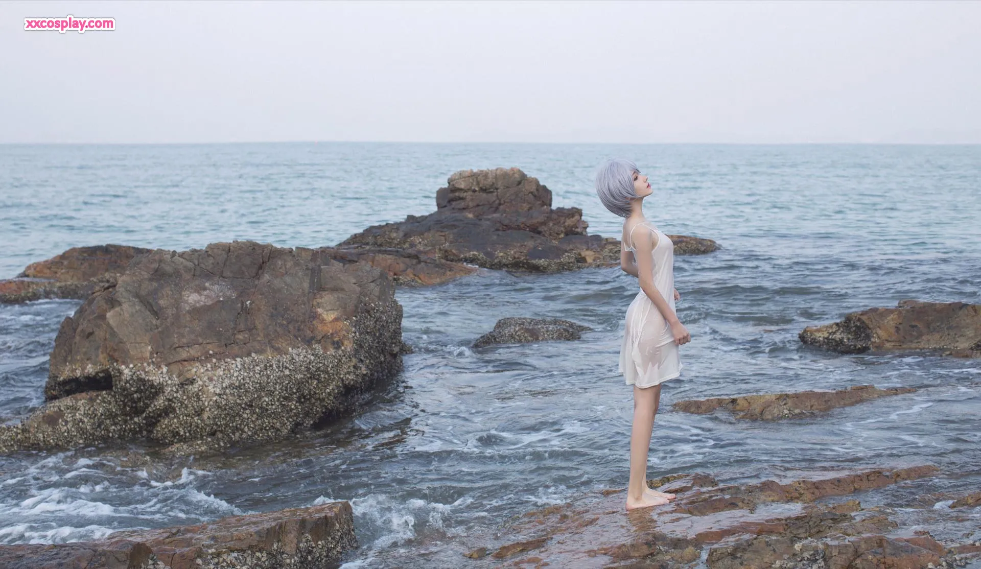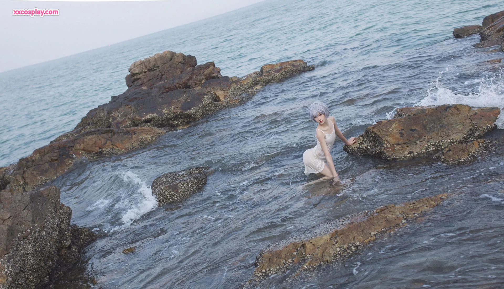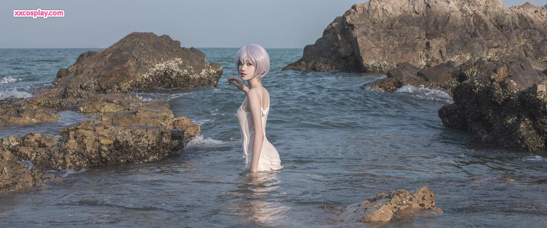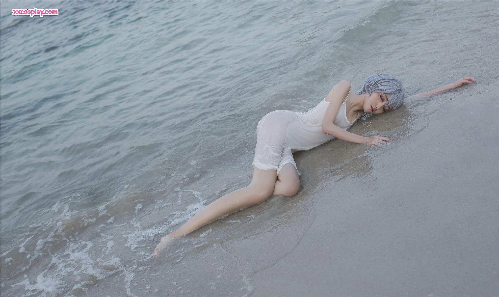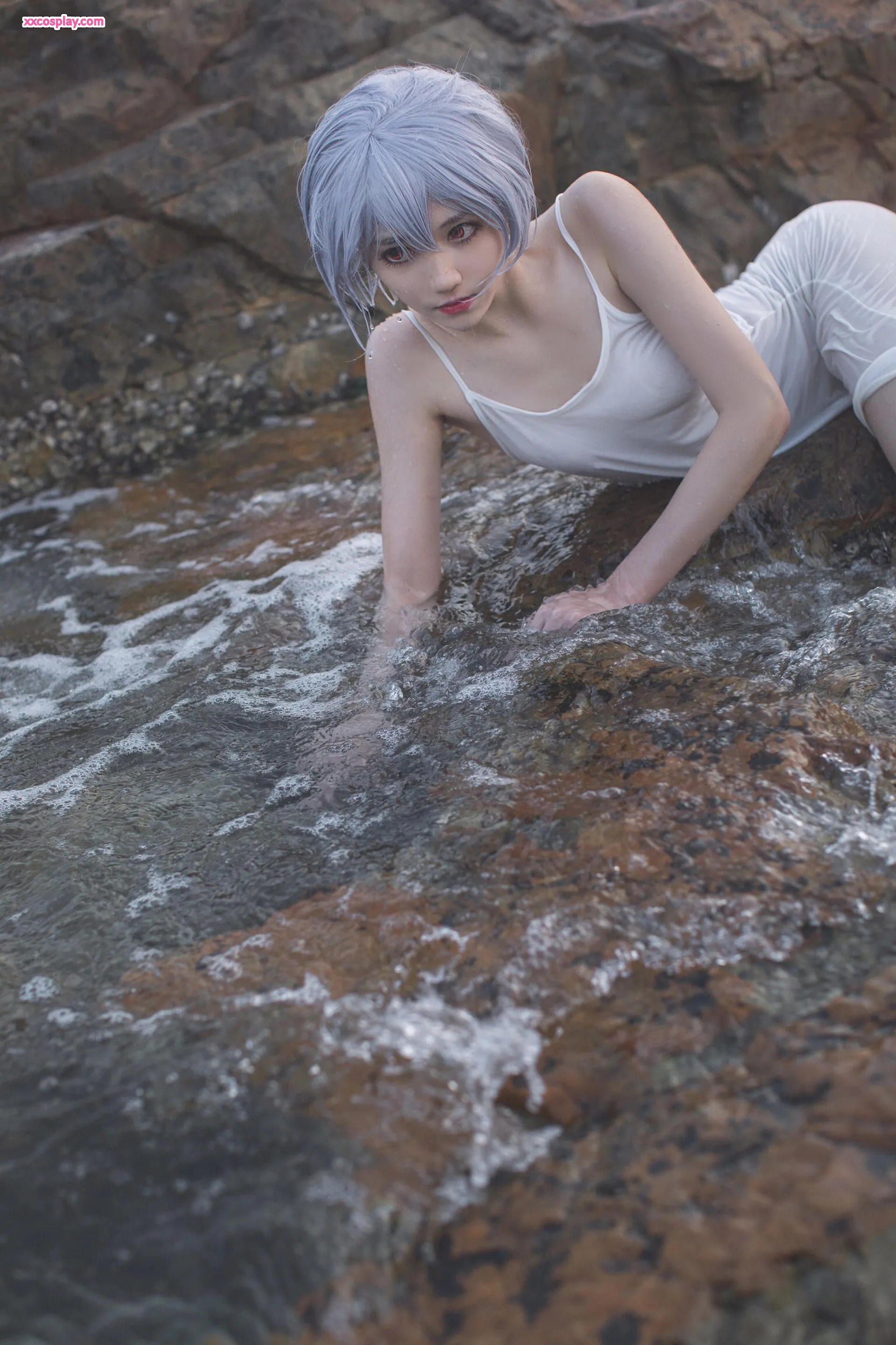 Minamimomo Momoko as Rei Ayanami in White Dress 南桃Momoko Rei Ayanami Neon Genesis Evangelion Cosplay White Dress