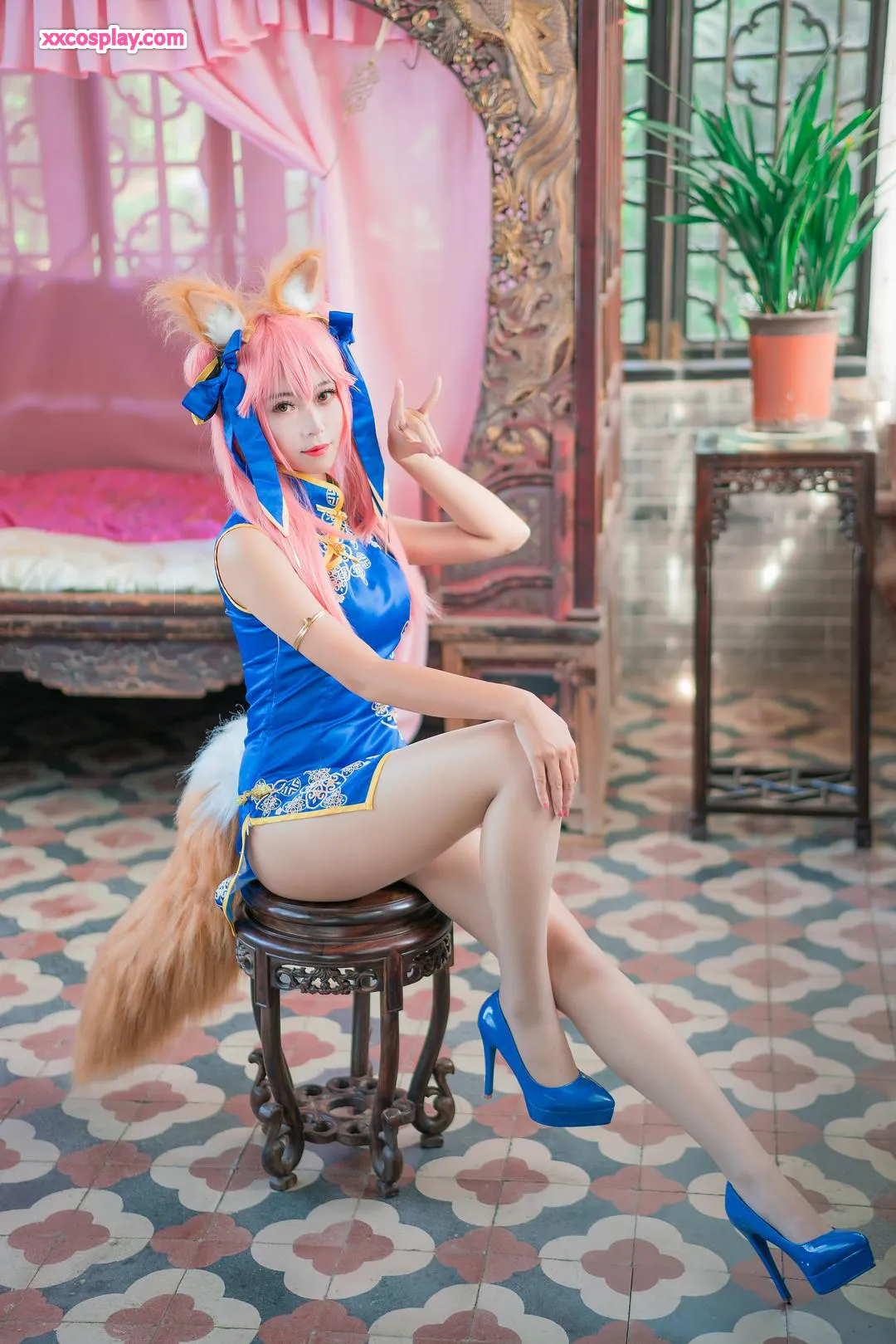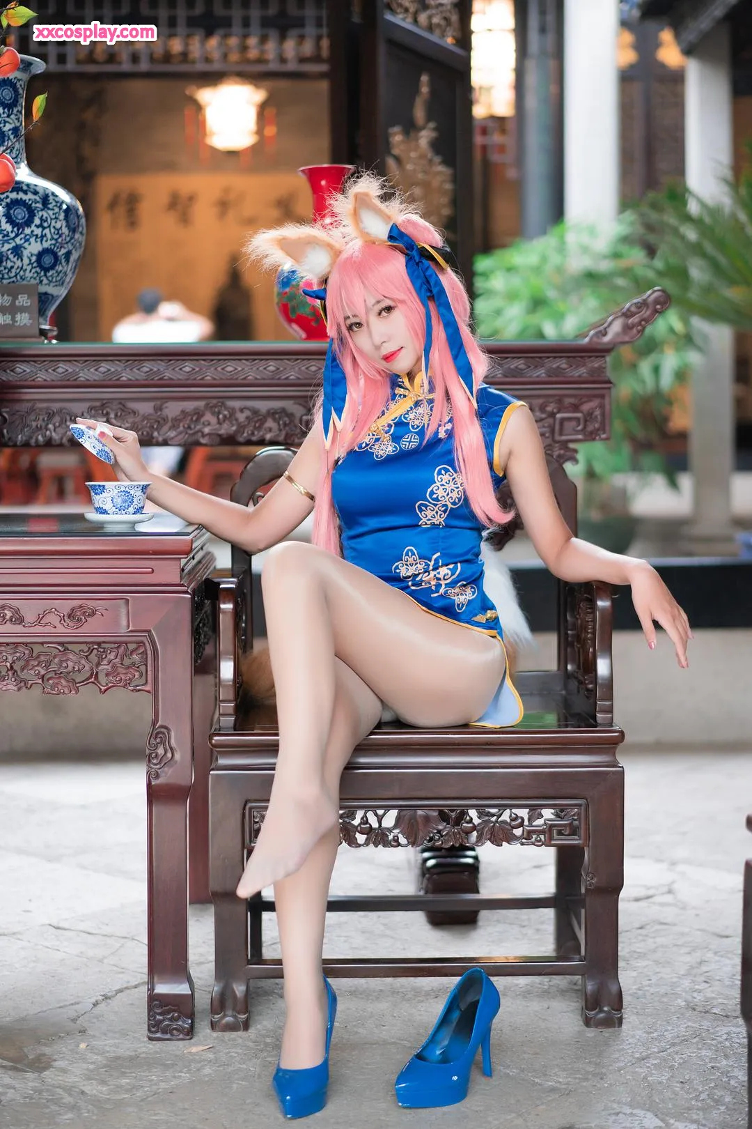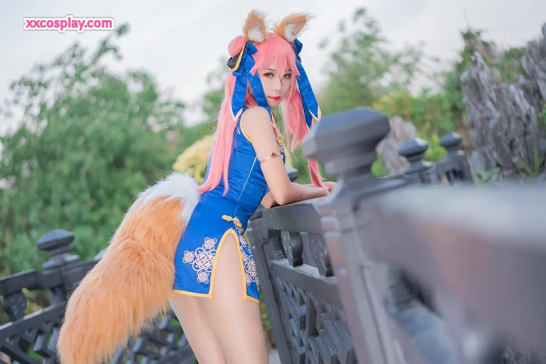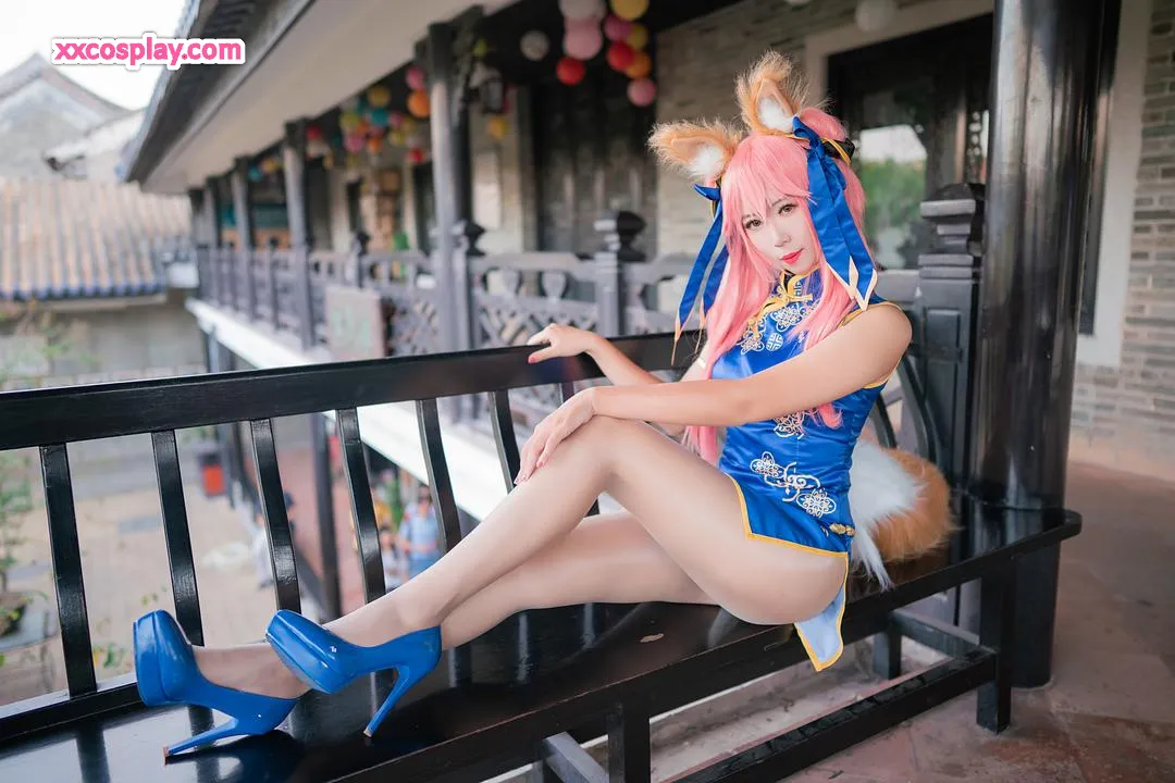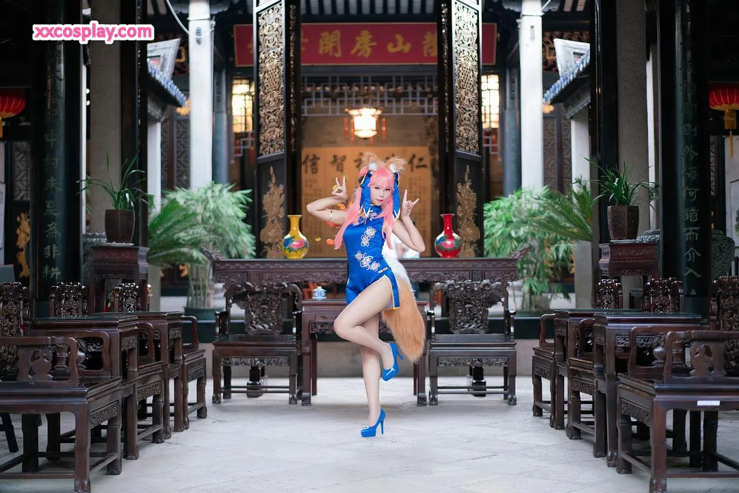 Money冷冷 as Tamamo-no-Mae in Blue Qipao