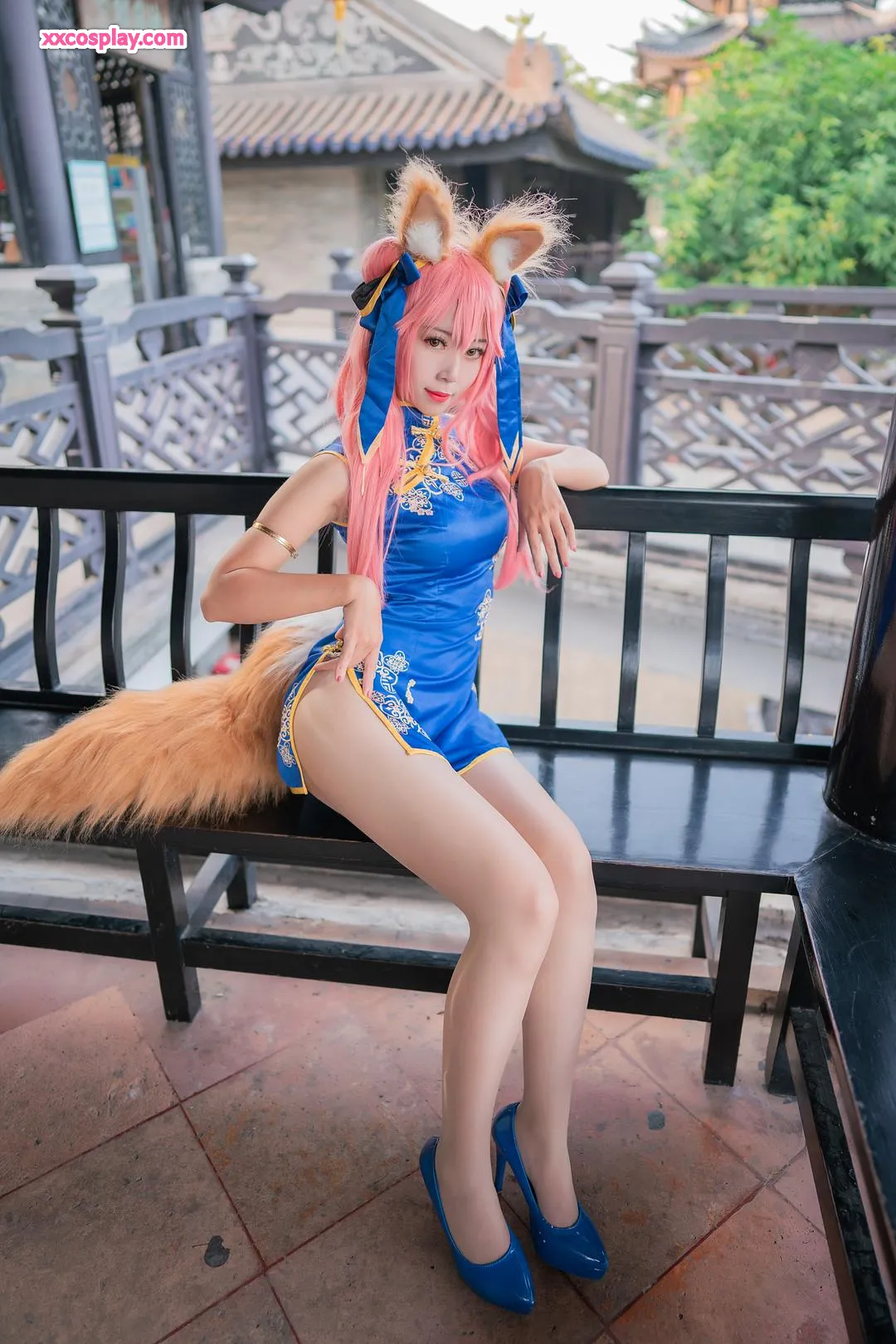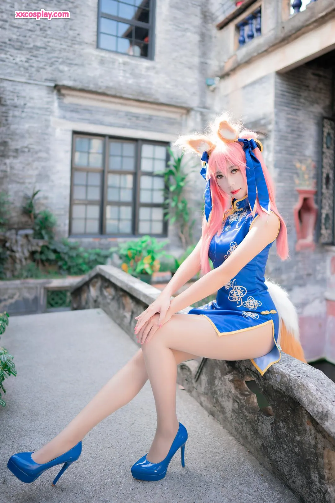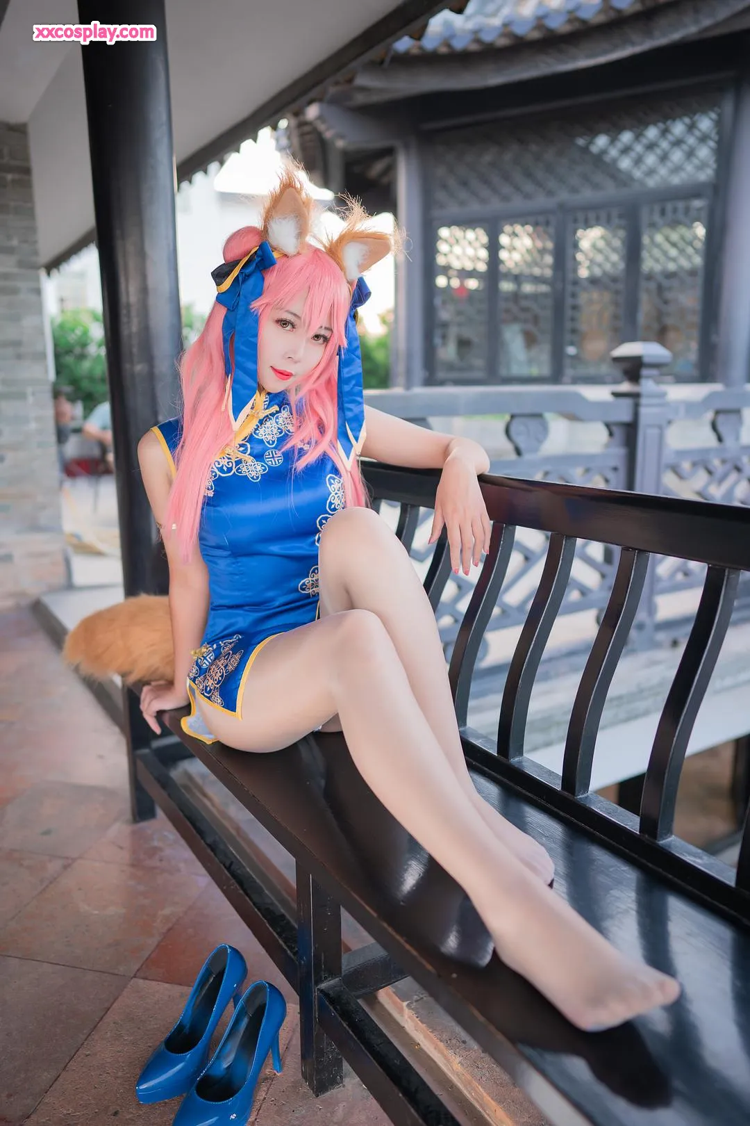 Money冷冷 as Tamamo-no-Mae in Blue Qipao