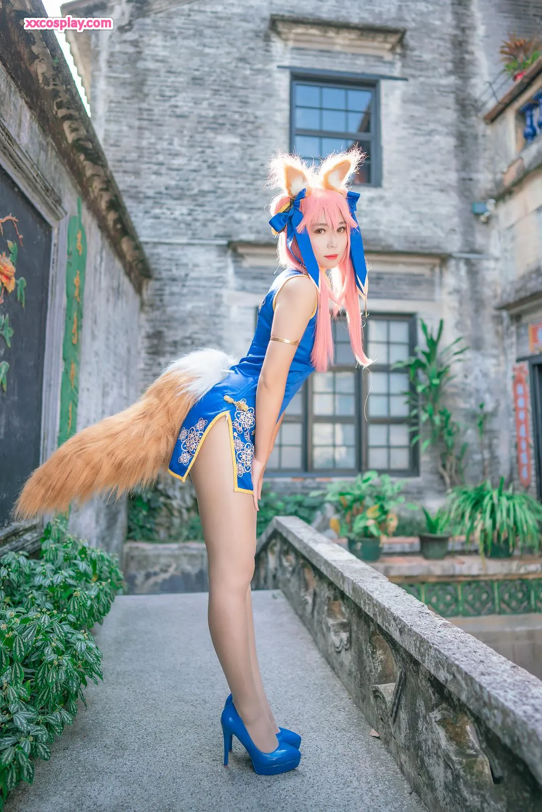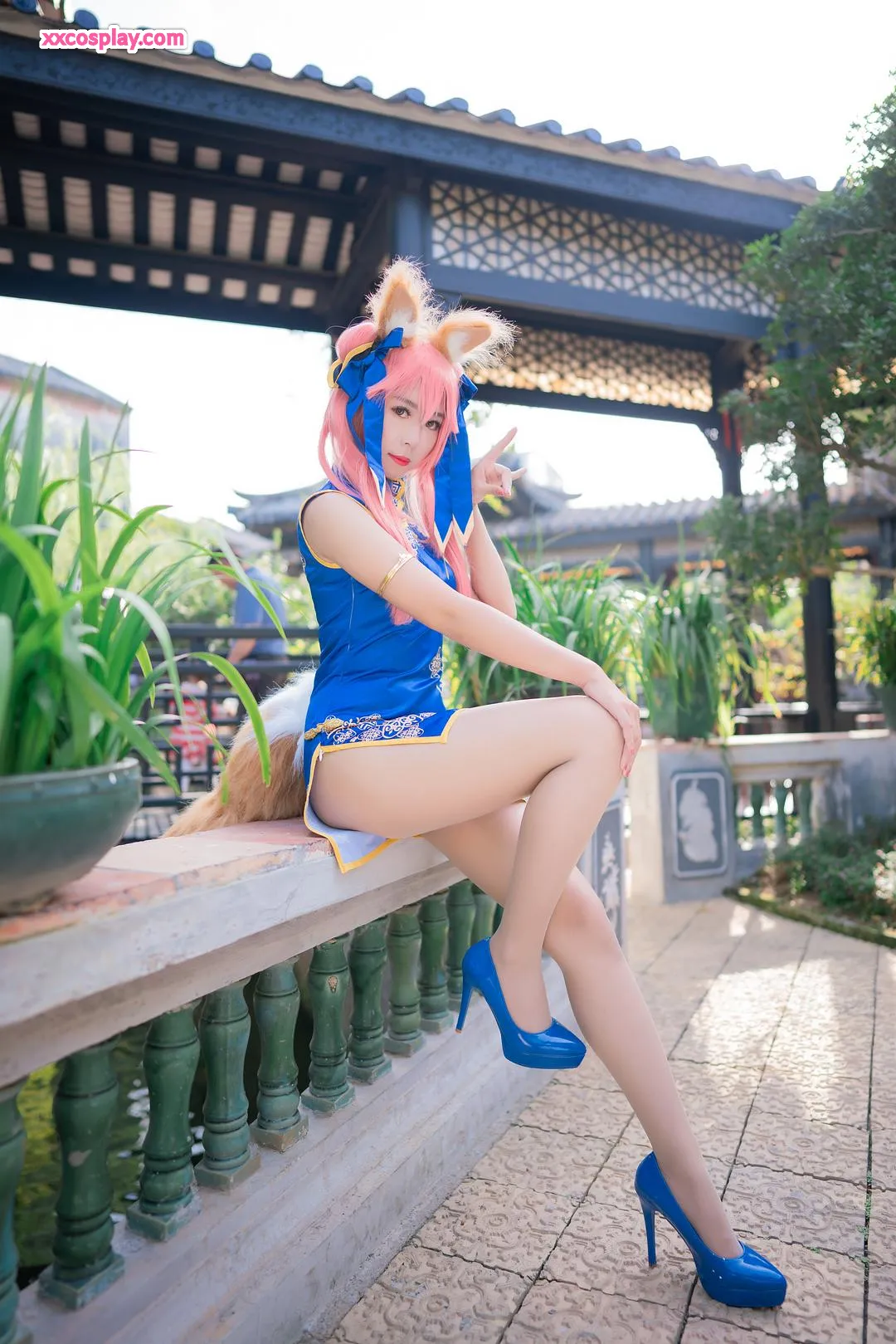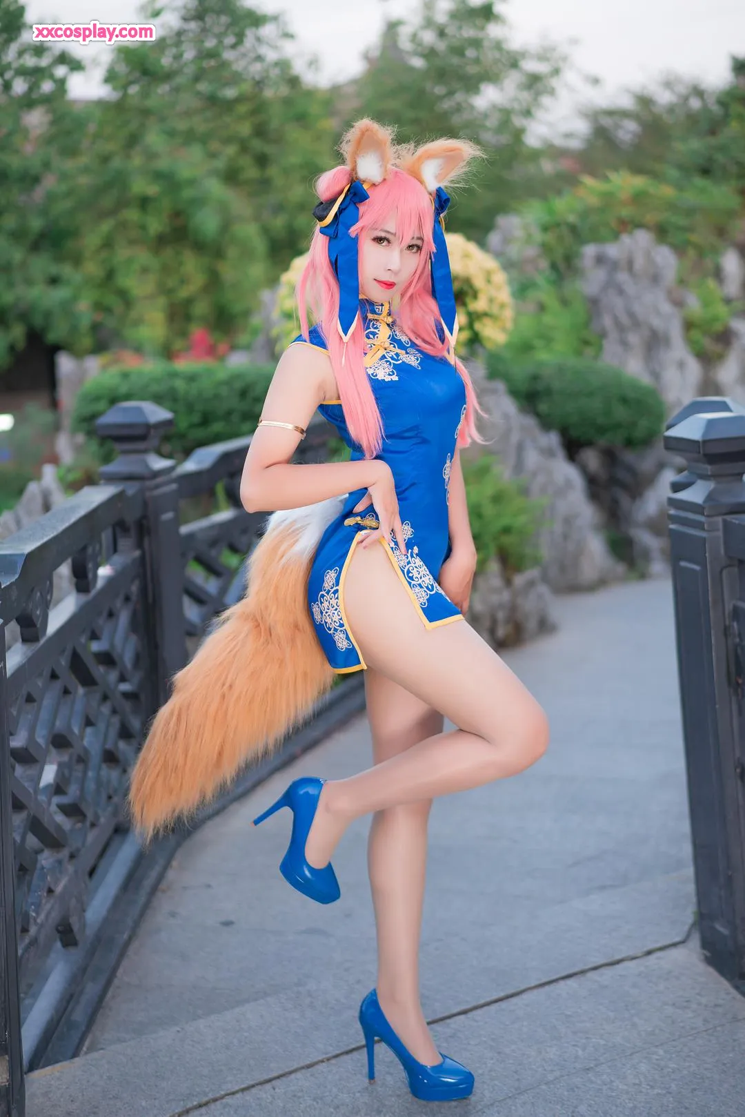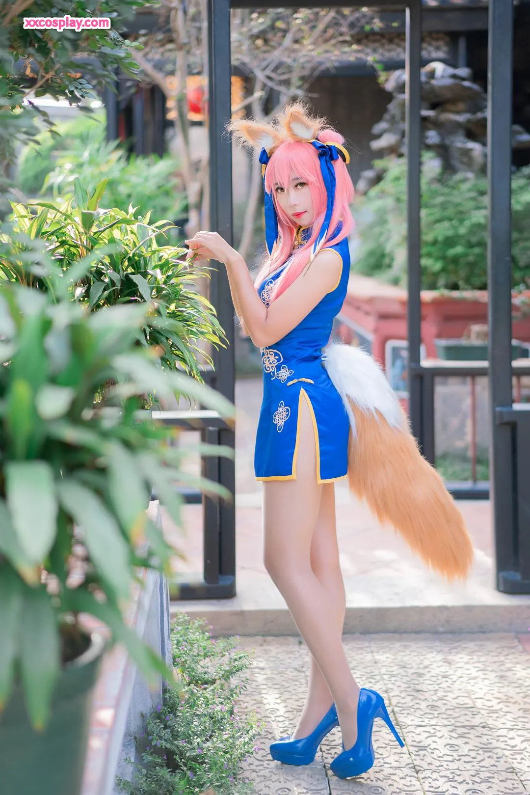 Money冷冷 as Tamamo-no-Mae in Blue Qipao