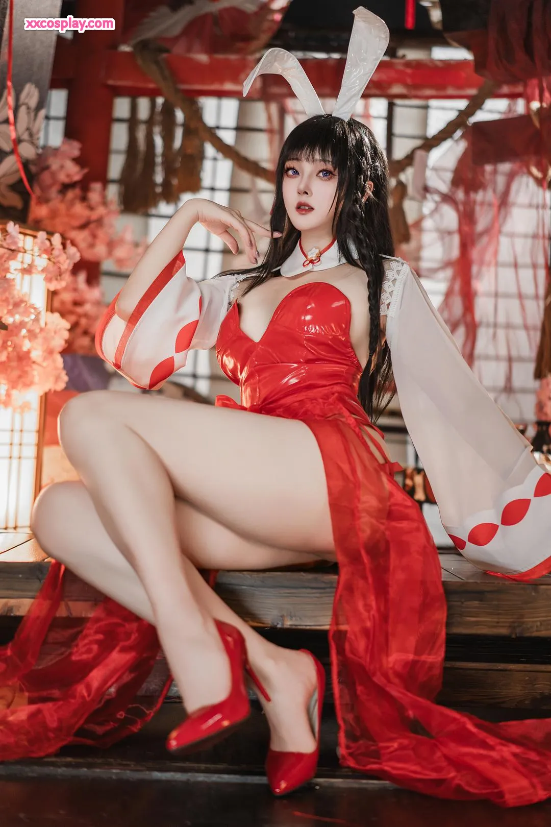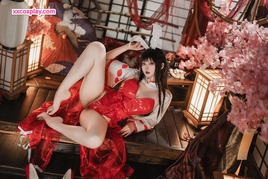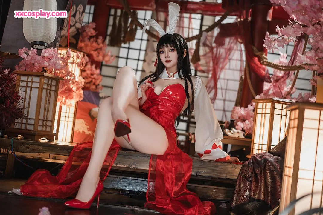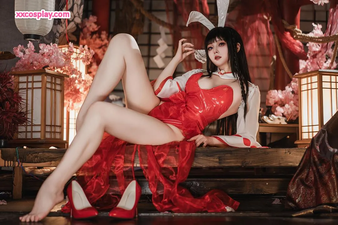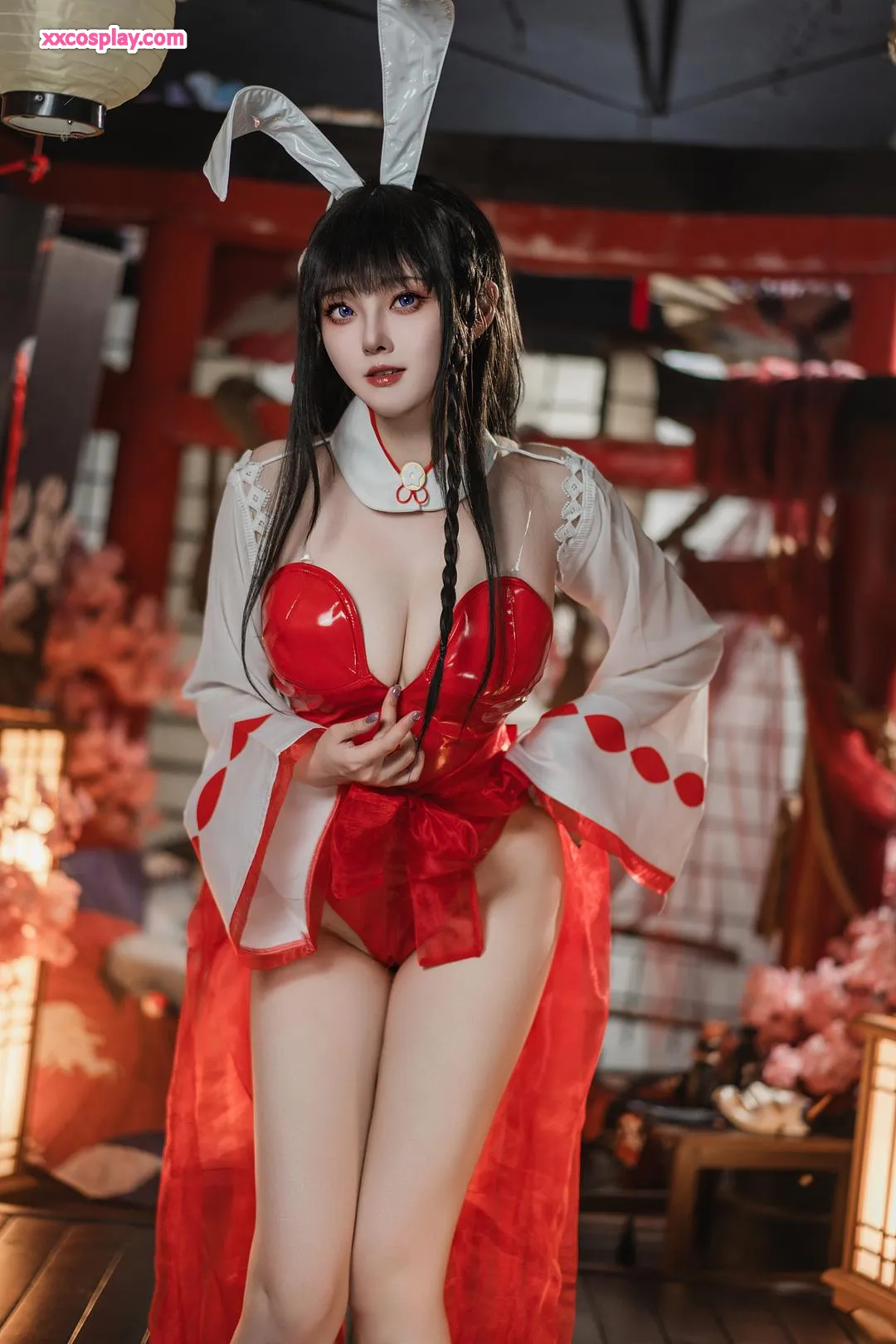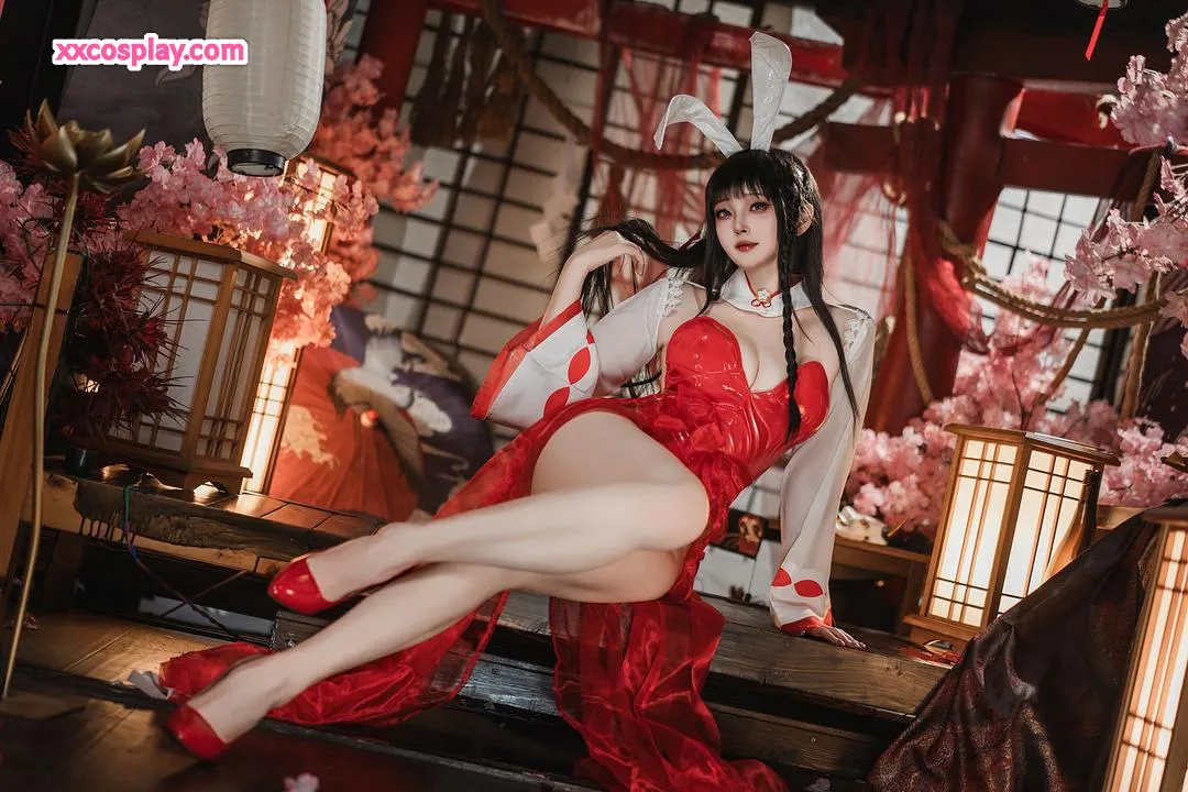 Natsuko夏夏子 as Oyama: Shrine Maiden Bunny from Azur Lane Natsuko夏夏子 Azur Lane Bunny Girl Miko Shrine Maiden