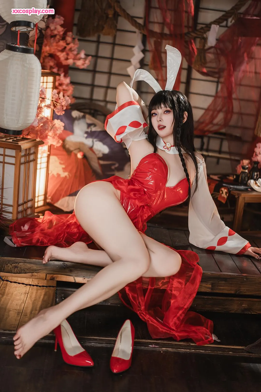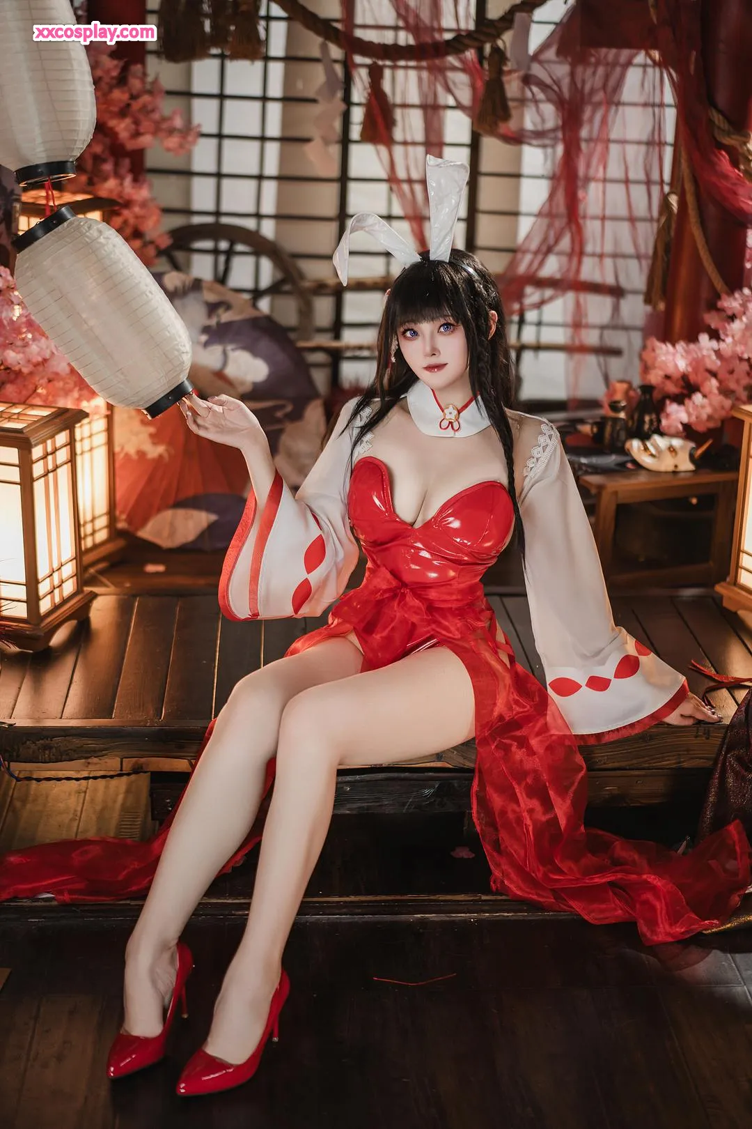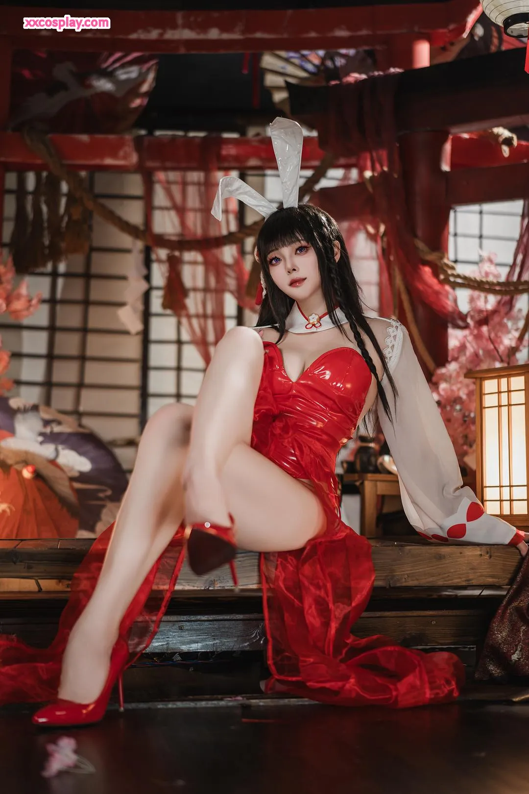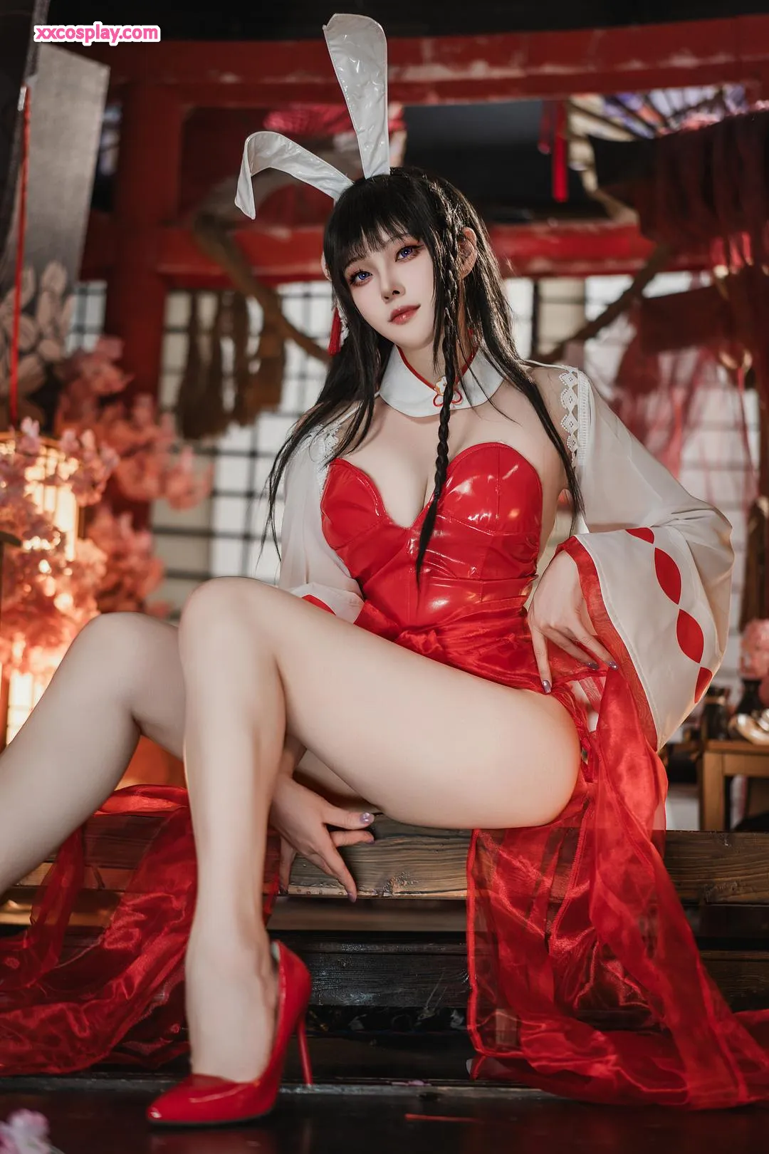 Natsuko夏夏子 as Oyama: Shrine Maiden Bunny from Azur Lane Natsuko夏夏子 Azur Lane Bunny Girl Miko Shrine Maiden