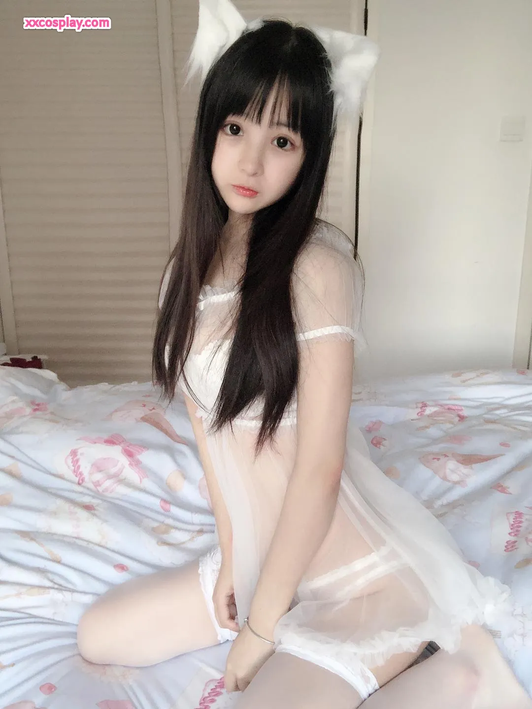 Sakurai Ningning: Little White Cat in Lace Lingerie