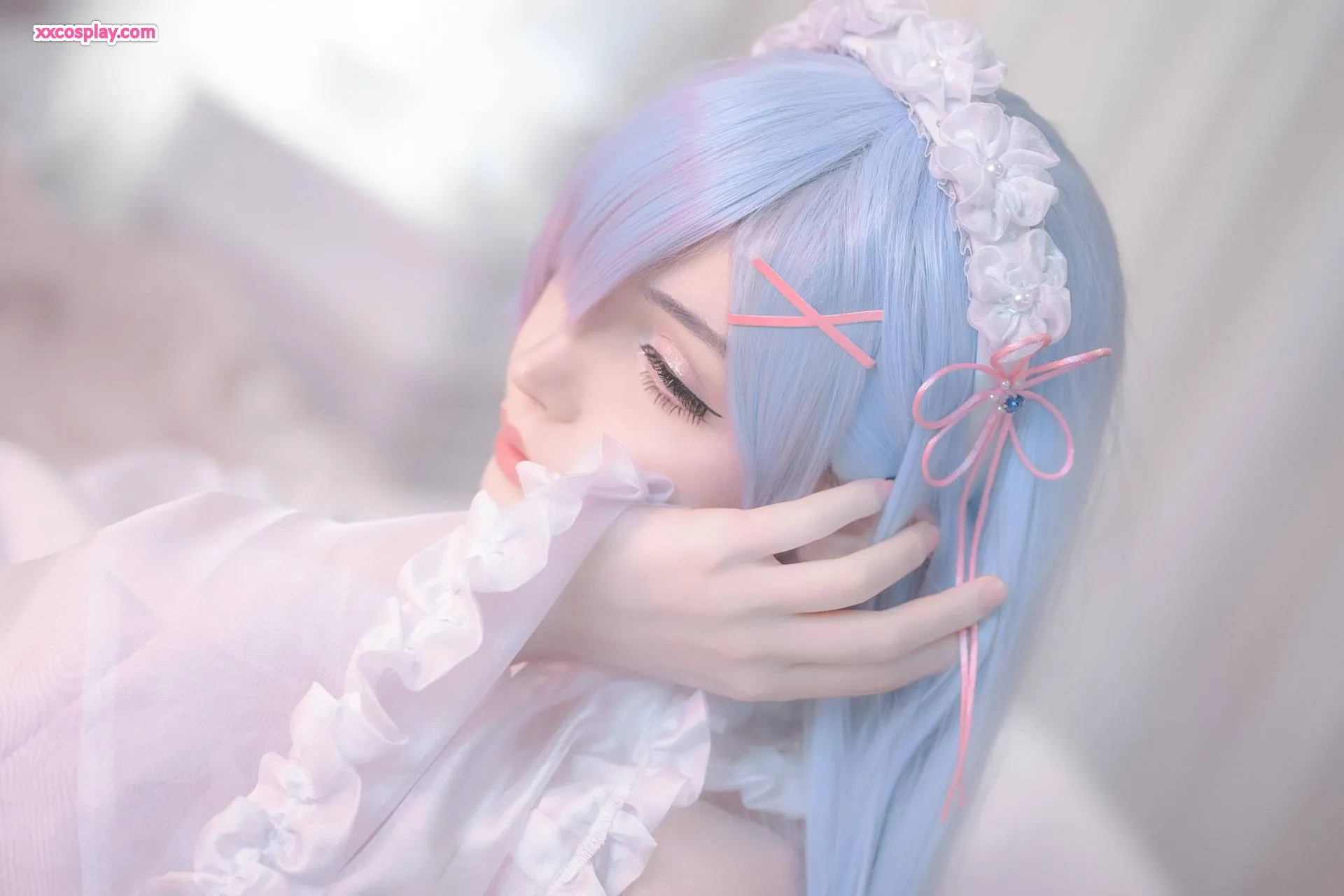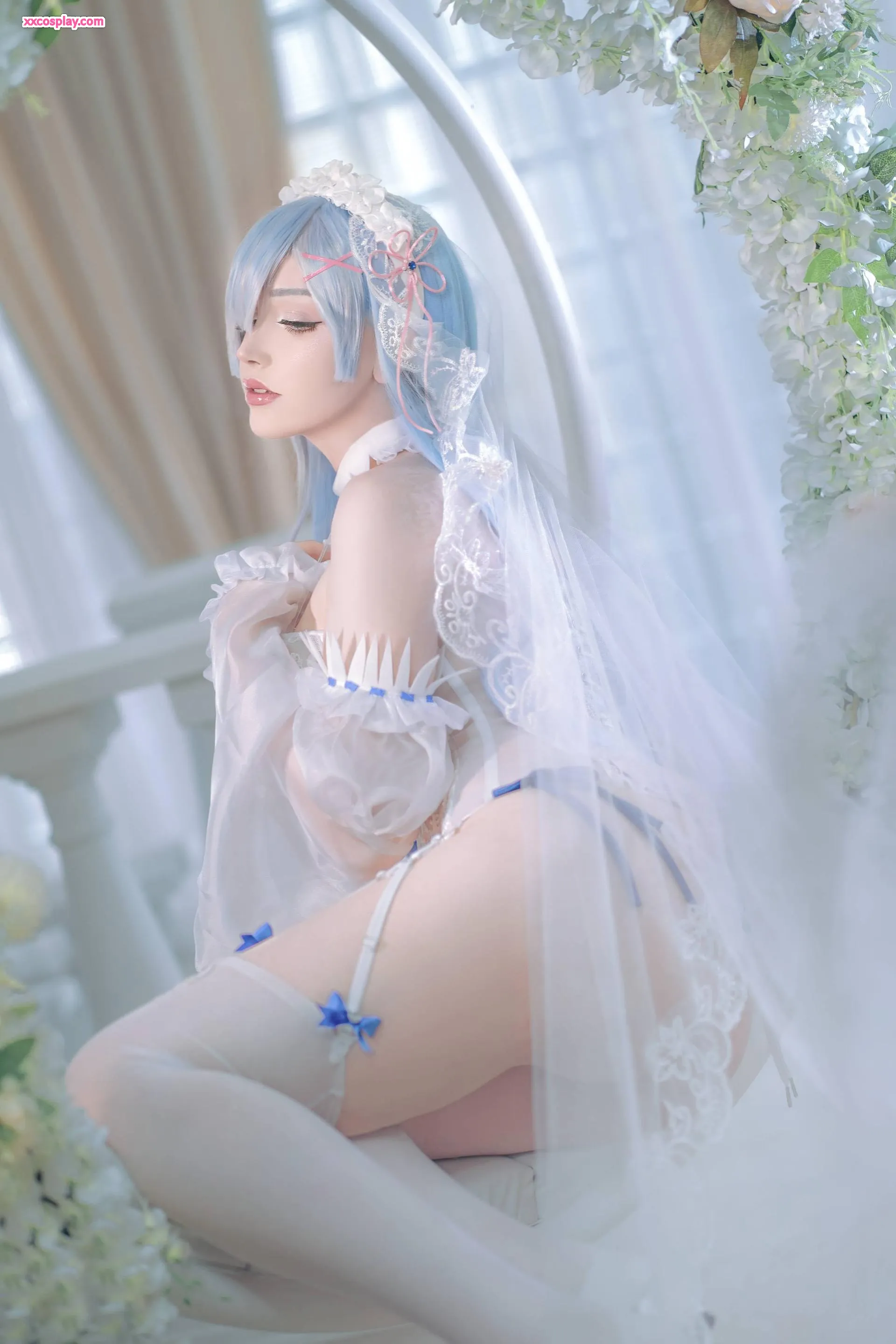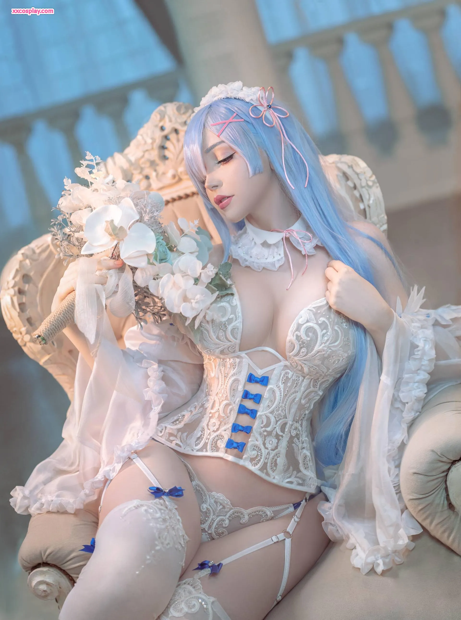 Sayathefox as Rem: Enchanting Lace Bridal Lingerie