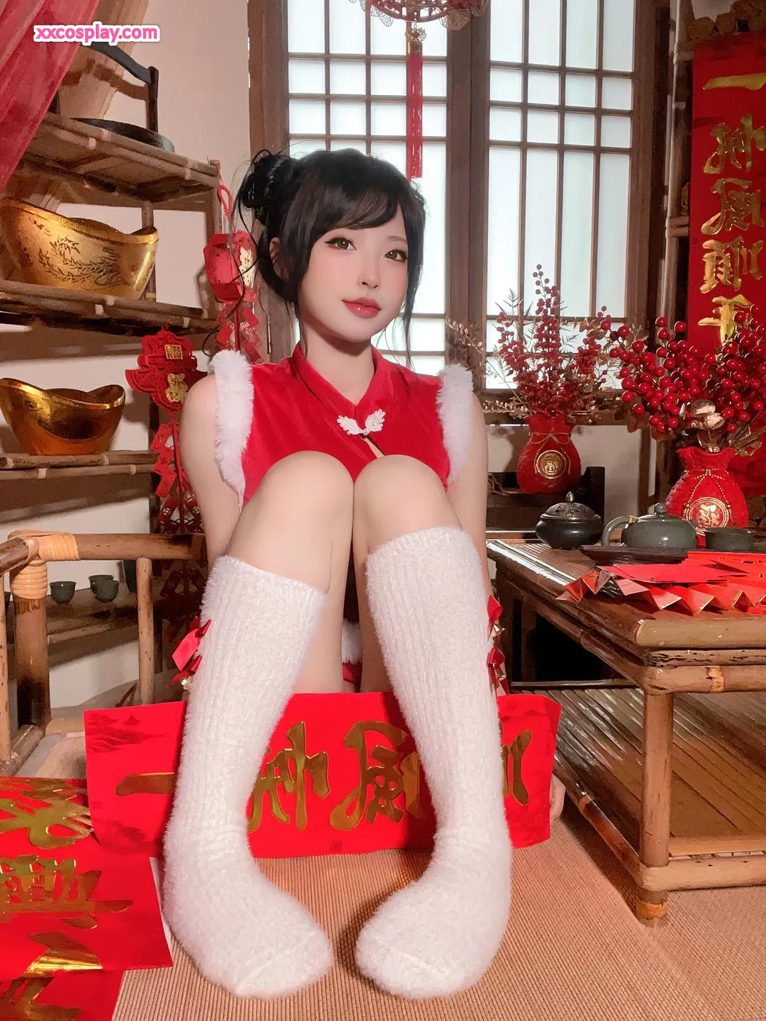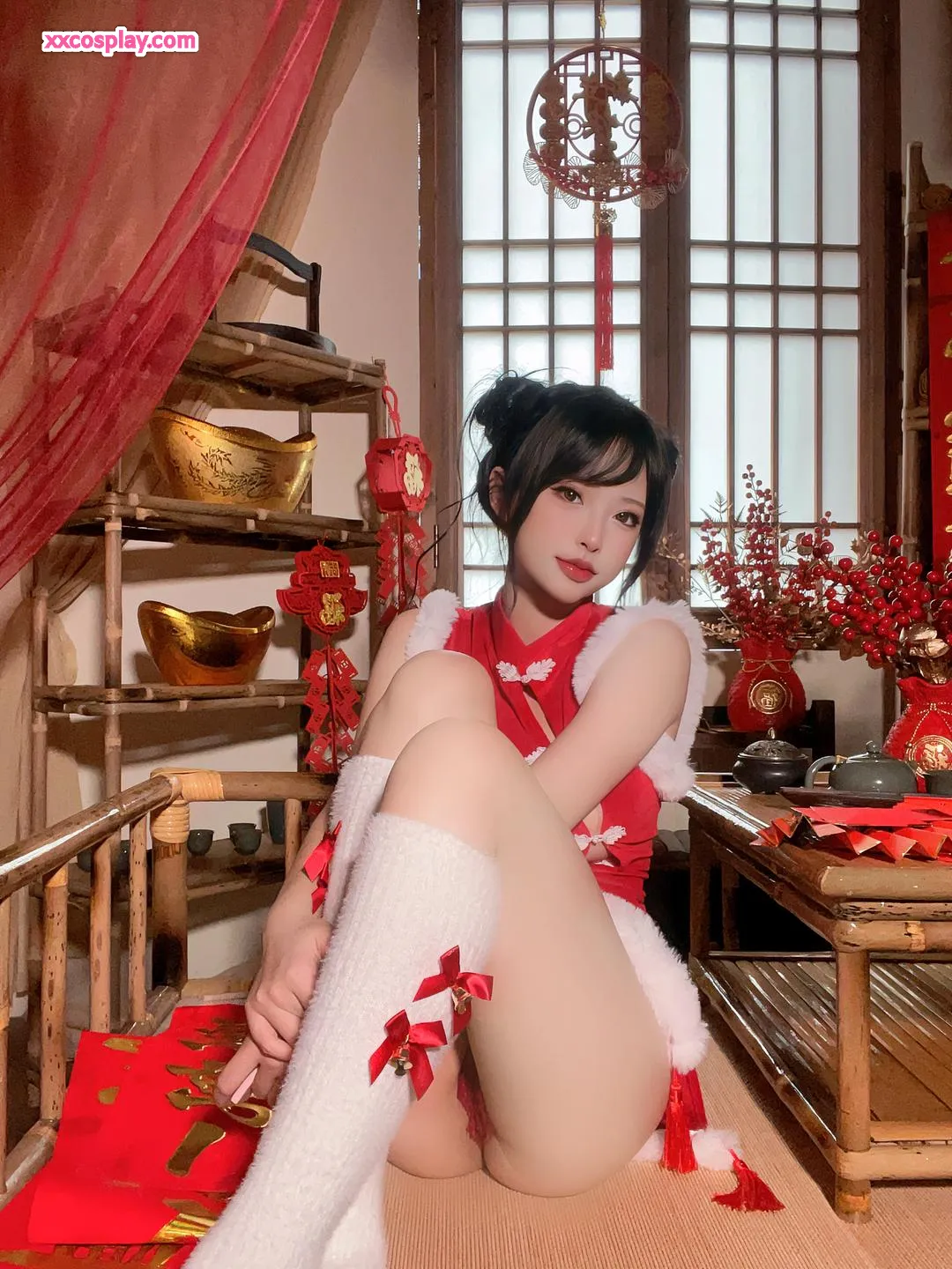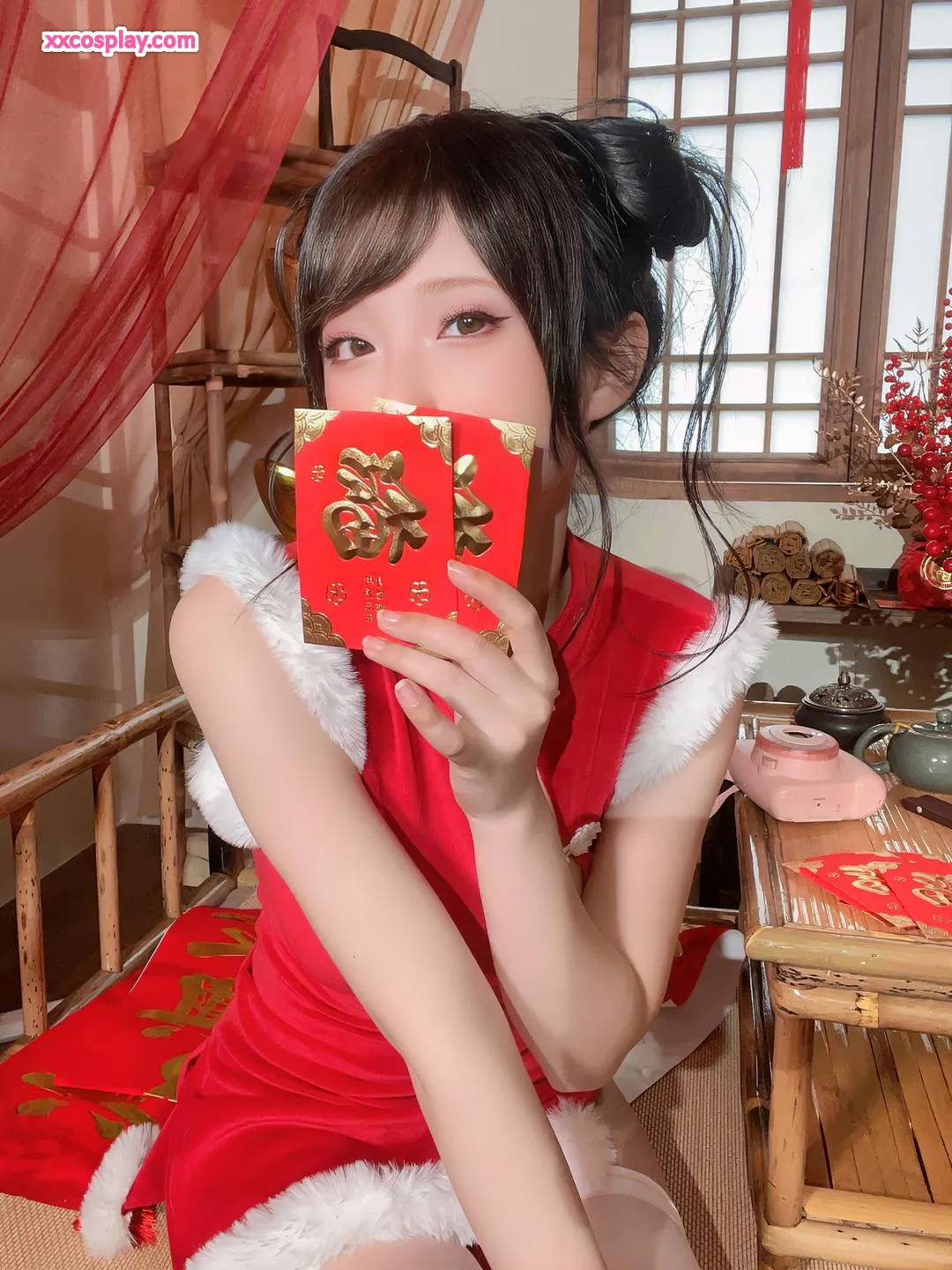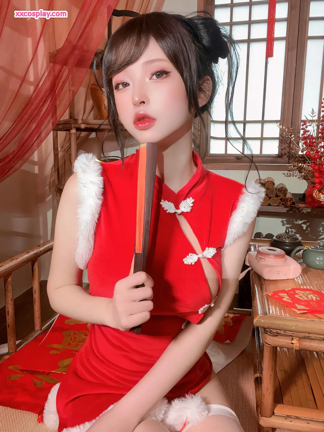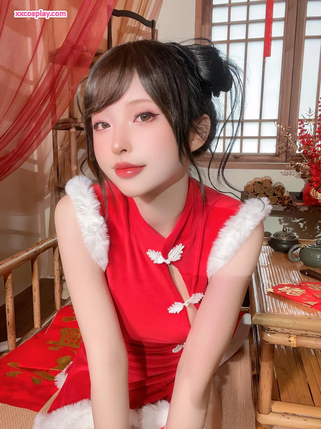 Shimizu Yuno's Festive Red Cheongsam