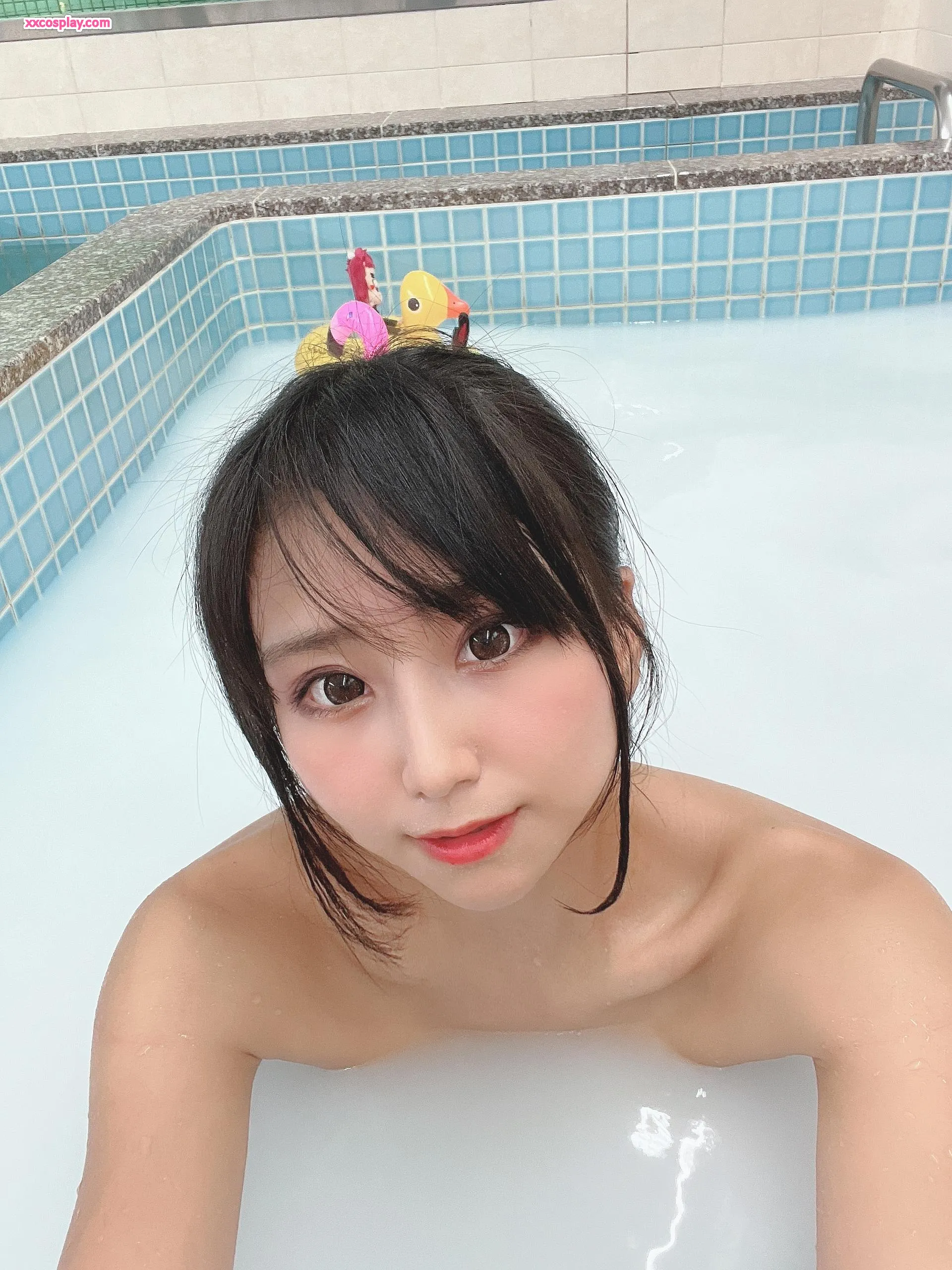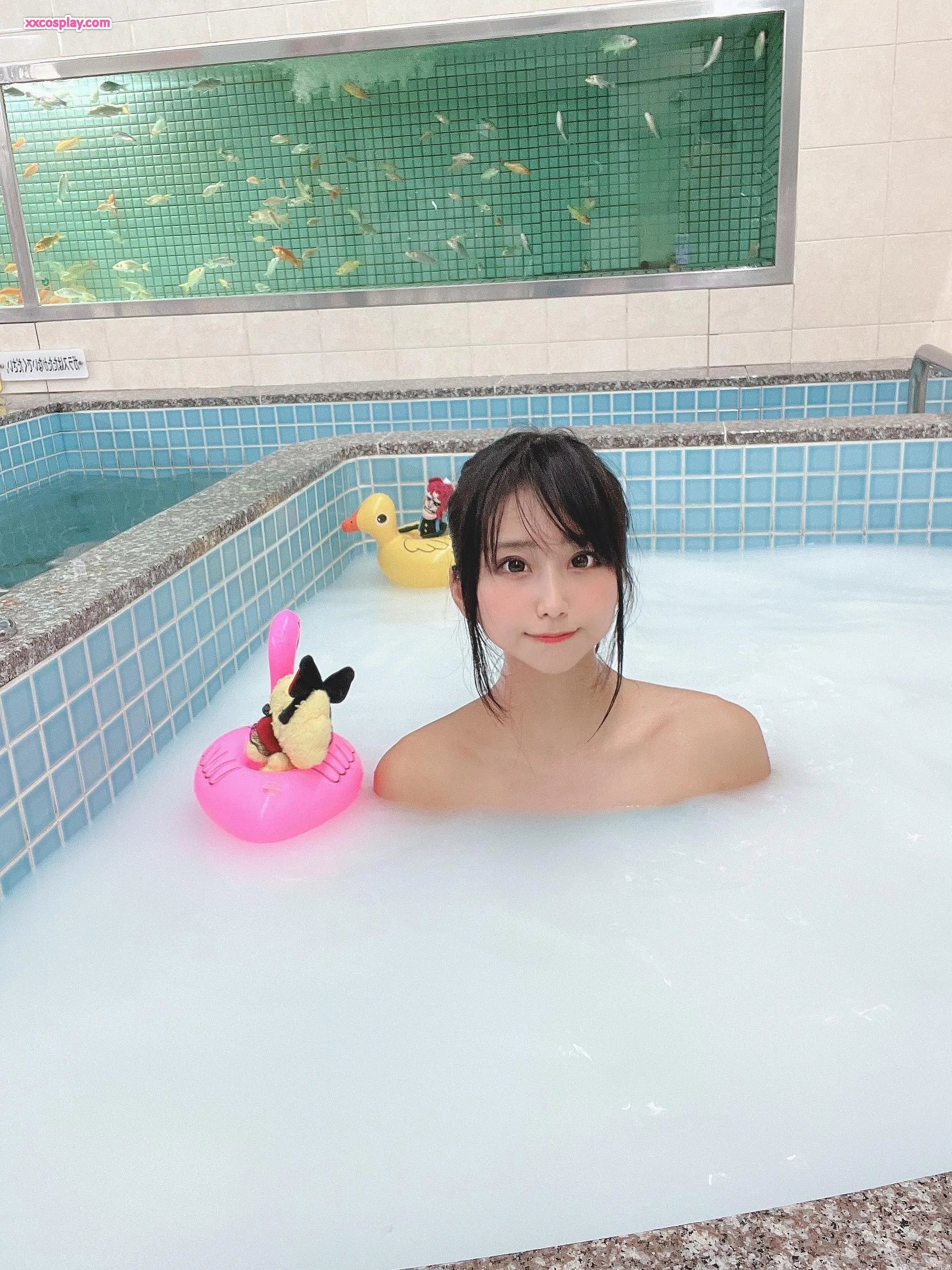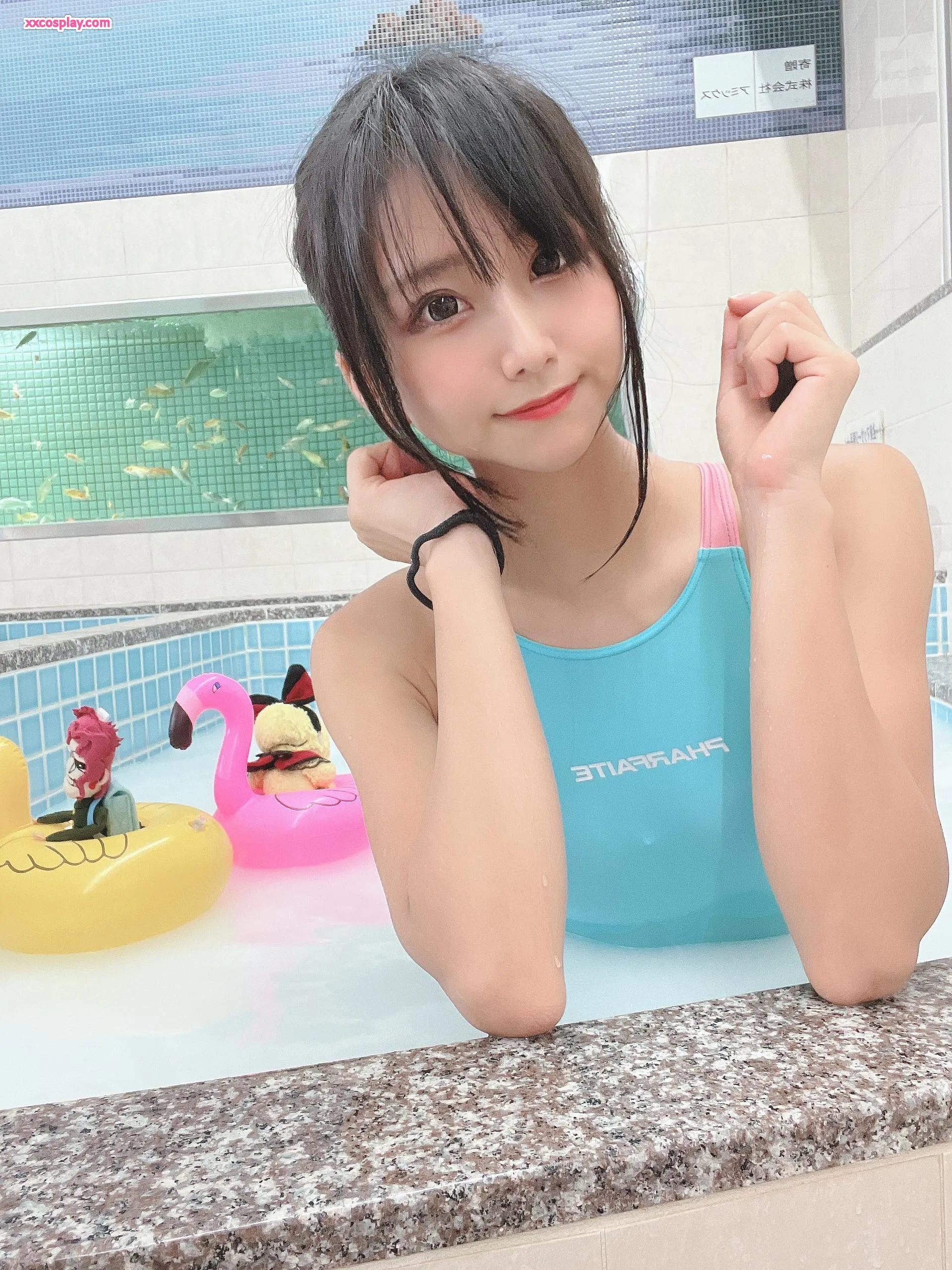 Yanagimaru in Shiny Aqua Competitive Swimsuit at the Sento