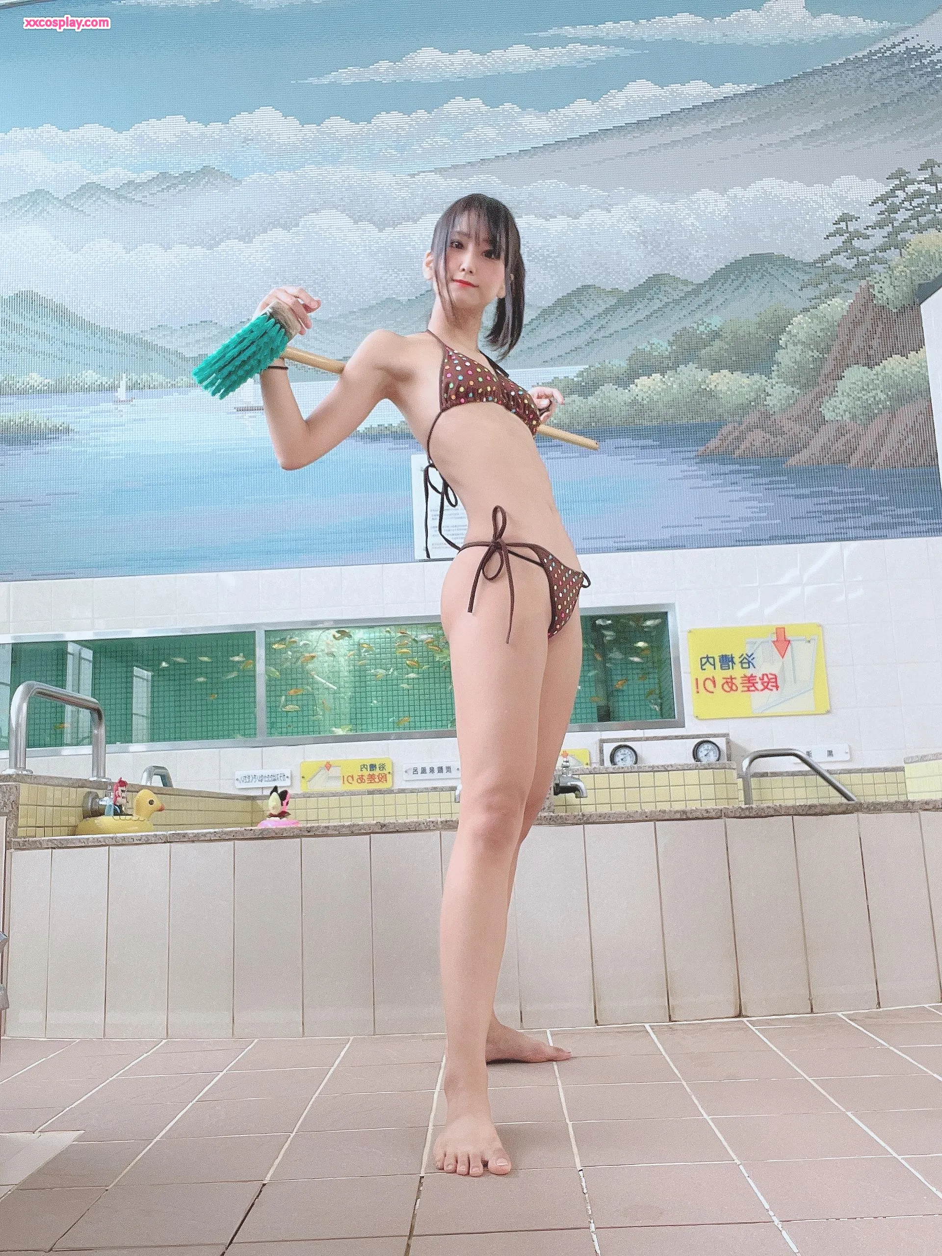 Yanagimaru in Brown Polka-Dot Bikini at Sento ♨