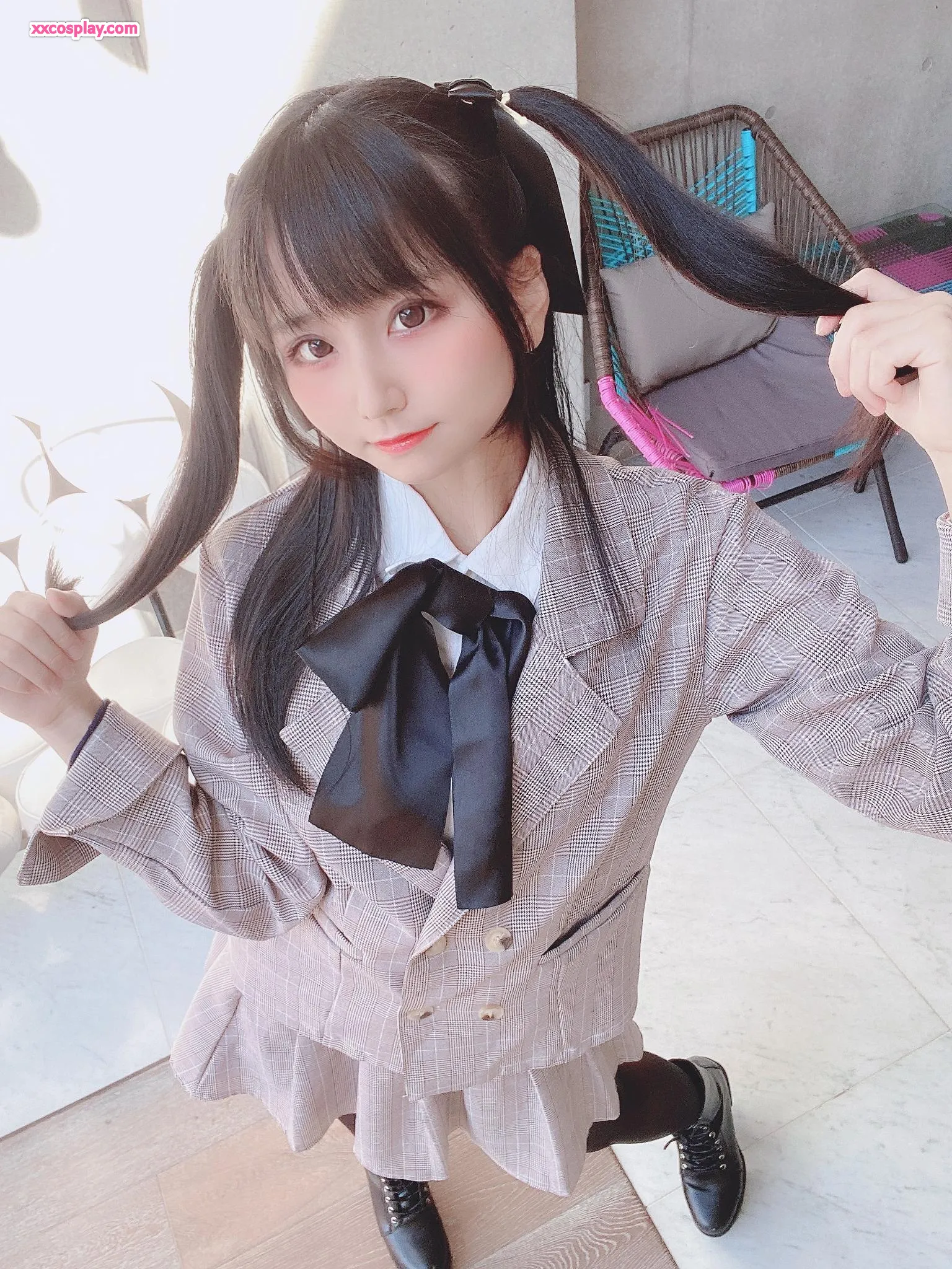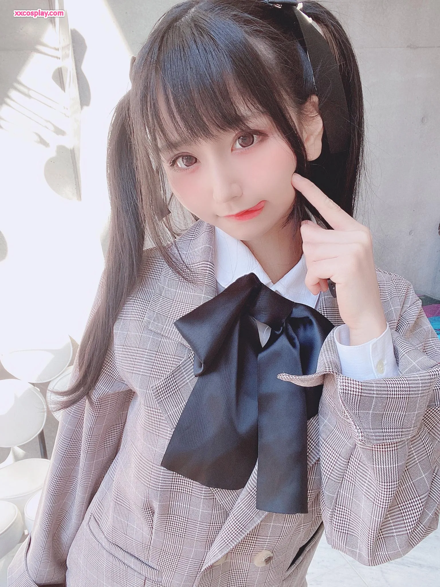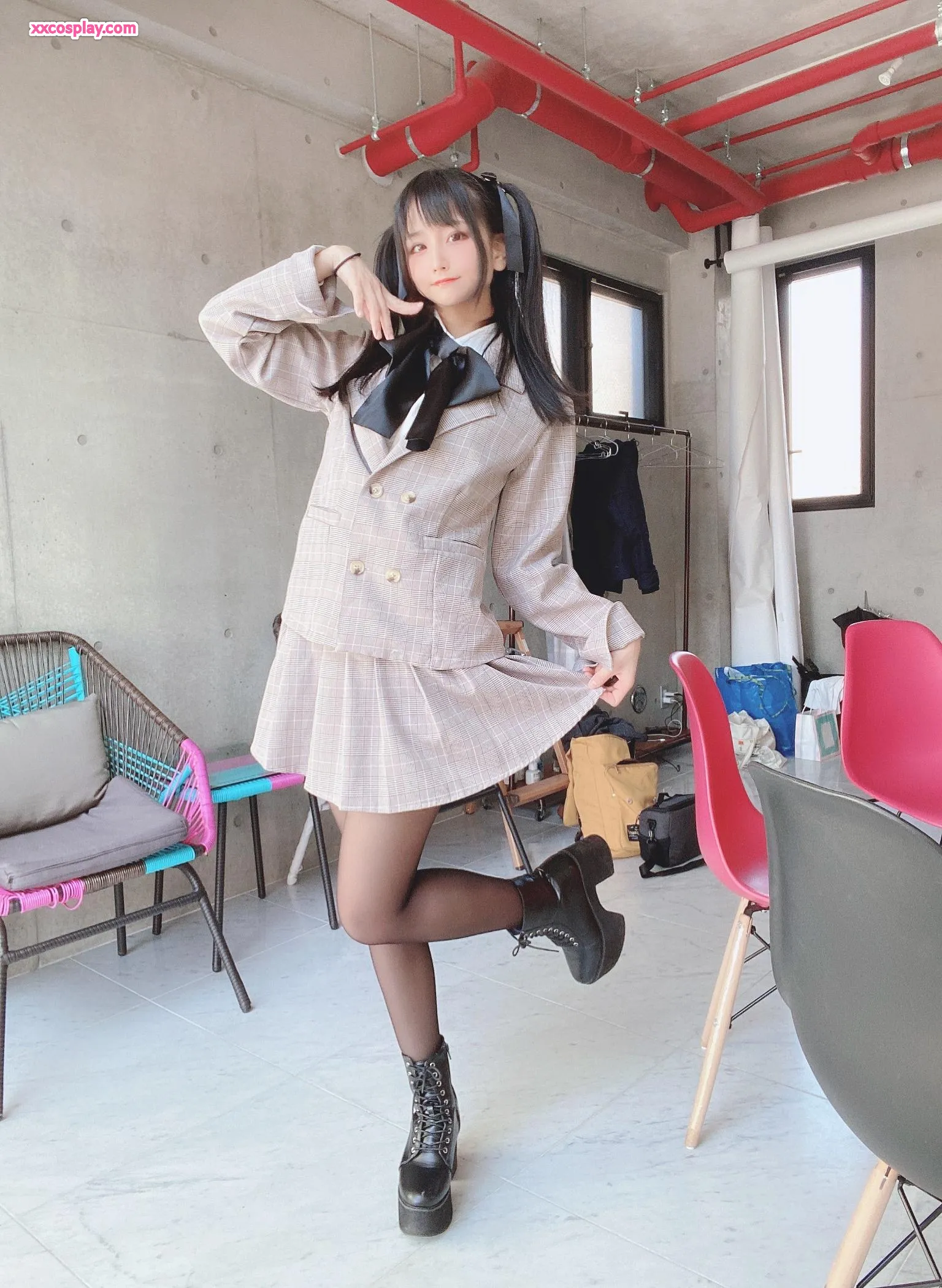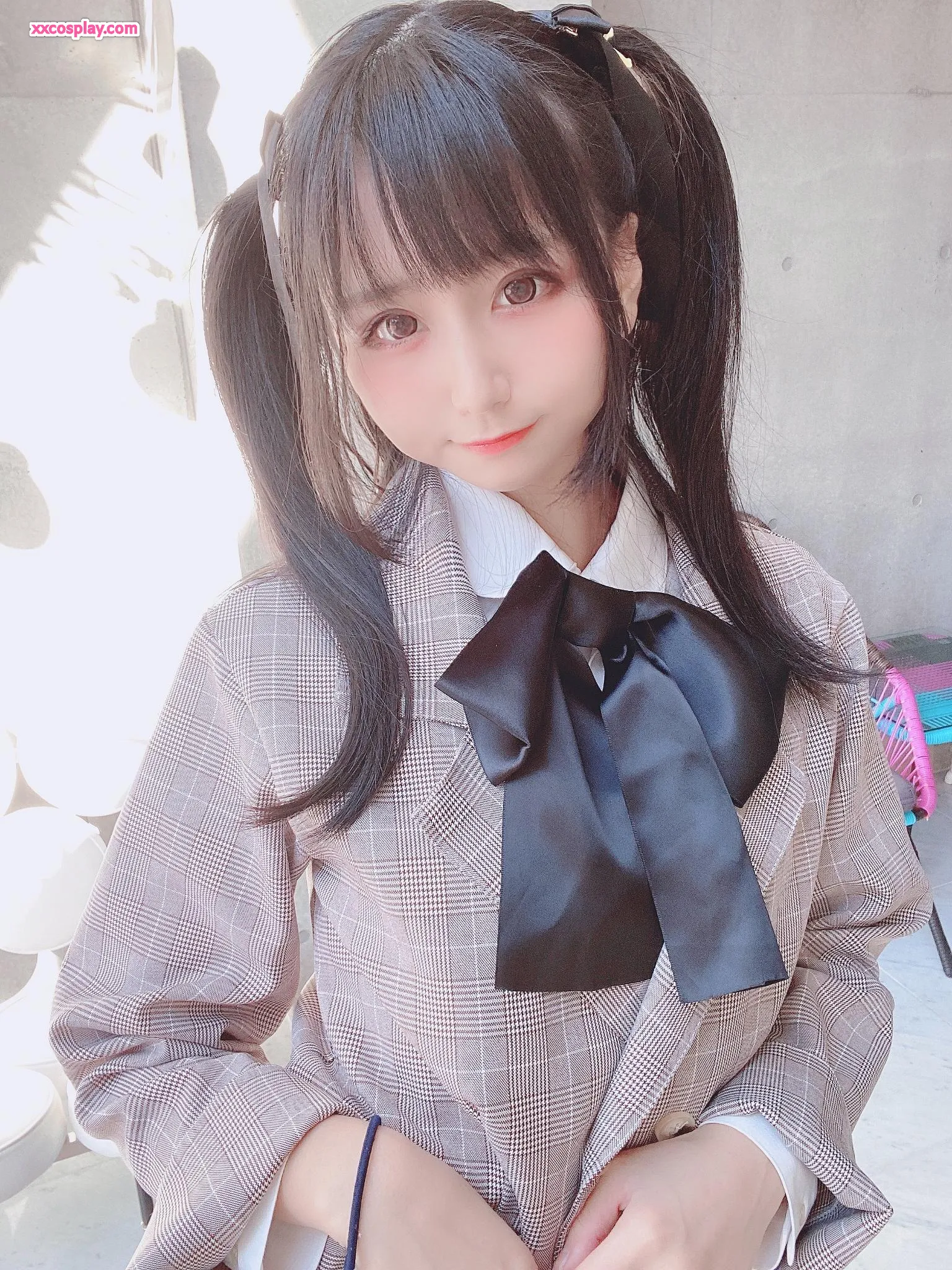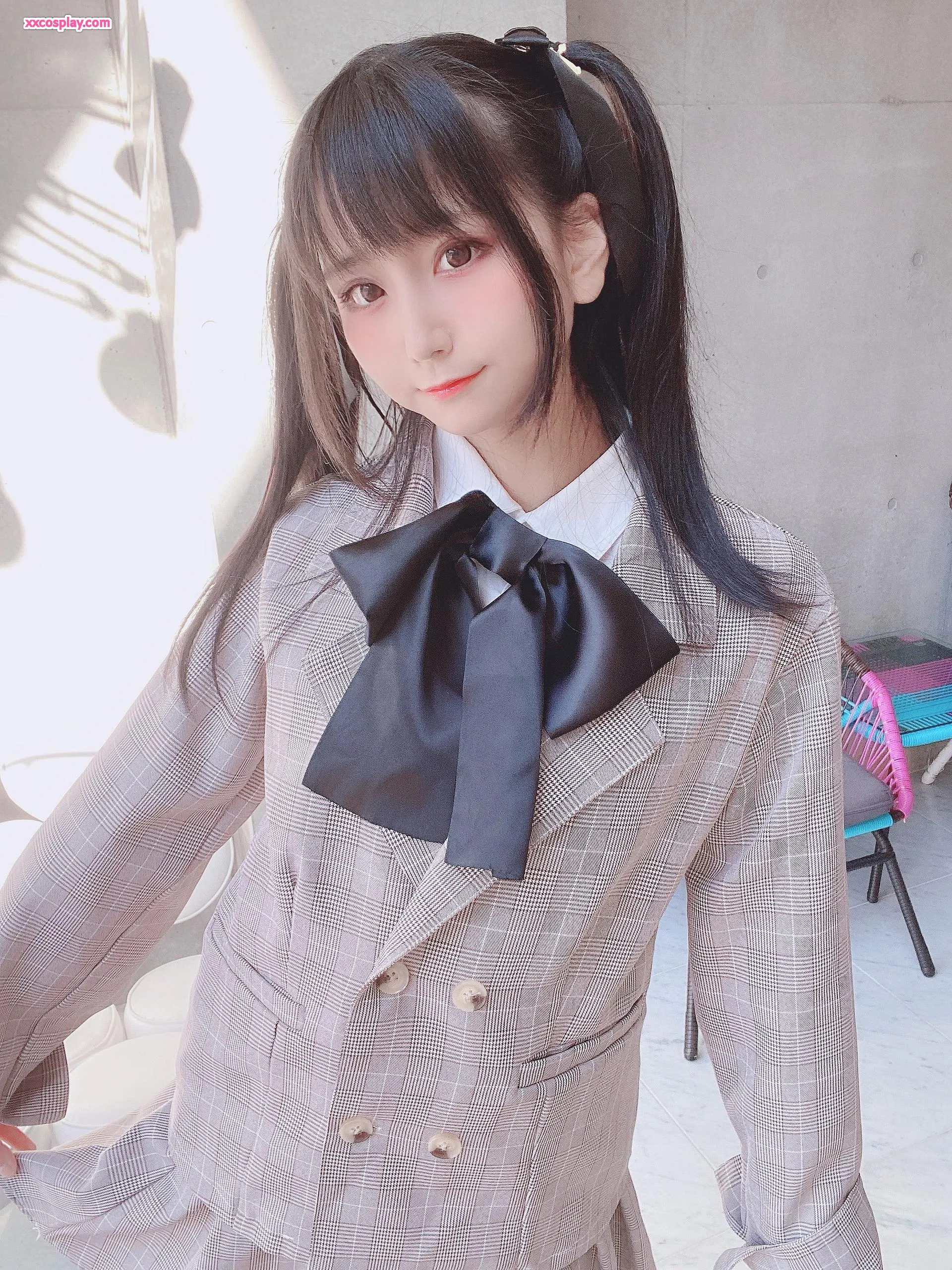 Yanagimaru in Pink Checkered School Uniform