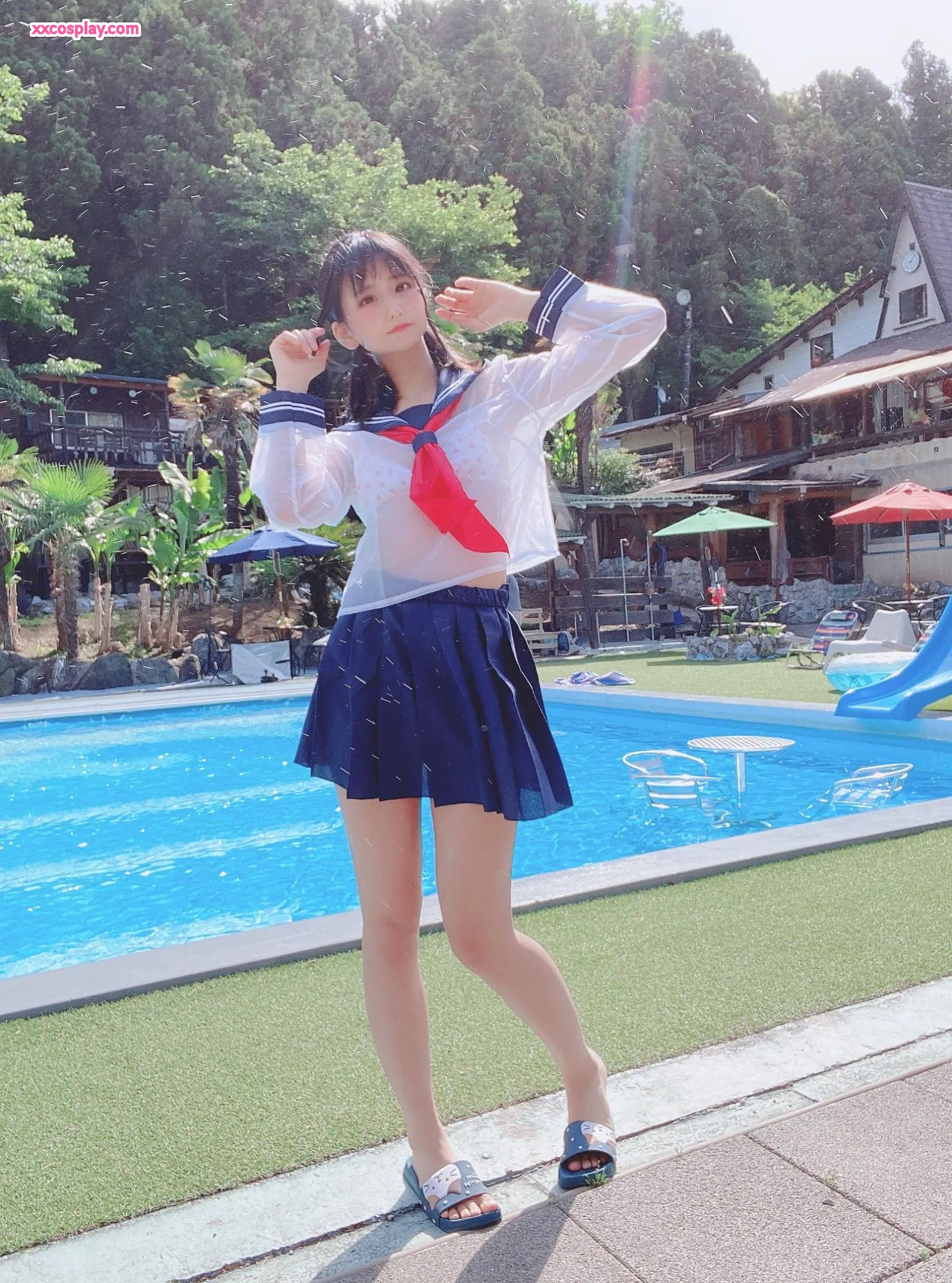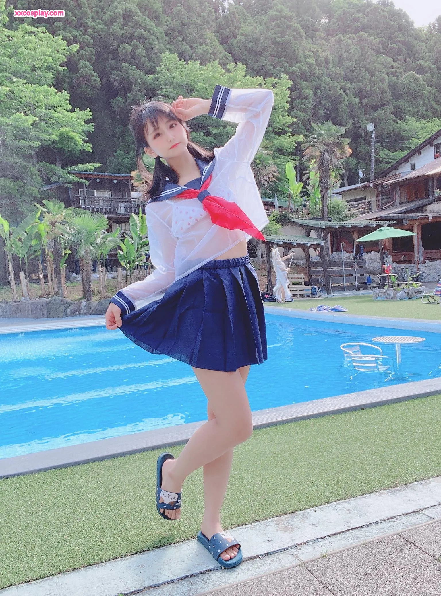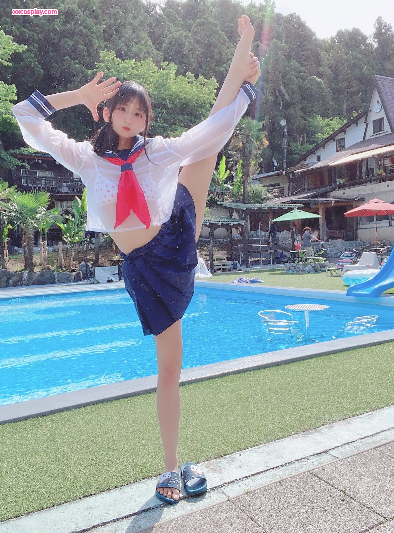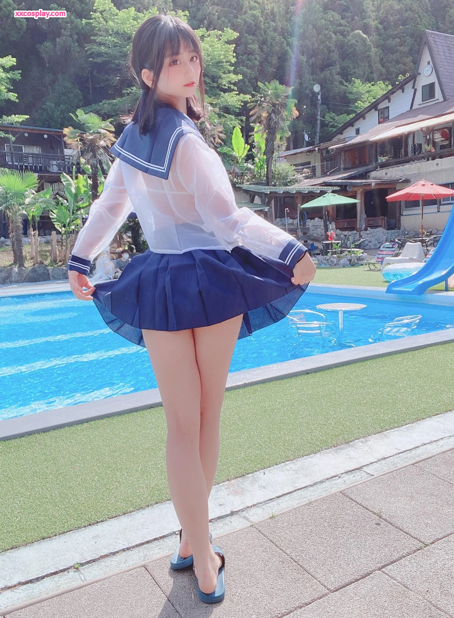 Yanagimaru's See-Through Sailor Uniform Poolside