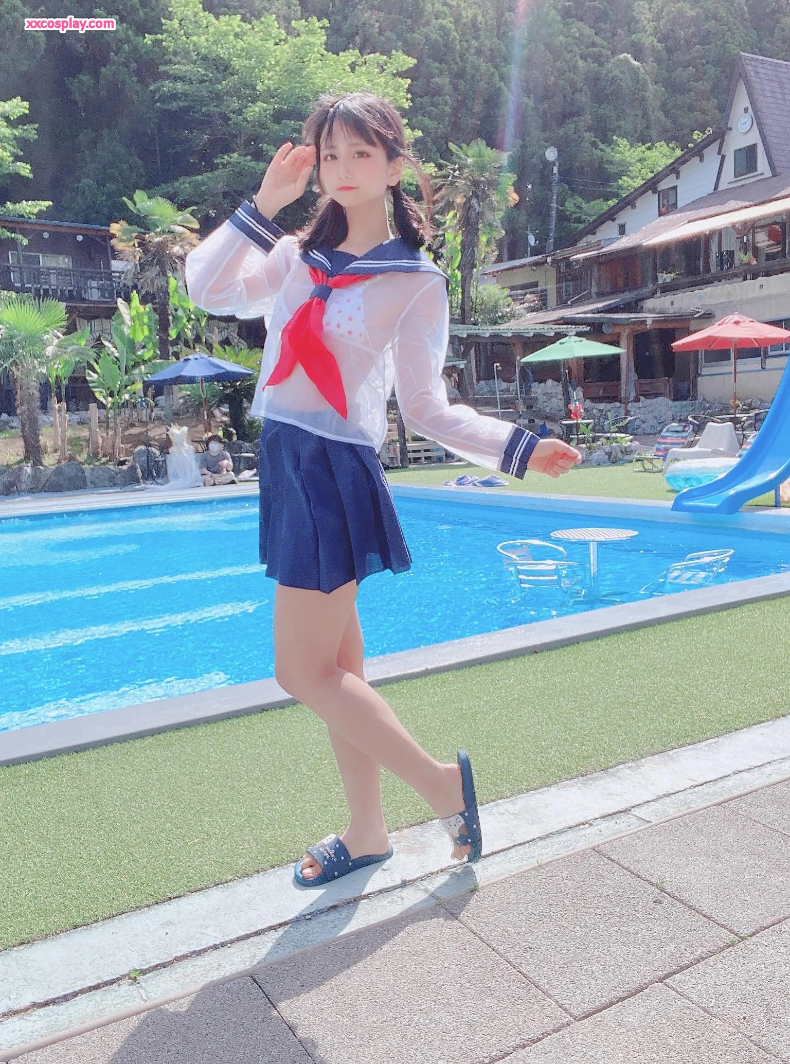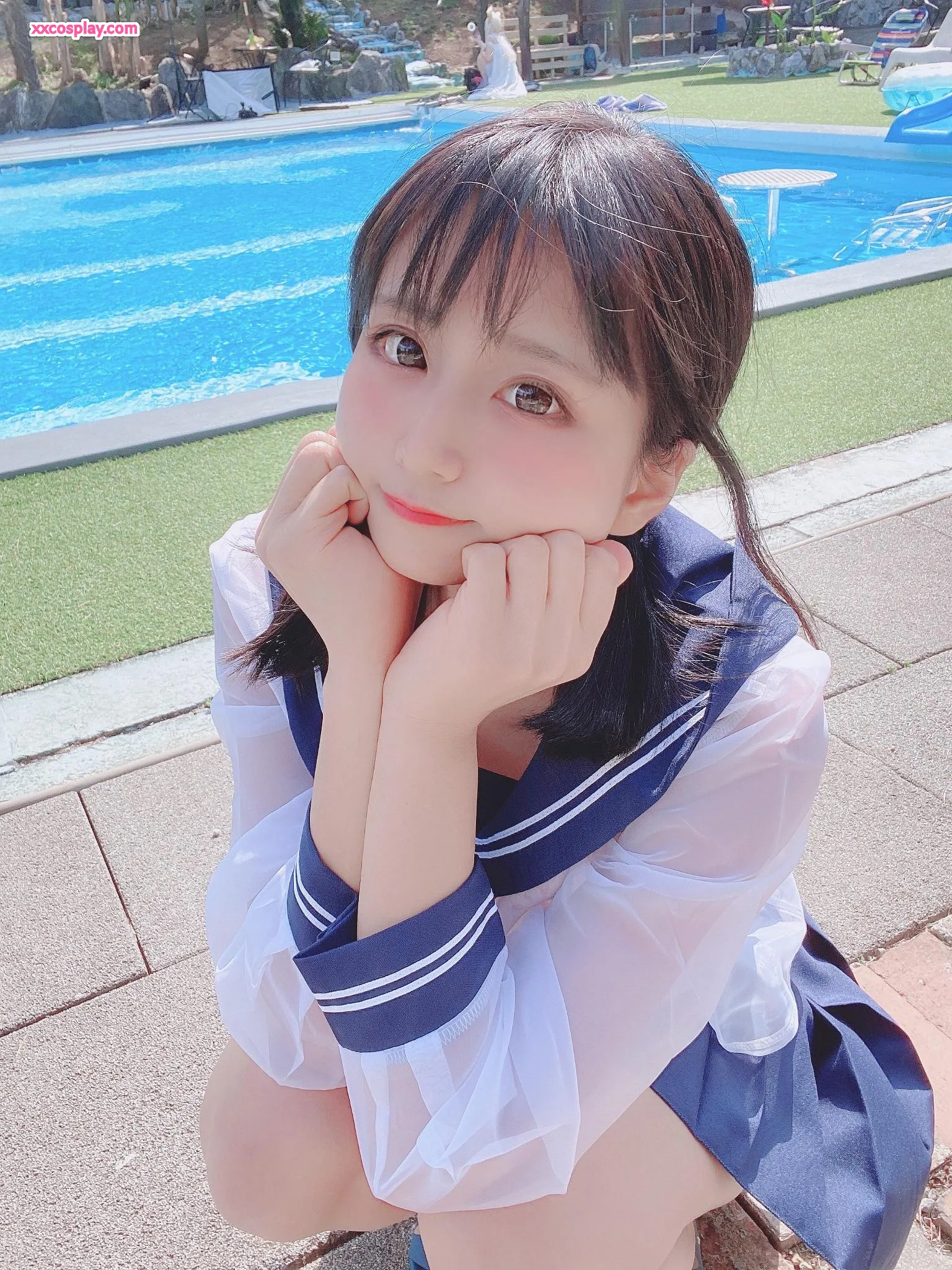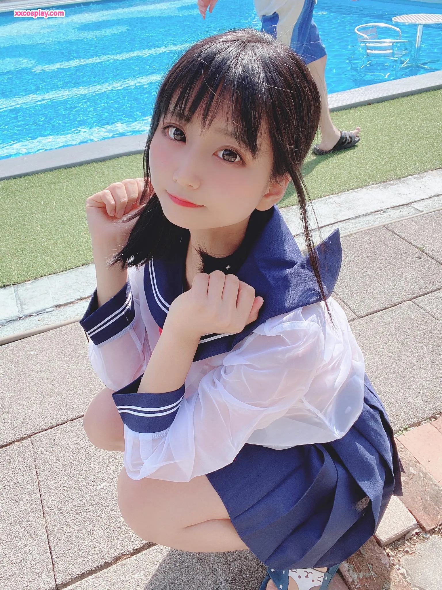 Yanagimaru's See-Through Sailor Uniform Poolside