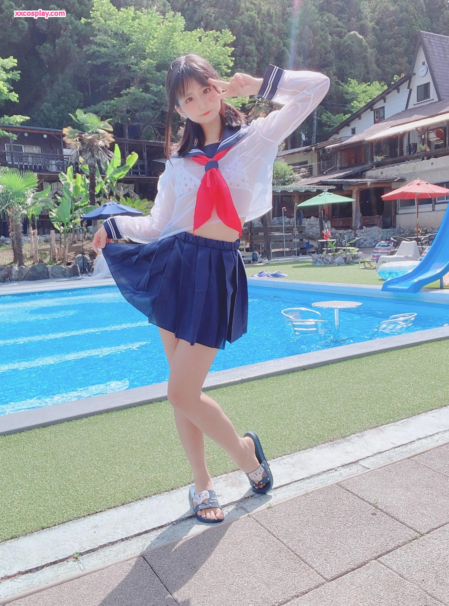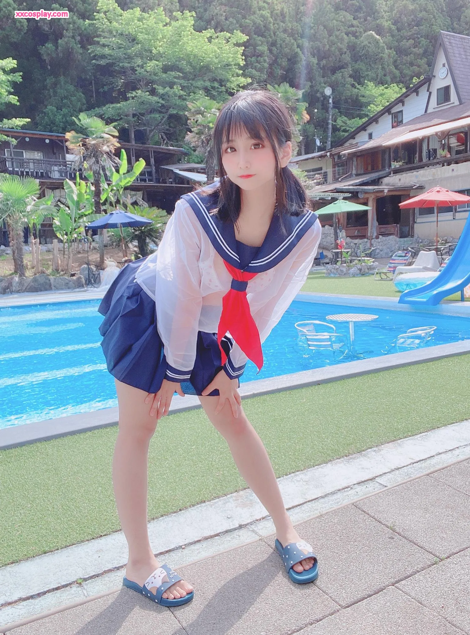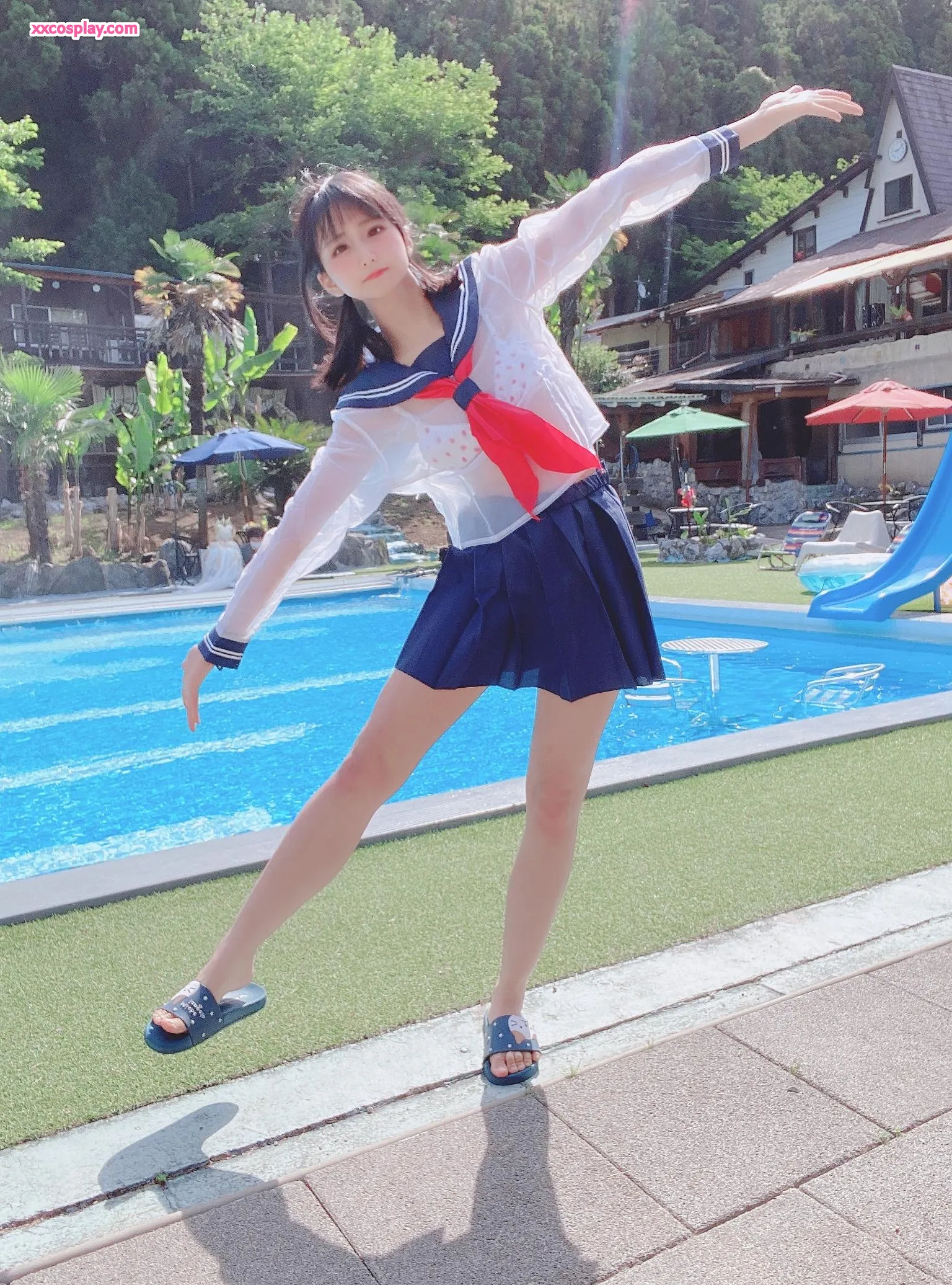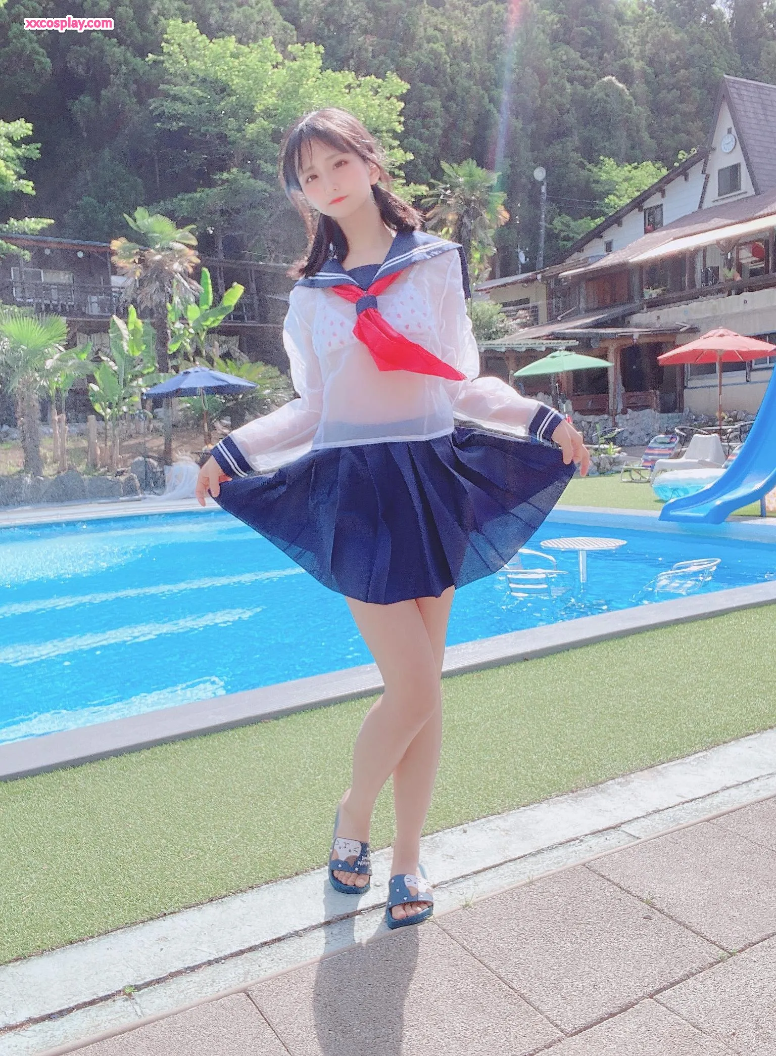 Yanagimaru's See-Through Sailor Uniform Poolside