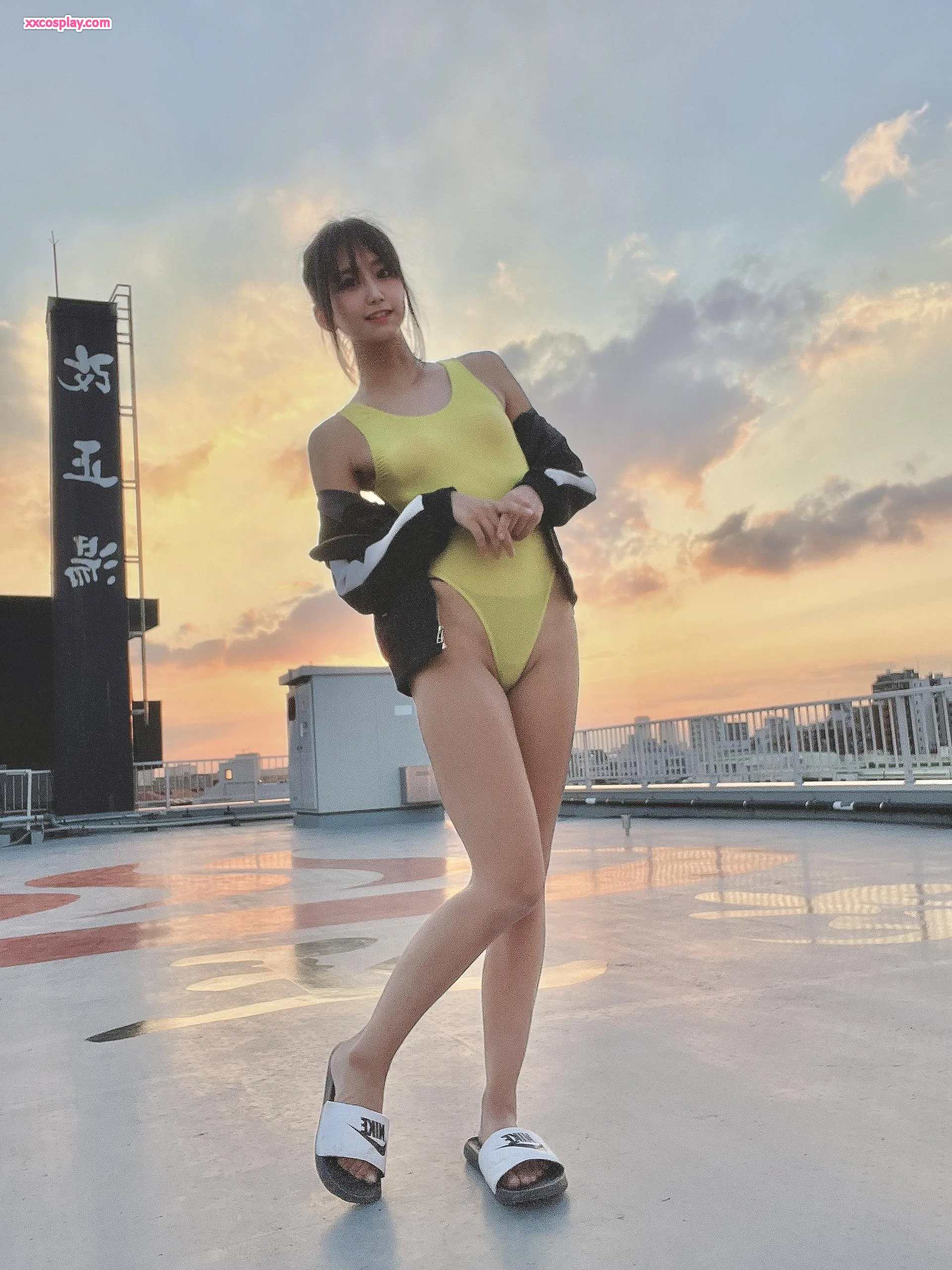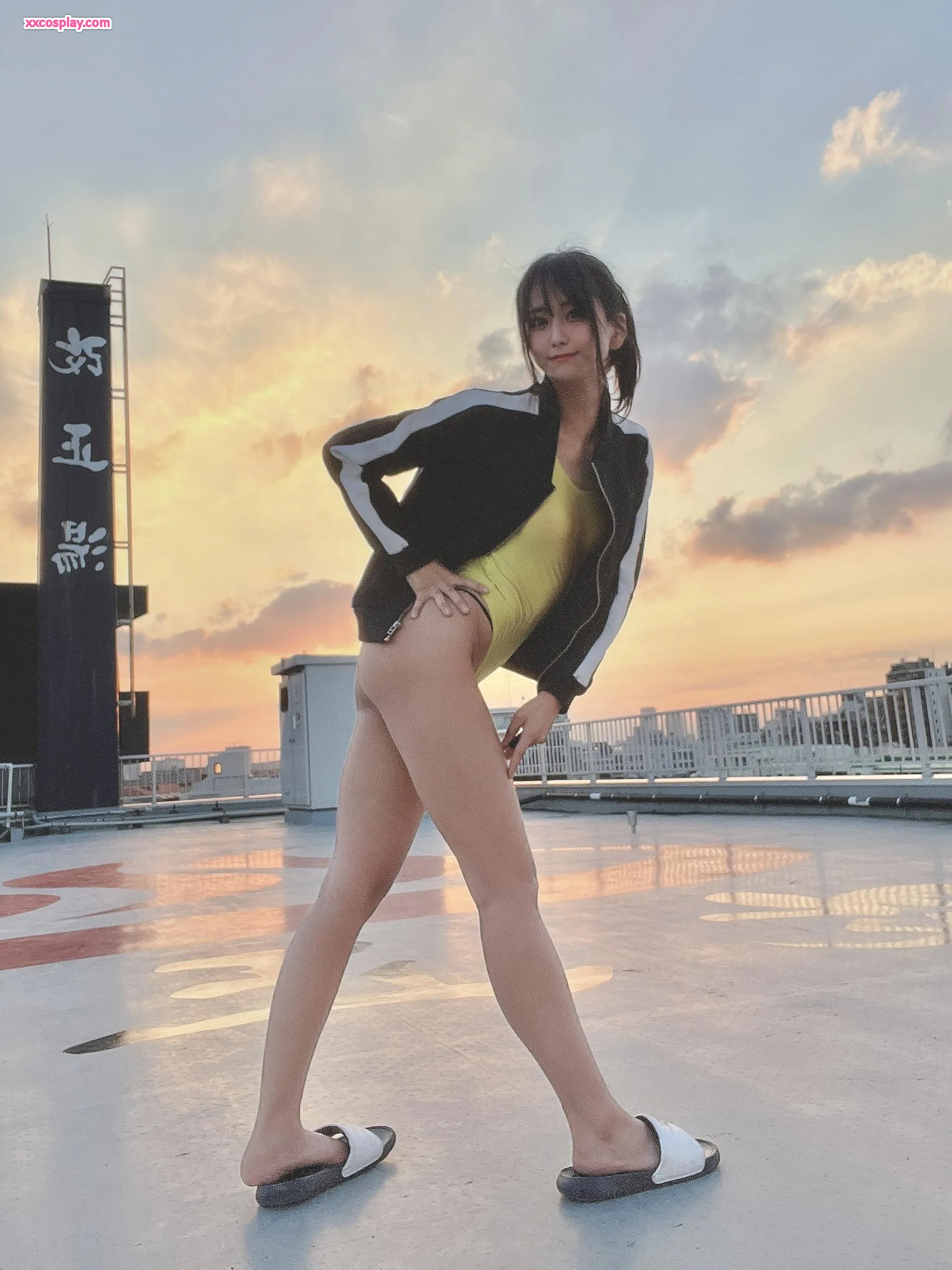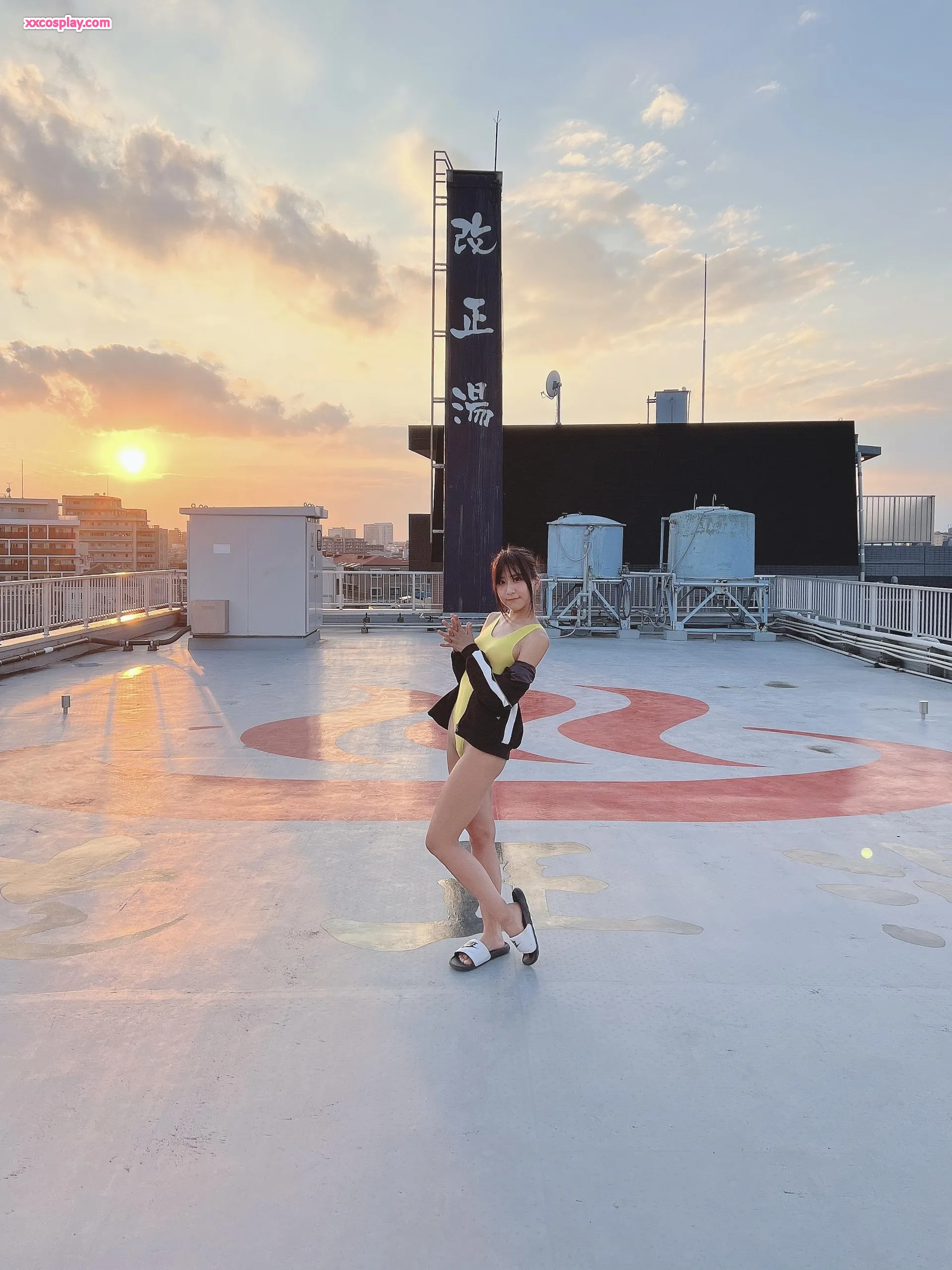 Yanagimaru in Yellow Racing Swimsuit: Sento Bath & Rooftop