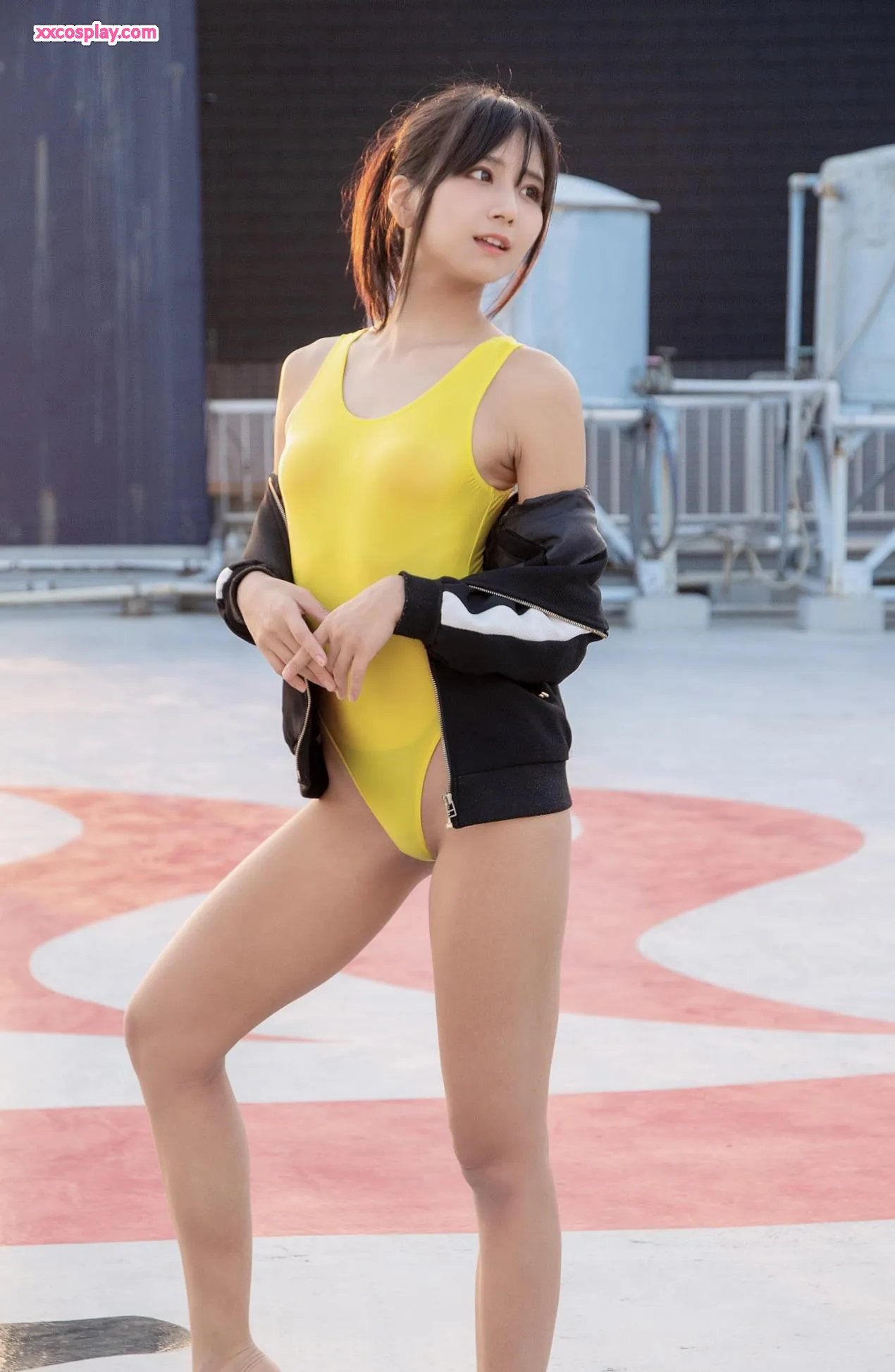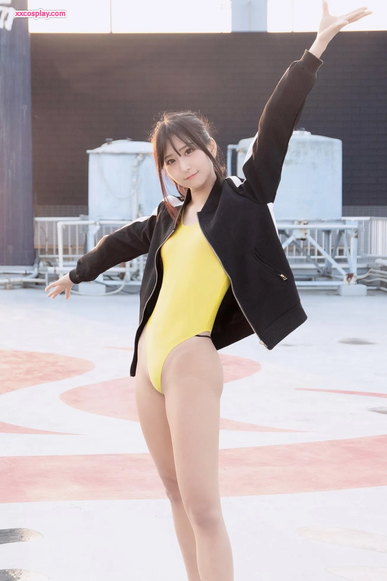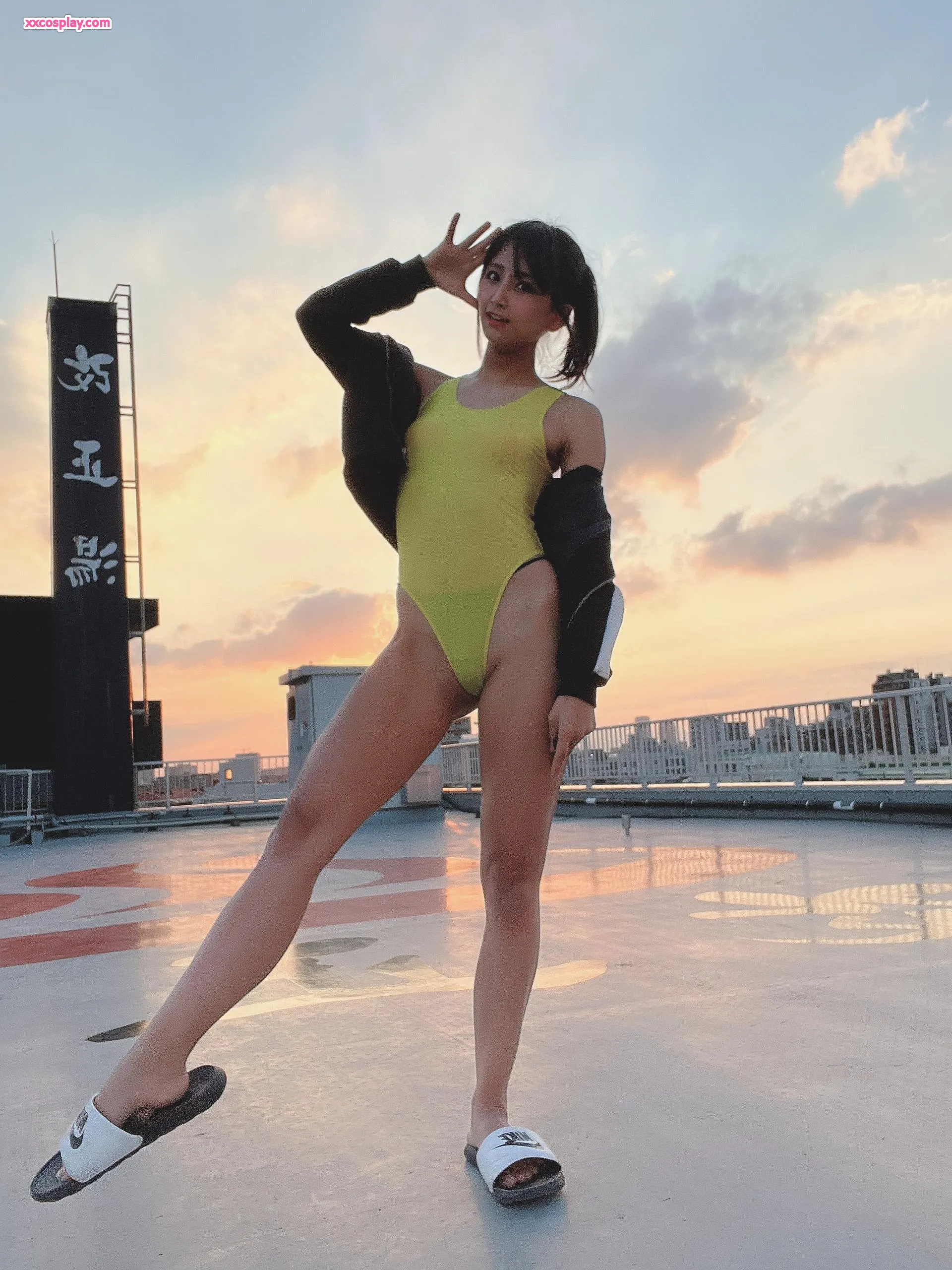 Yanagimaru in Yellow Racing Swimsuit: Sento Bath & Rooftop
