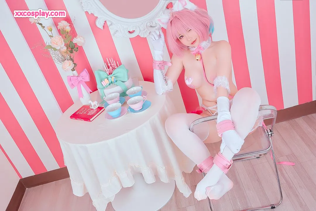 ZinieQ: Seductive Pink Catgirl in Frilly Lingerie