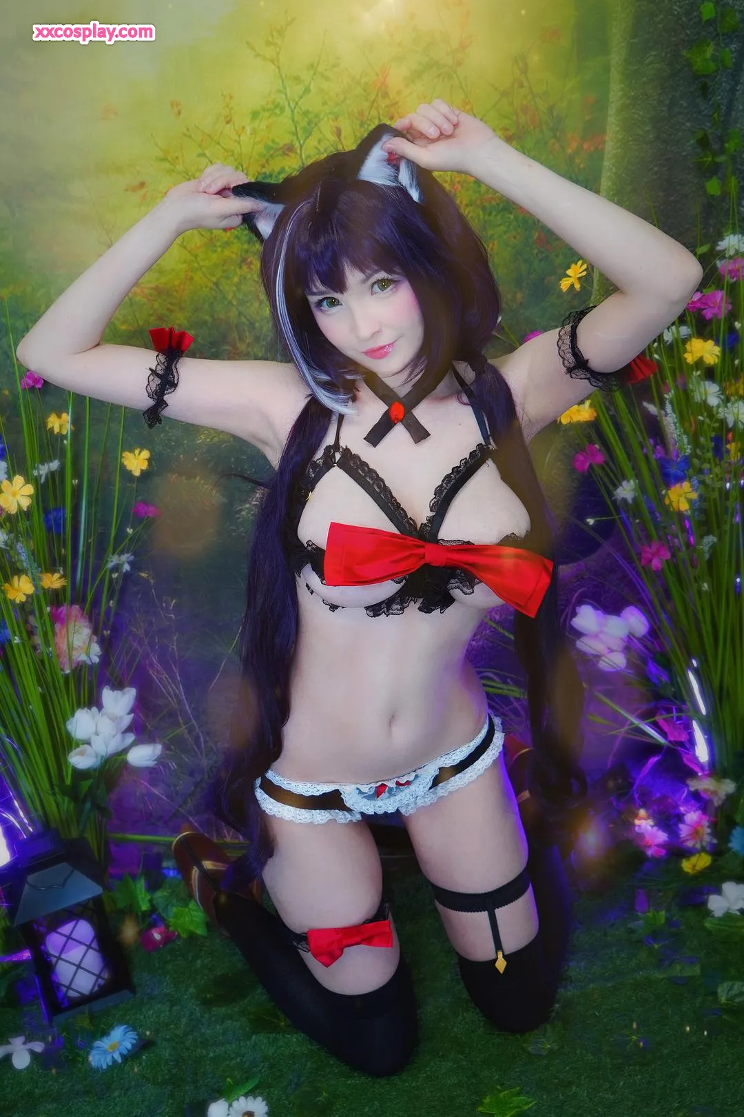 Hidori Rose sebagai Kiruya Momochi - Cosplay Catgirl Memikat Hidori Cosplay Catgirl Lingerie Stockings