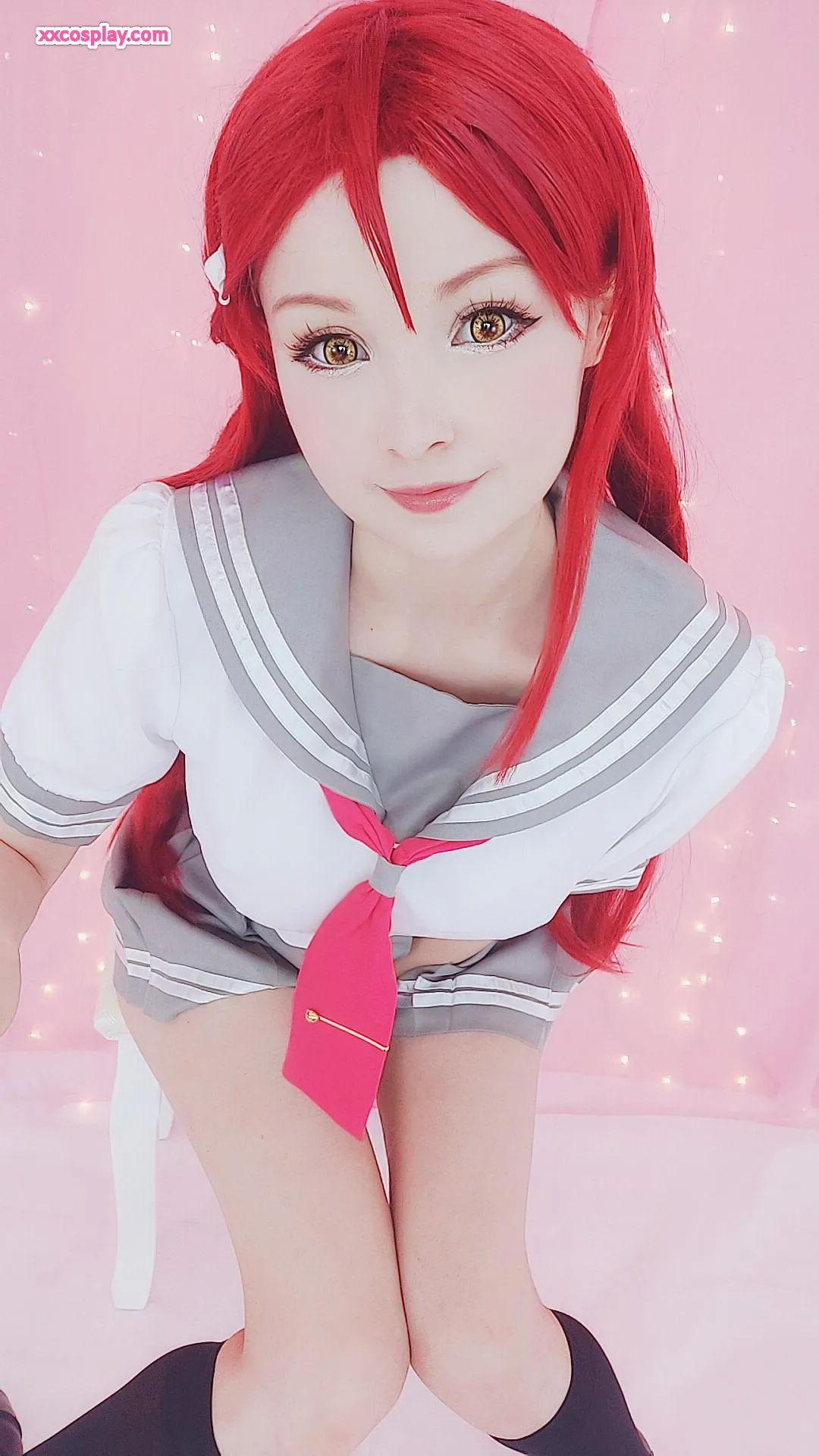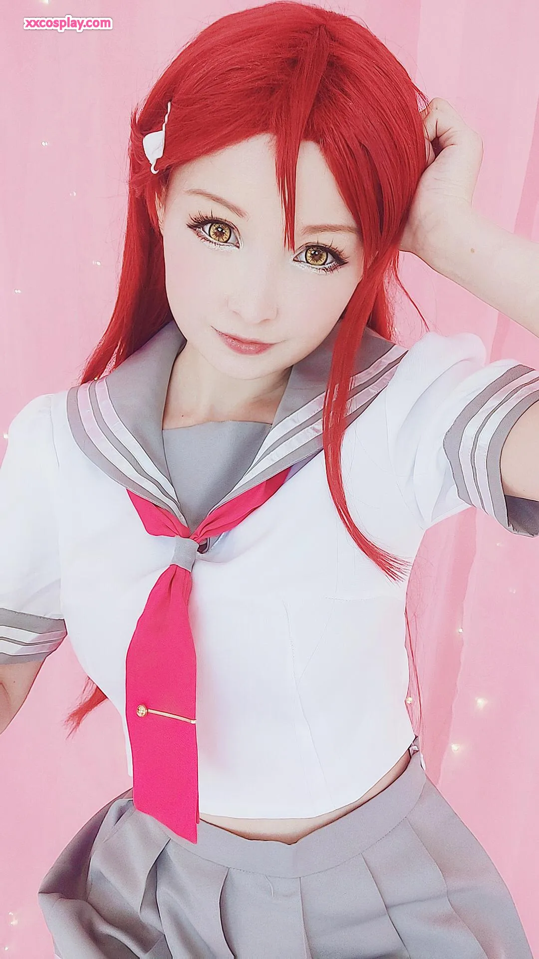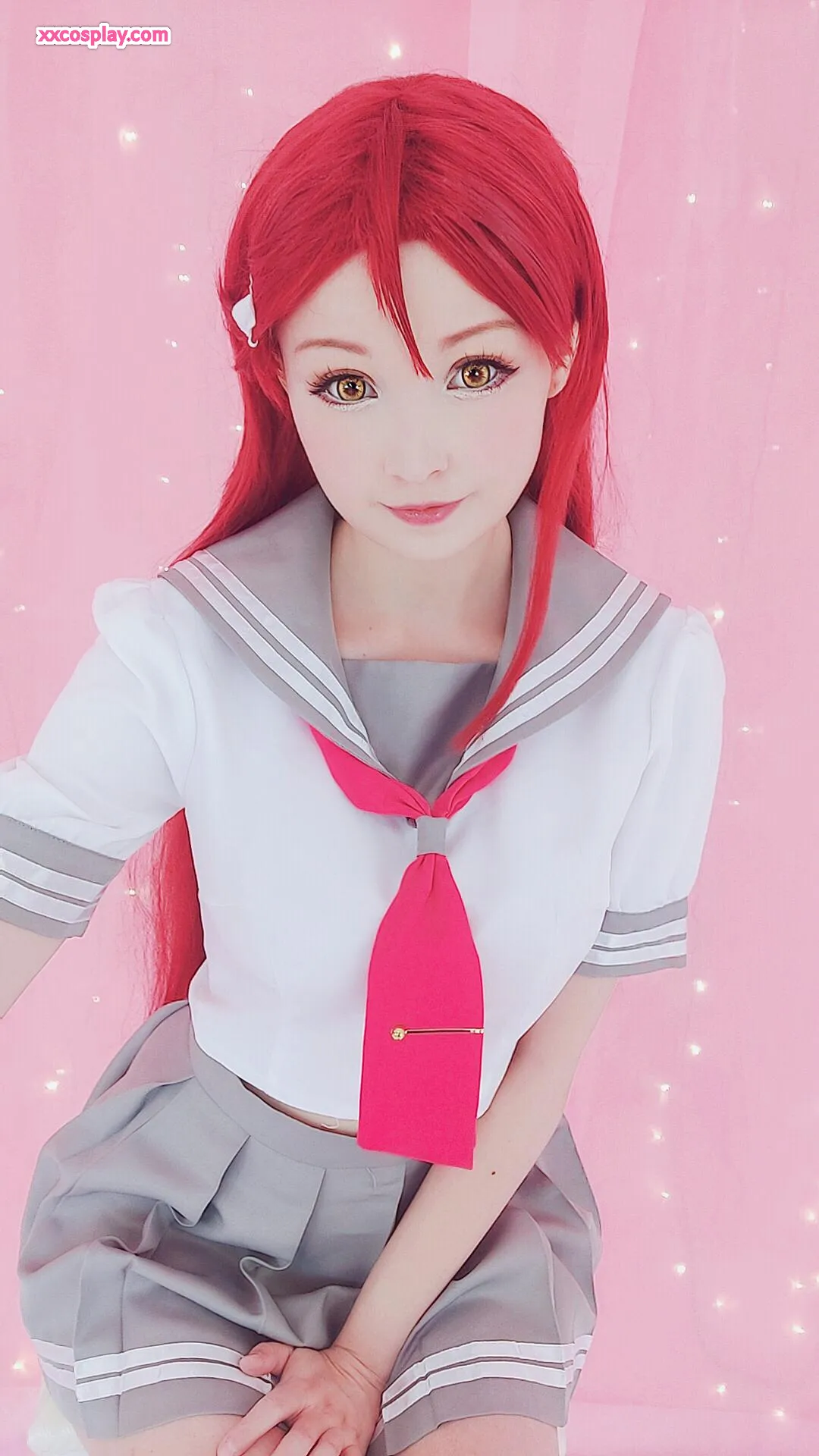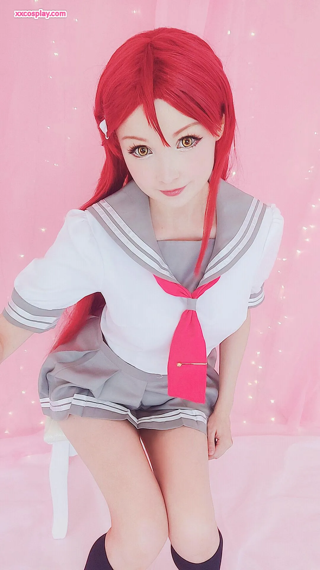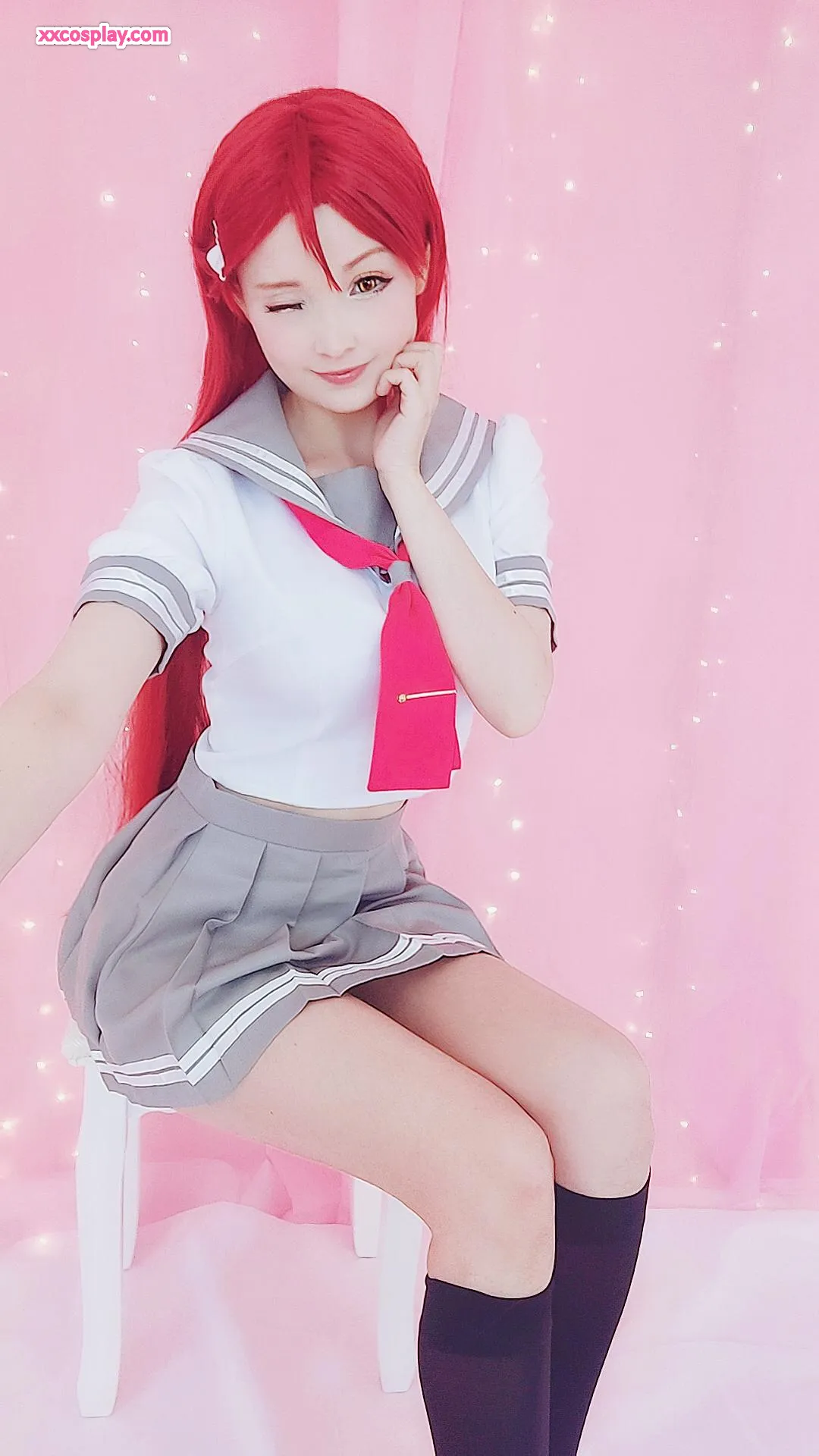 Hidori Rose sebagai Riko Sakurauchi dalam Lingerie Merah Renda Menggoda Hidori Lingerie Lace Stockings Cosplay