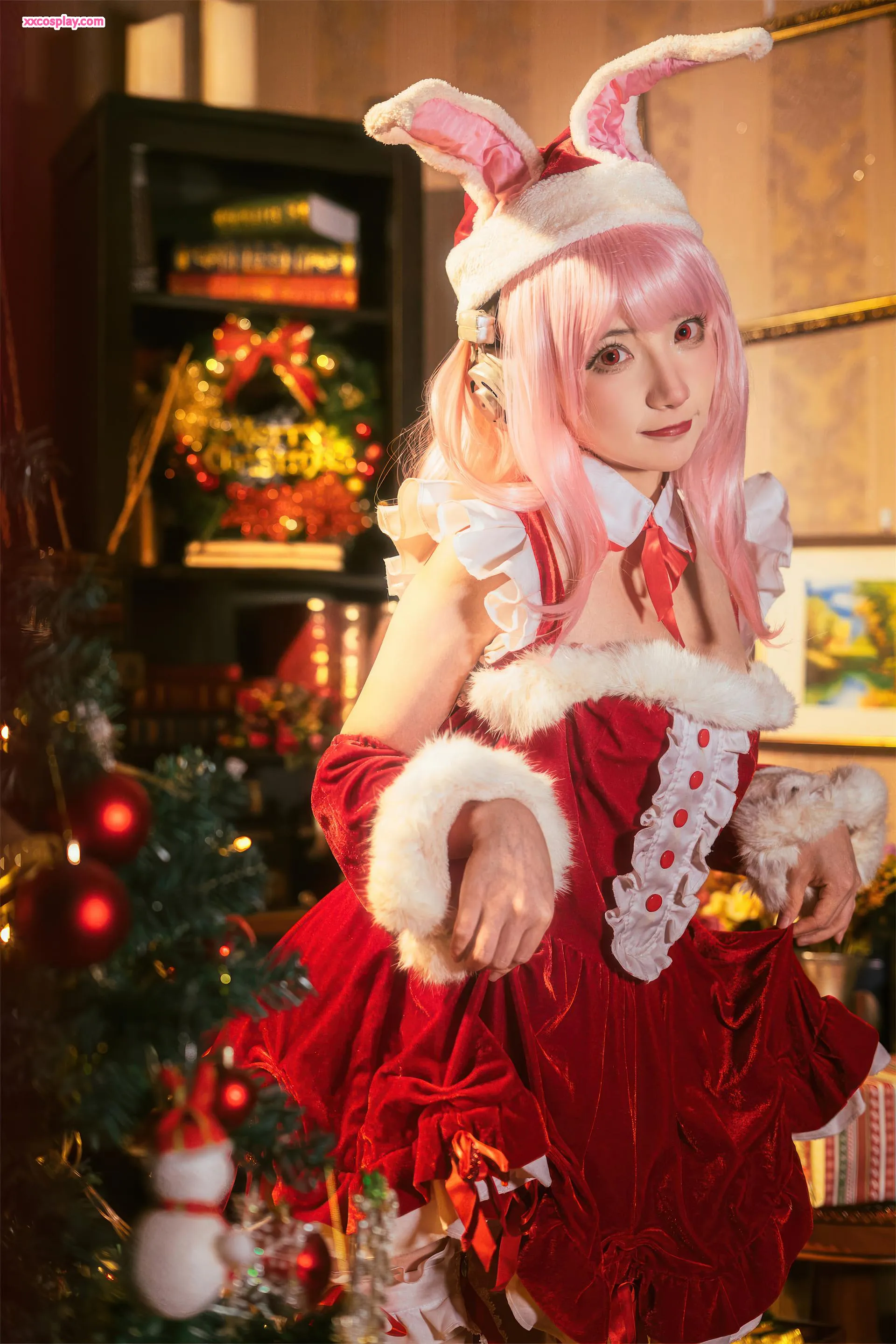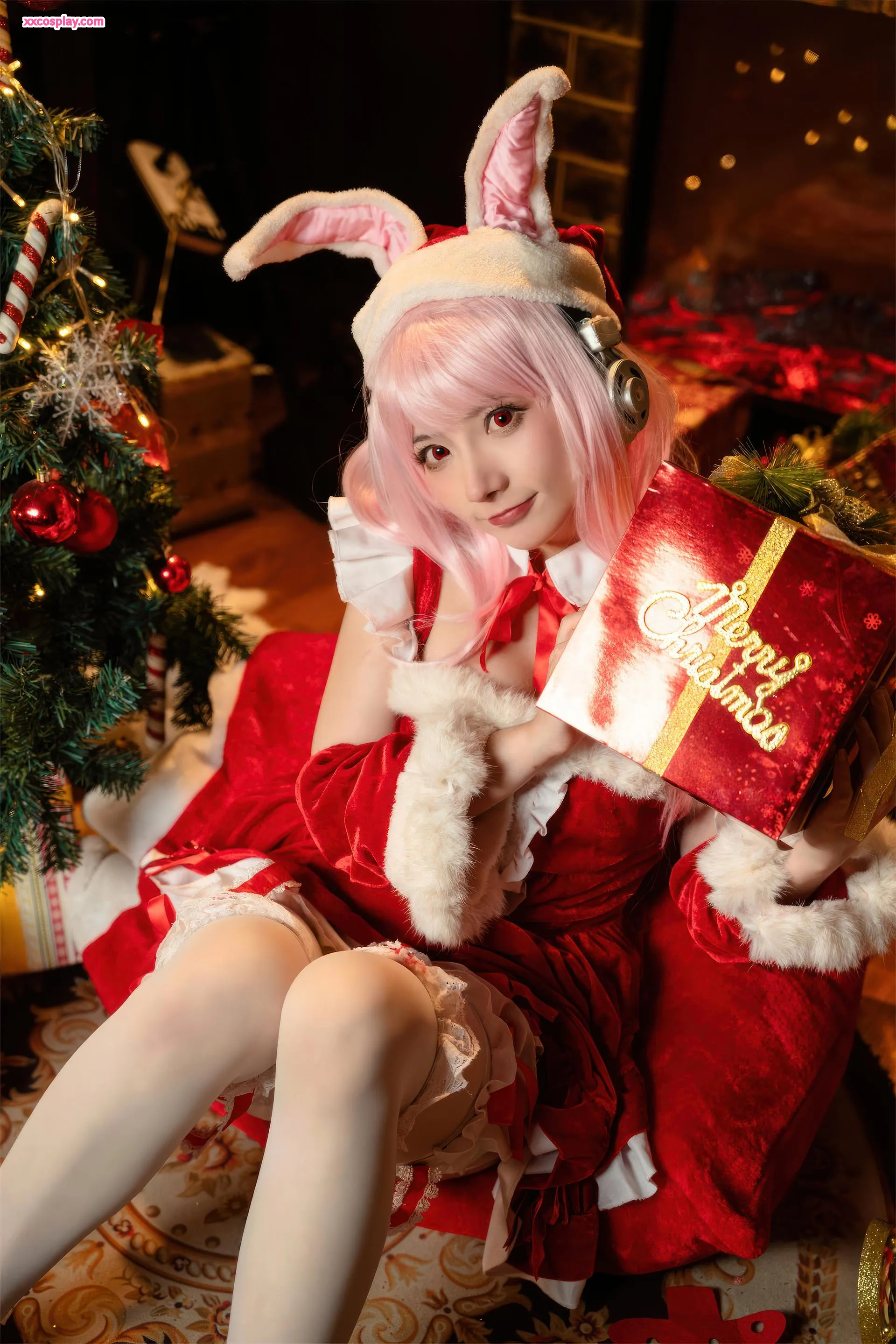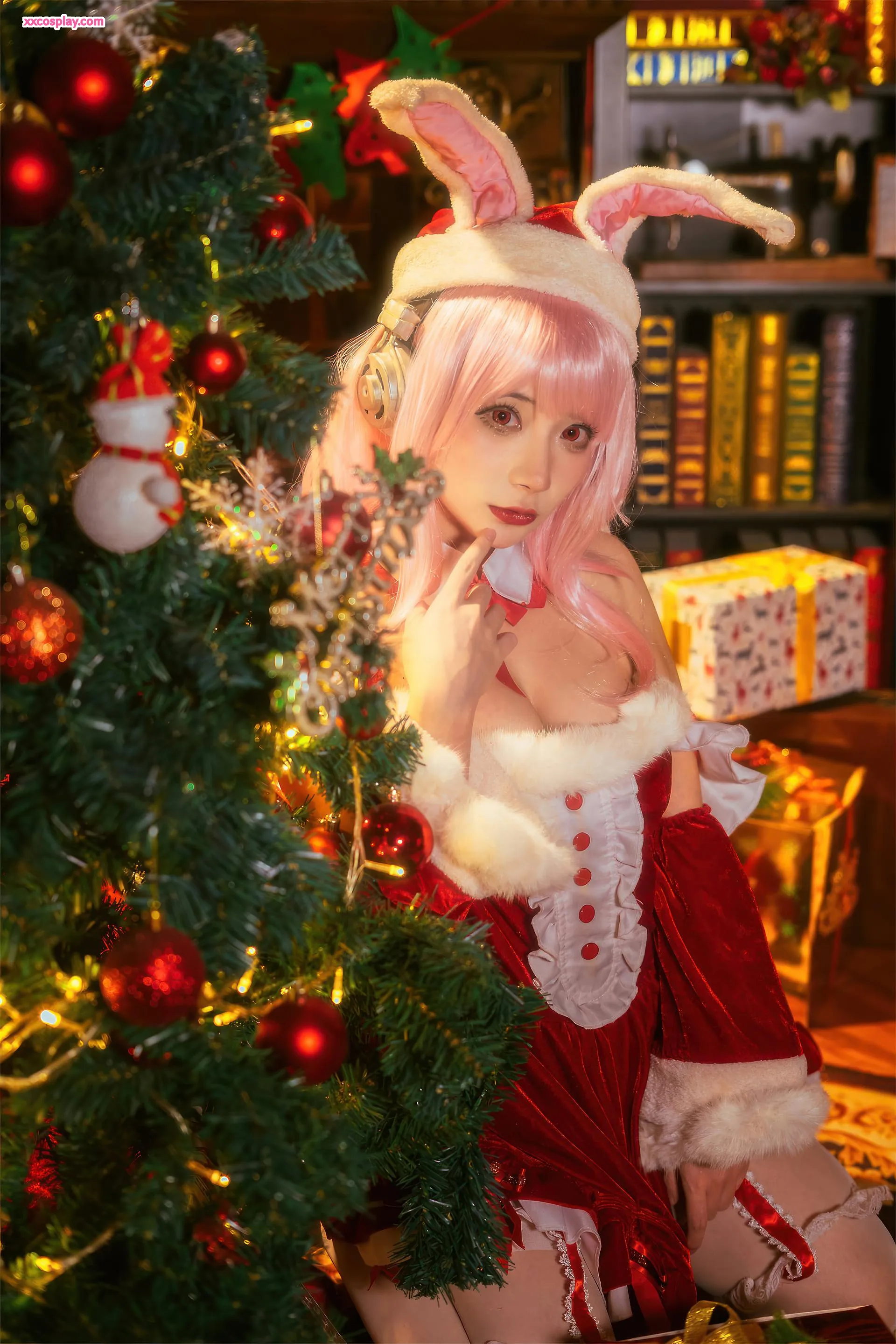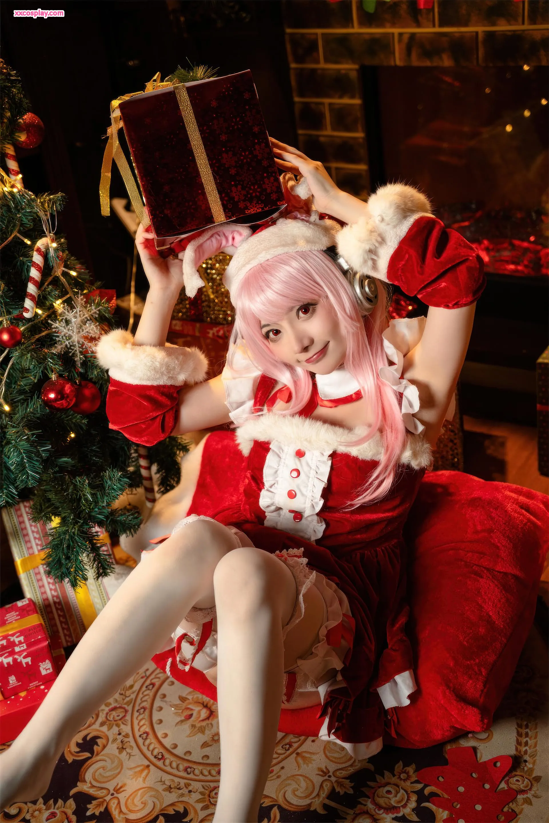Shisanbushishi W sebagai Super Sonico: Santa Kelinci Natal 是三不是世w Super Sonico Christmas Santa Cosplay