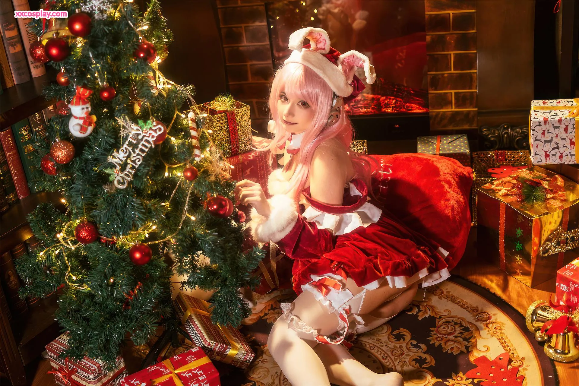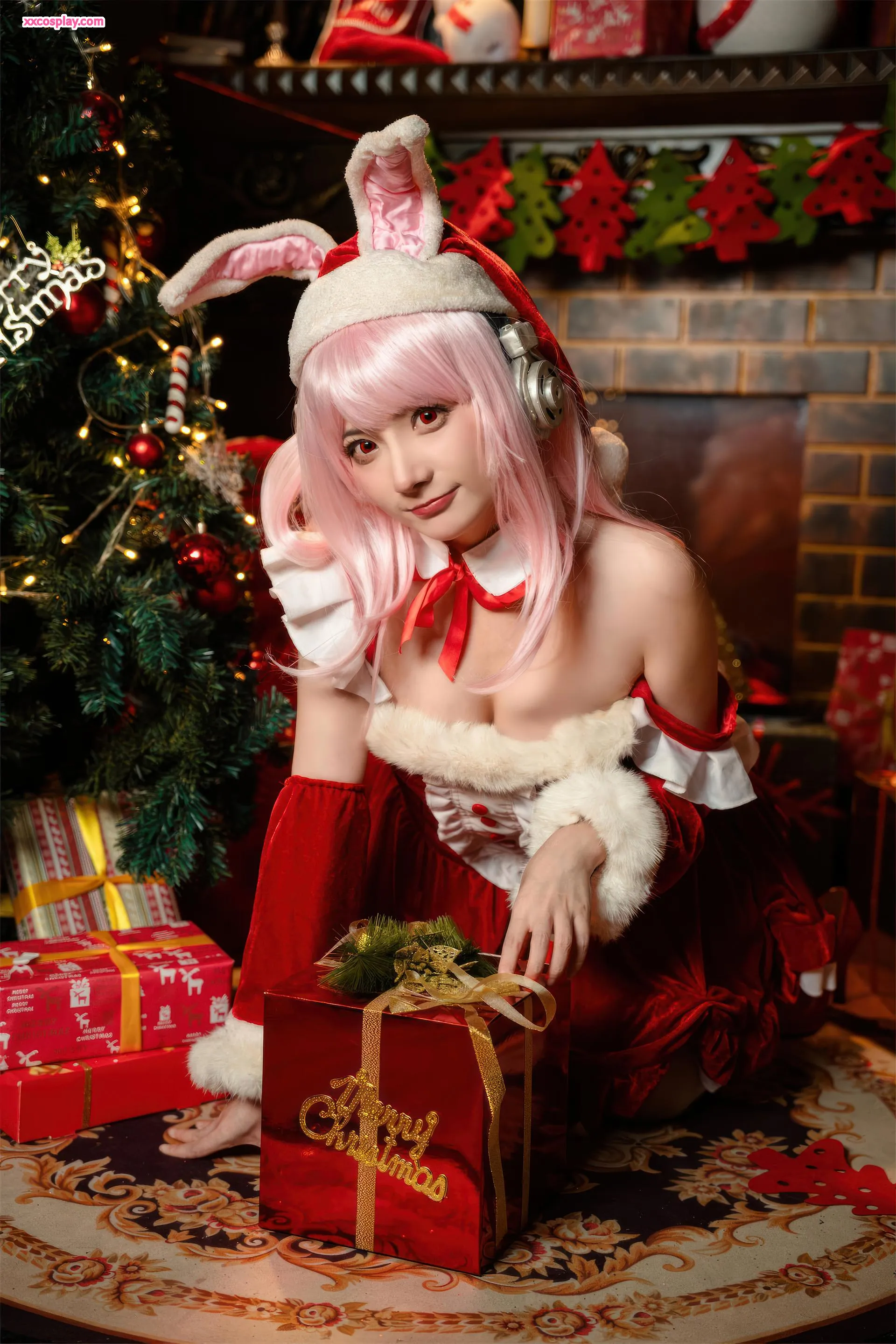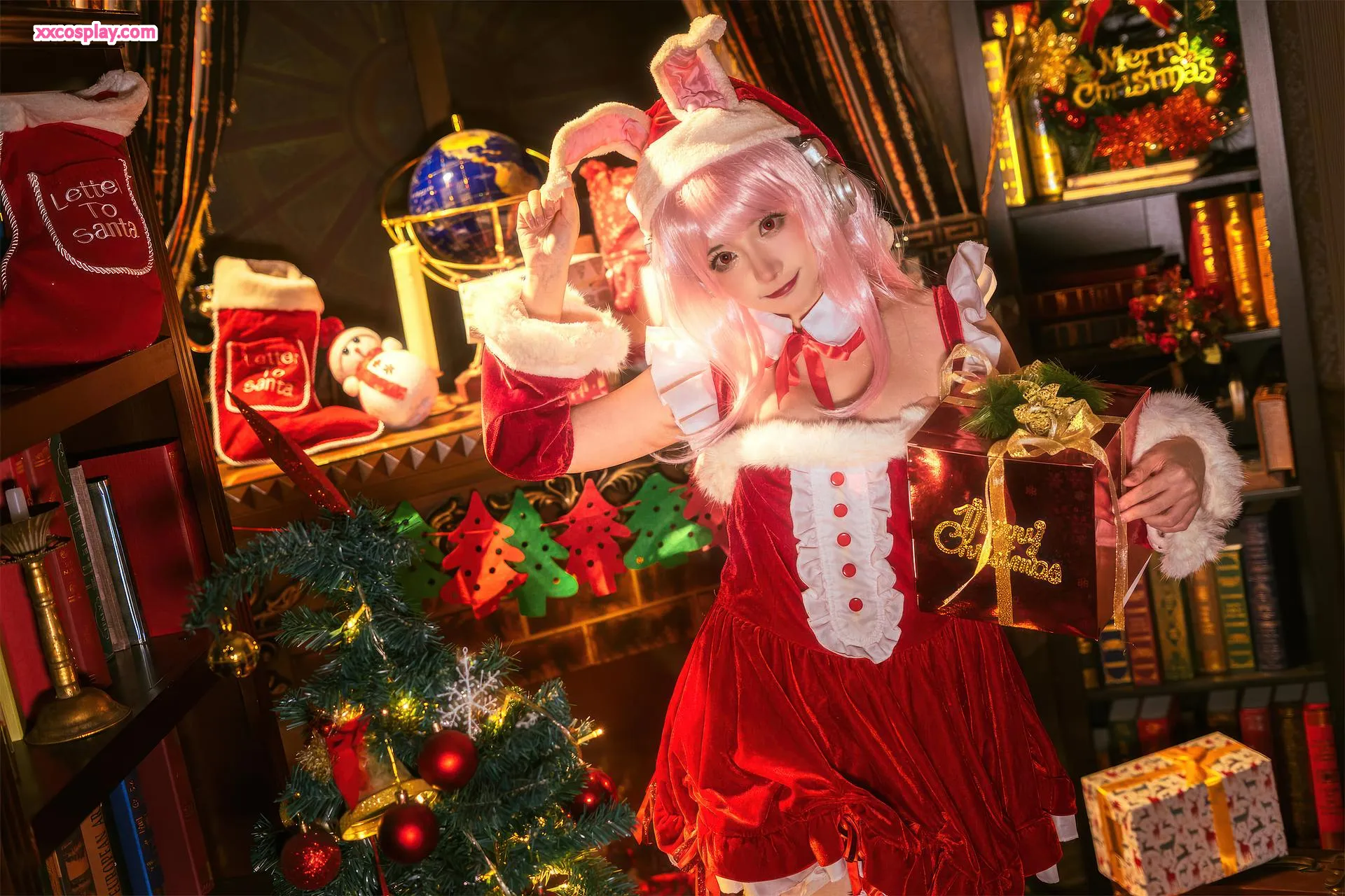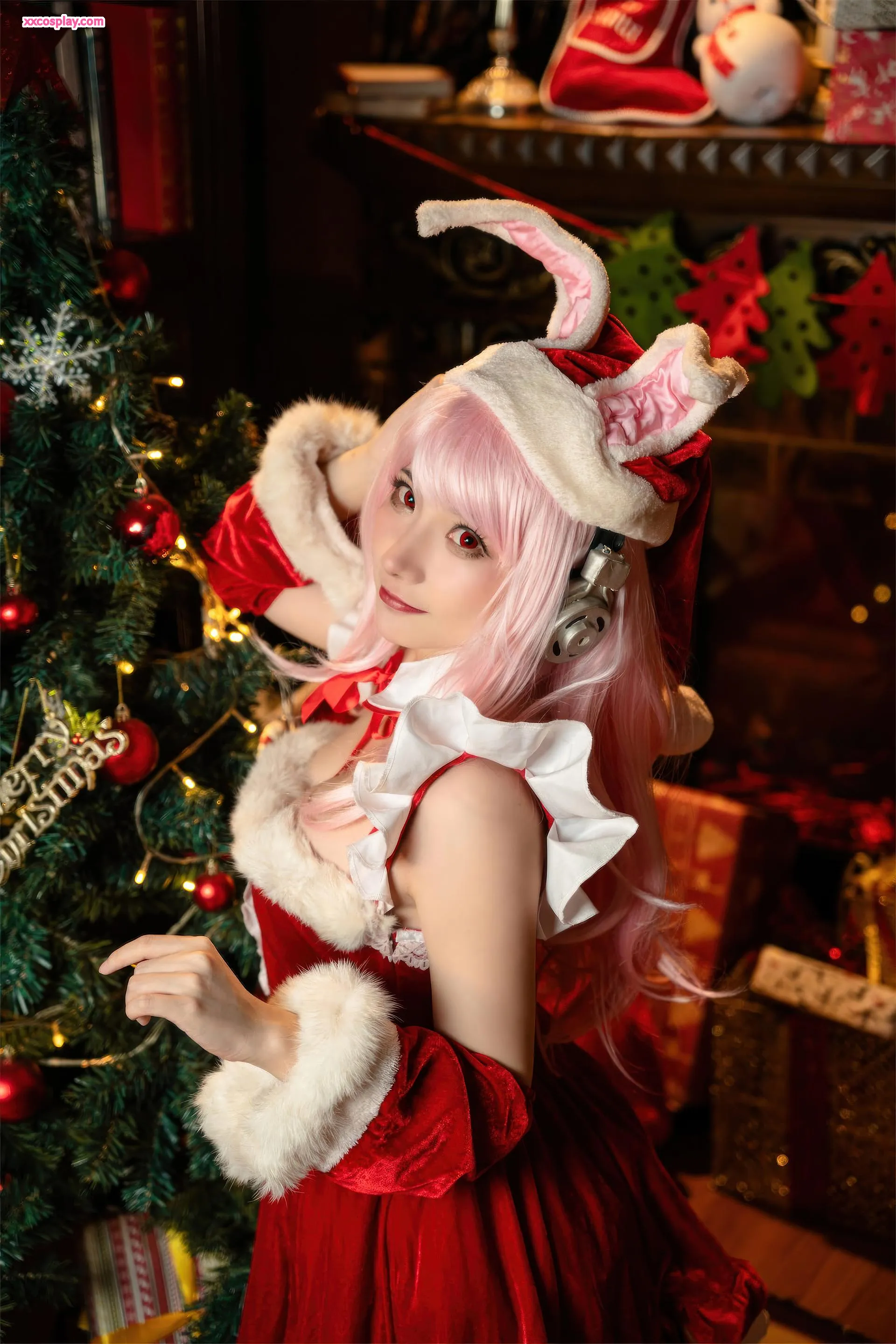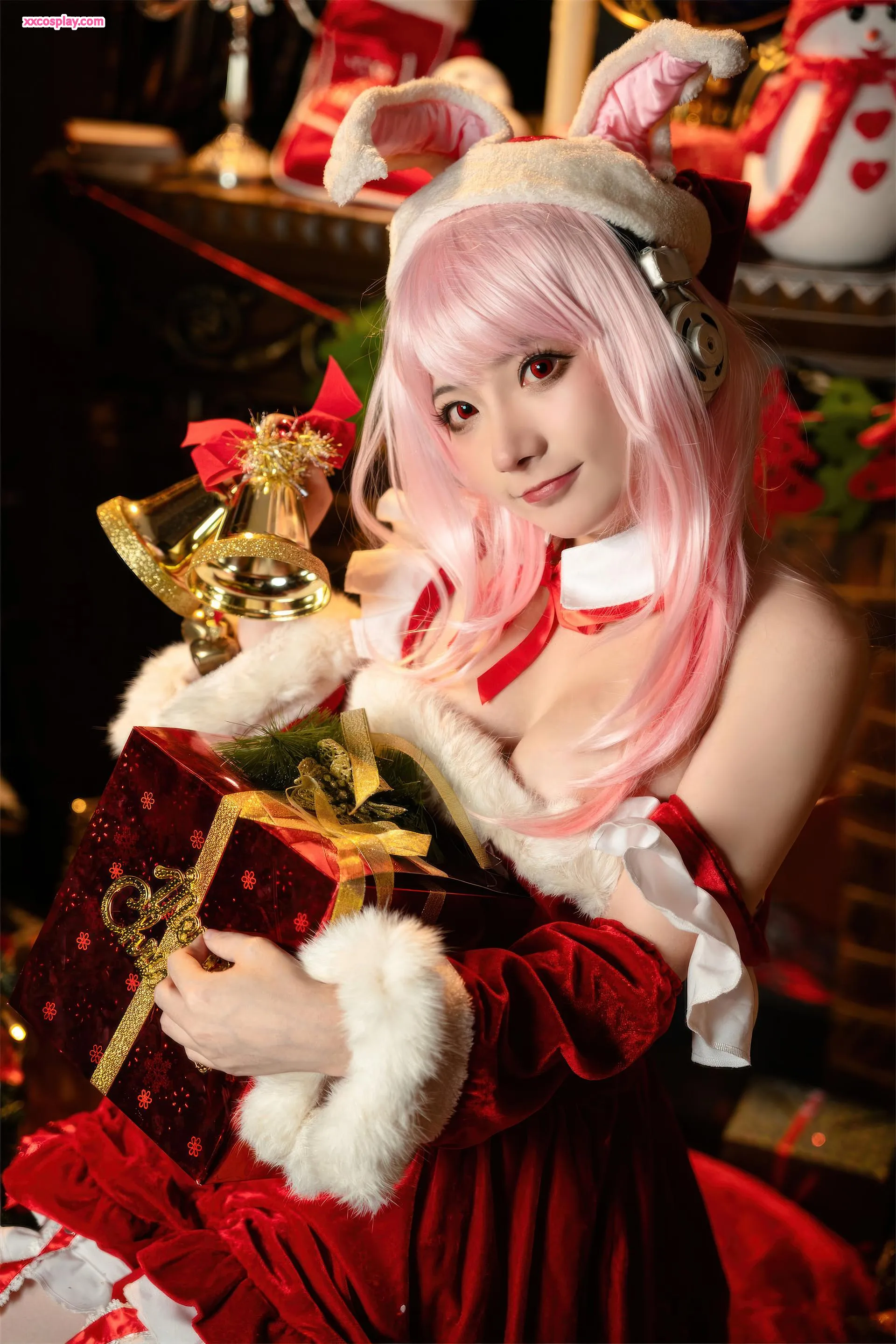 Shisanbushishi W sebagai Super Sonico: Santa Kelinci Natal 是三不是世w Super Sonico Christmas Santa Cosplay