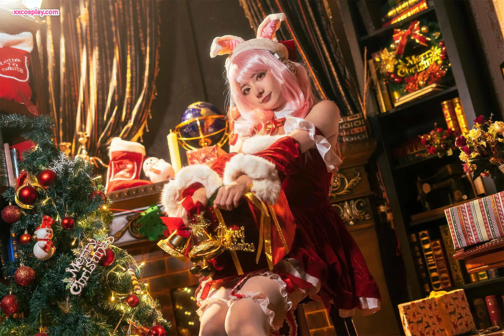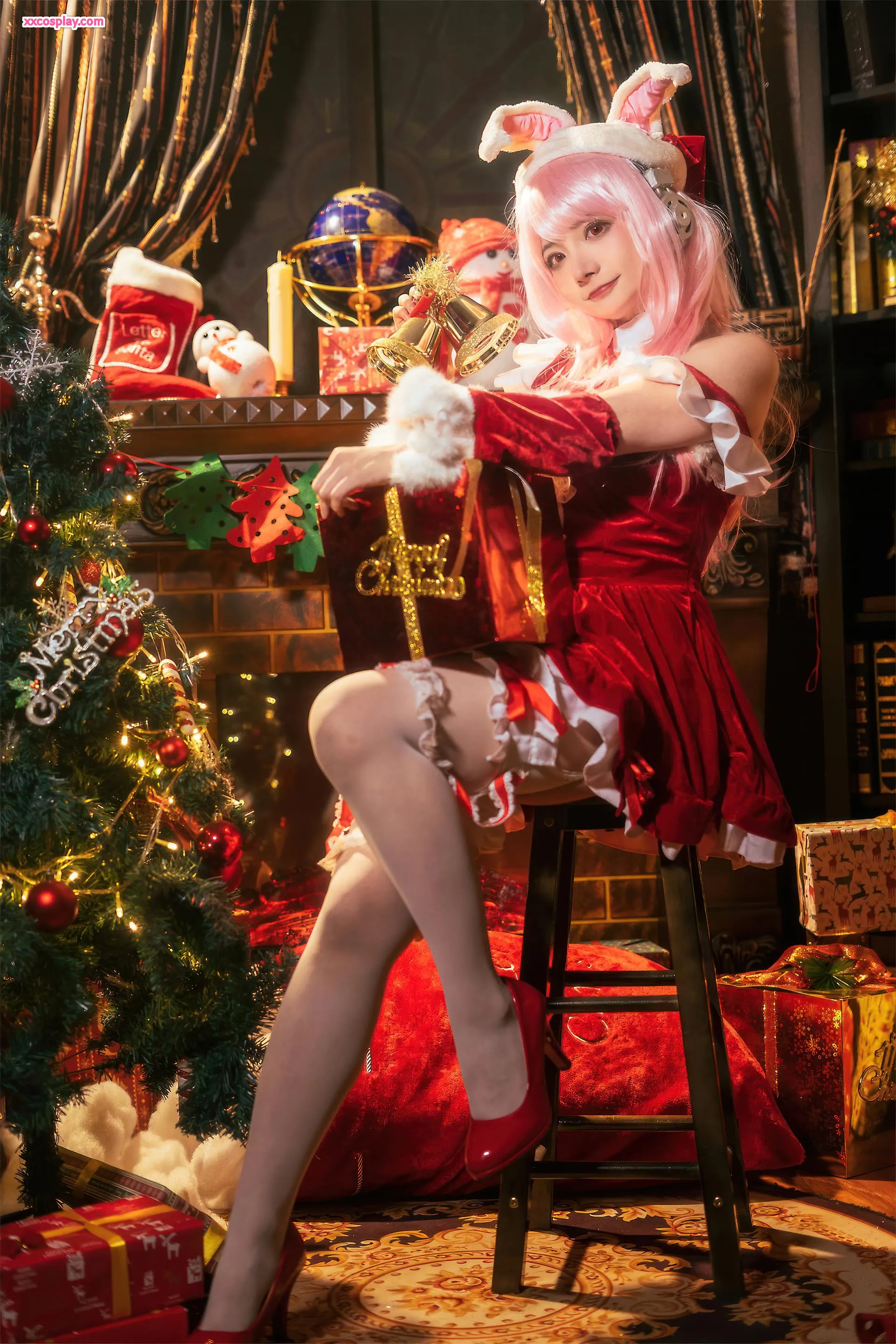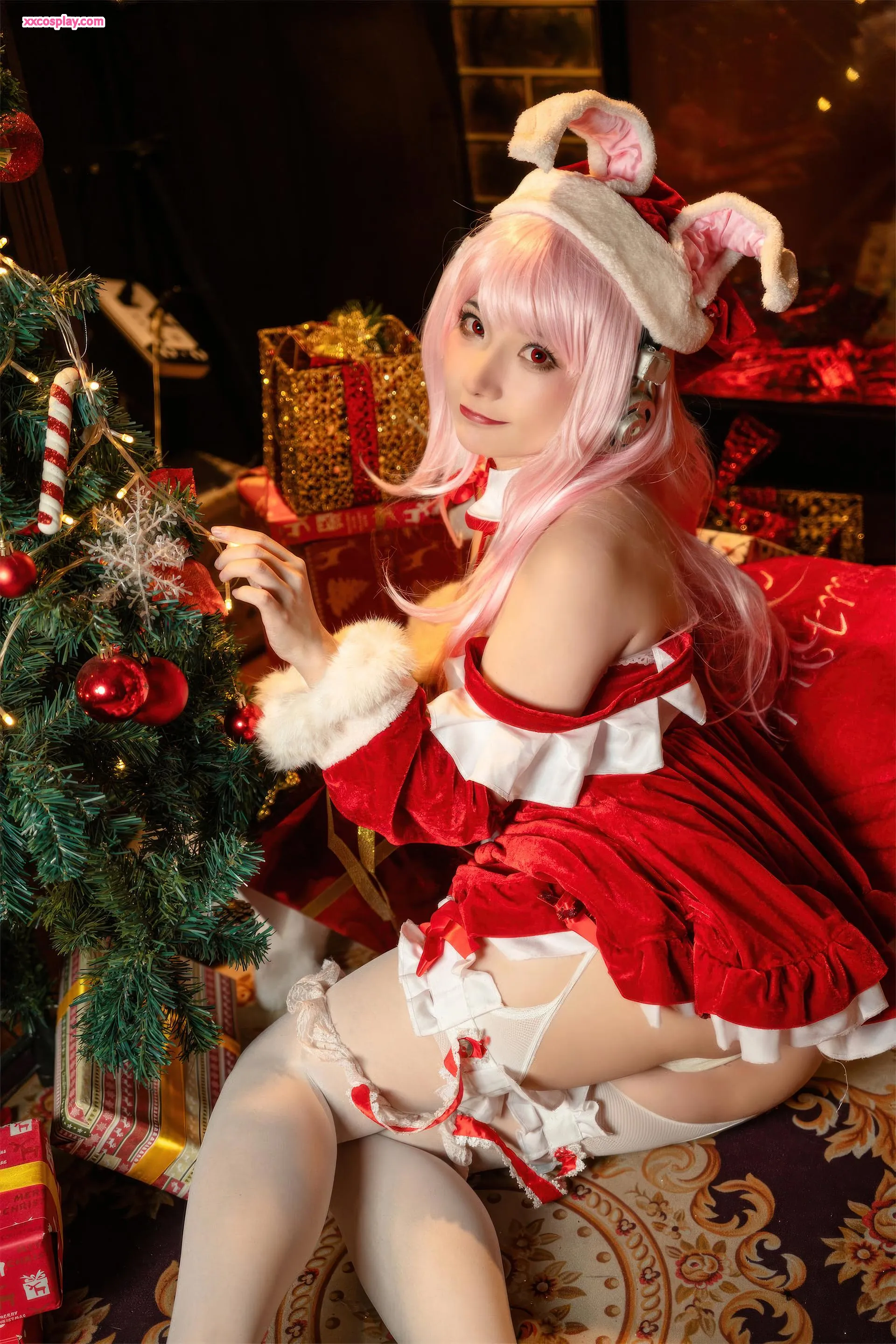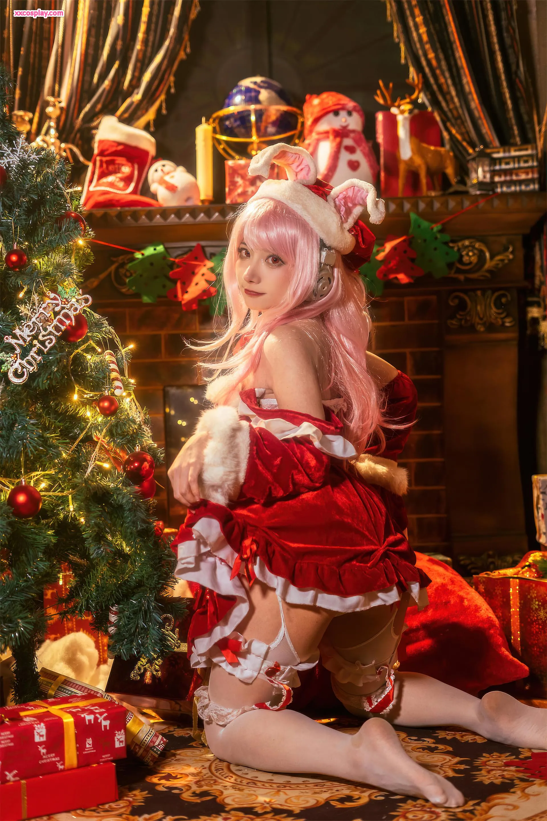 Shisanbushishi W sebagai Super Sonico: Santa Kelinci Natal 是三不是世w Super Sonico Christmas Santa Cosplay