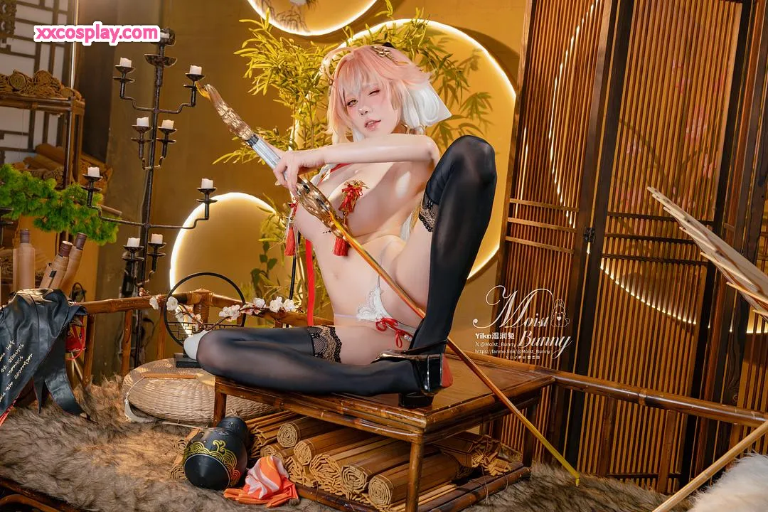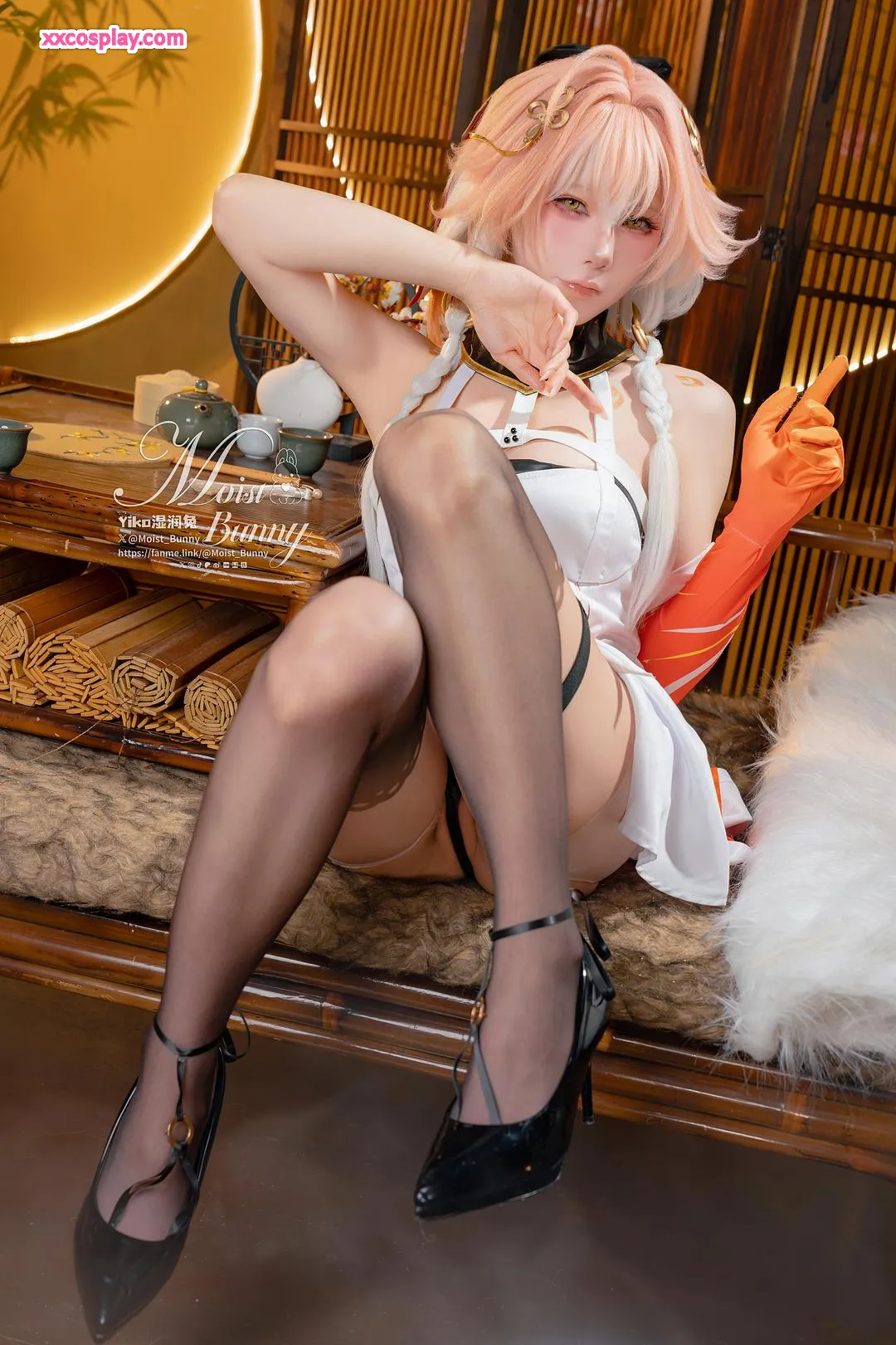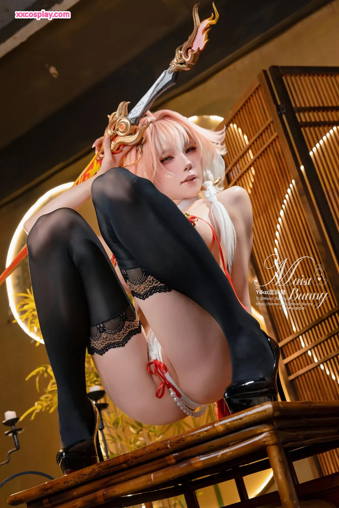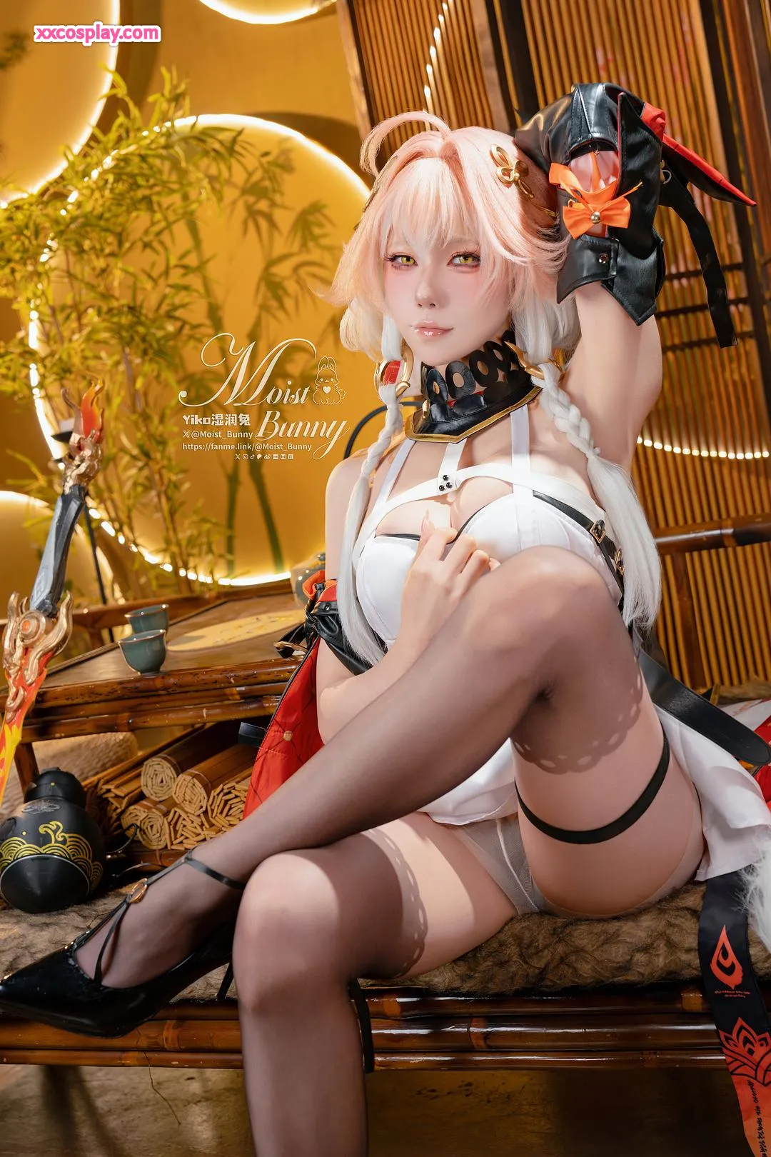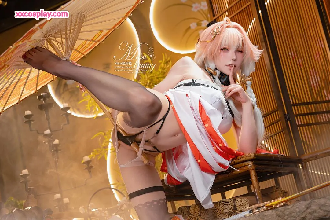 Yiko Wet Rabbit sebagai Changli dari Wuthering Waves 咬一口兔娘 Changli Wuthering Waves Lingerie Stockings