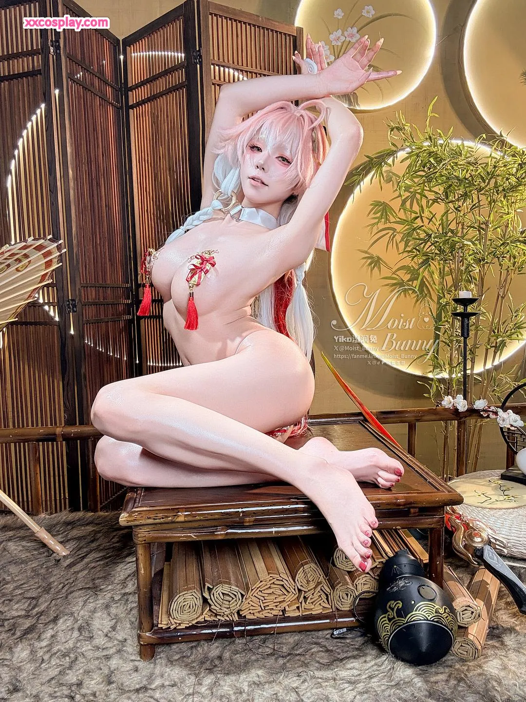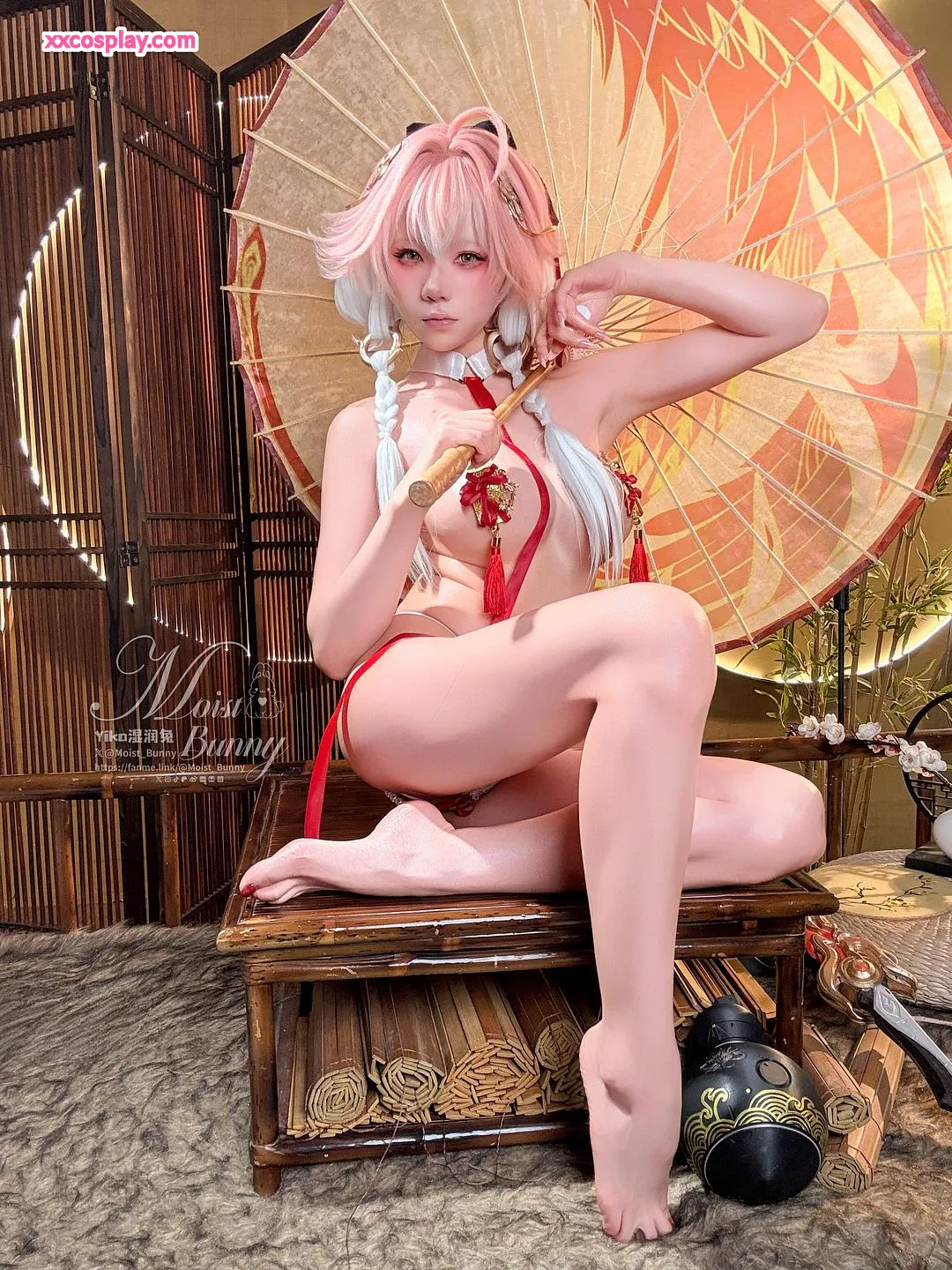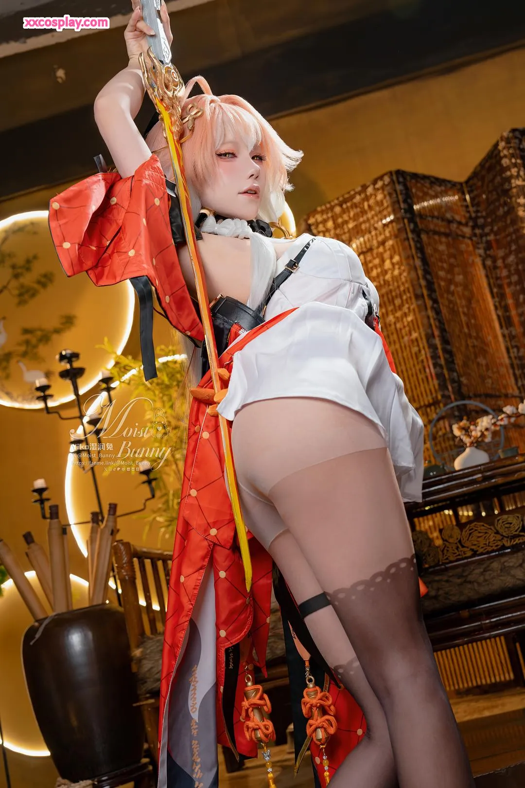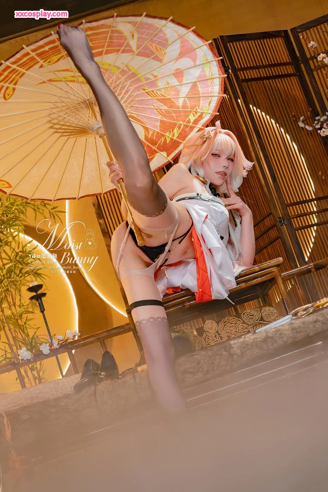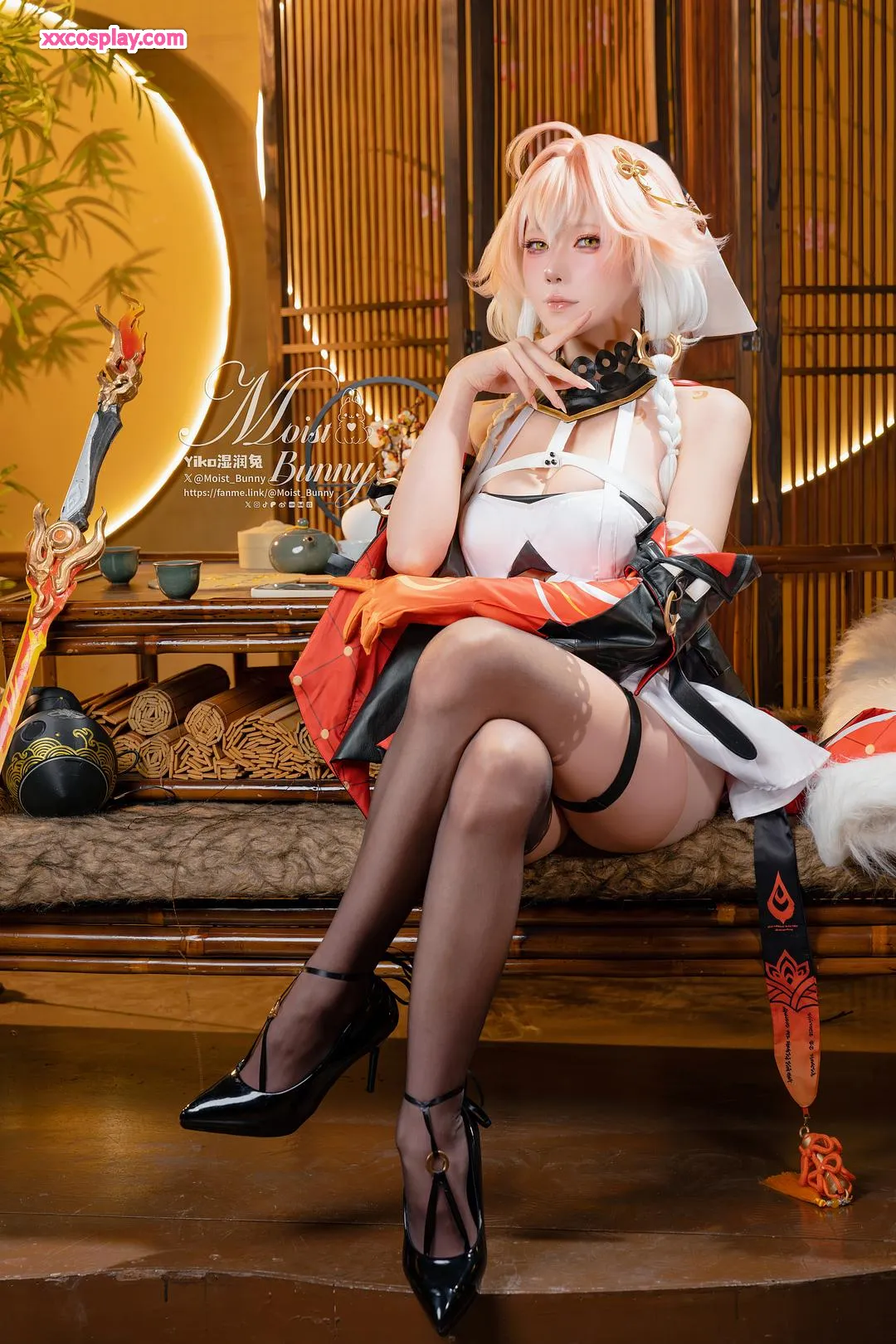 Yiko Wet Rabbit sebagai Changli dari Wuthering Waves 咬一口兔娘 Changli Wuthering Waves Lingerie Stockings