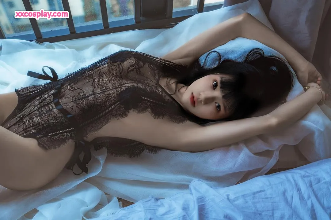 체리 미아우의 매혹적인 블랙 레이스 란제리
