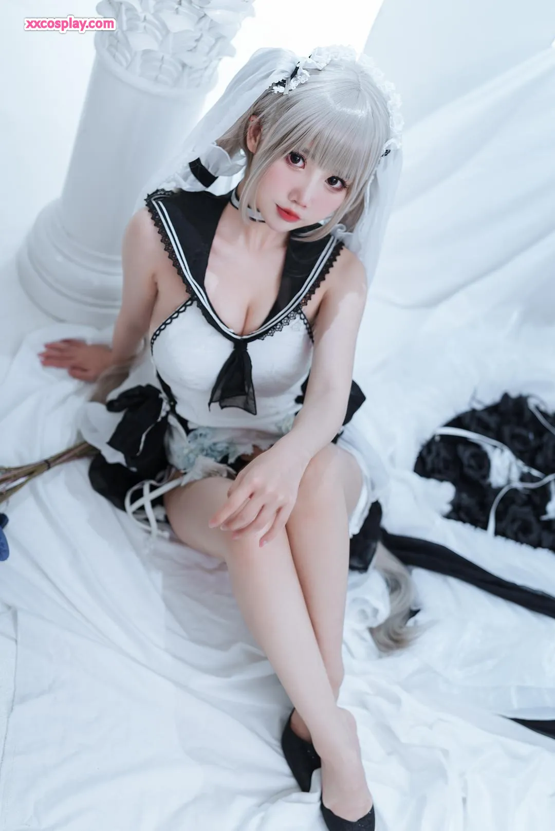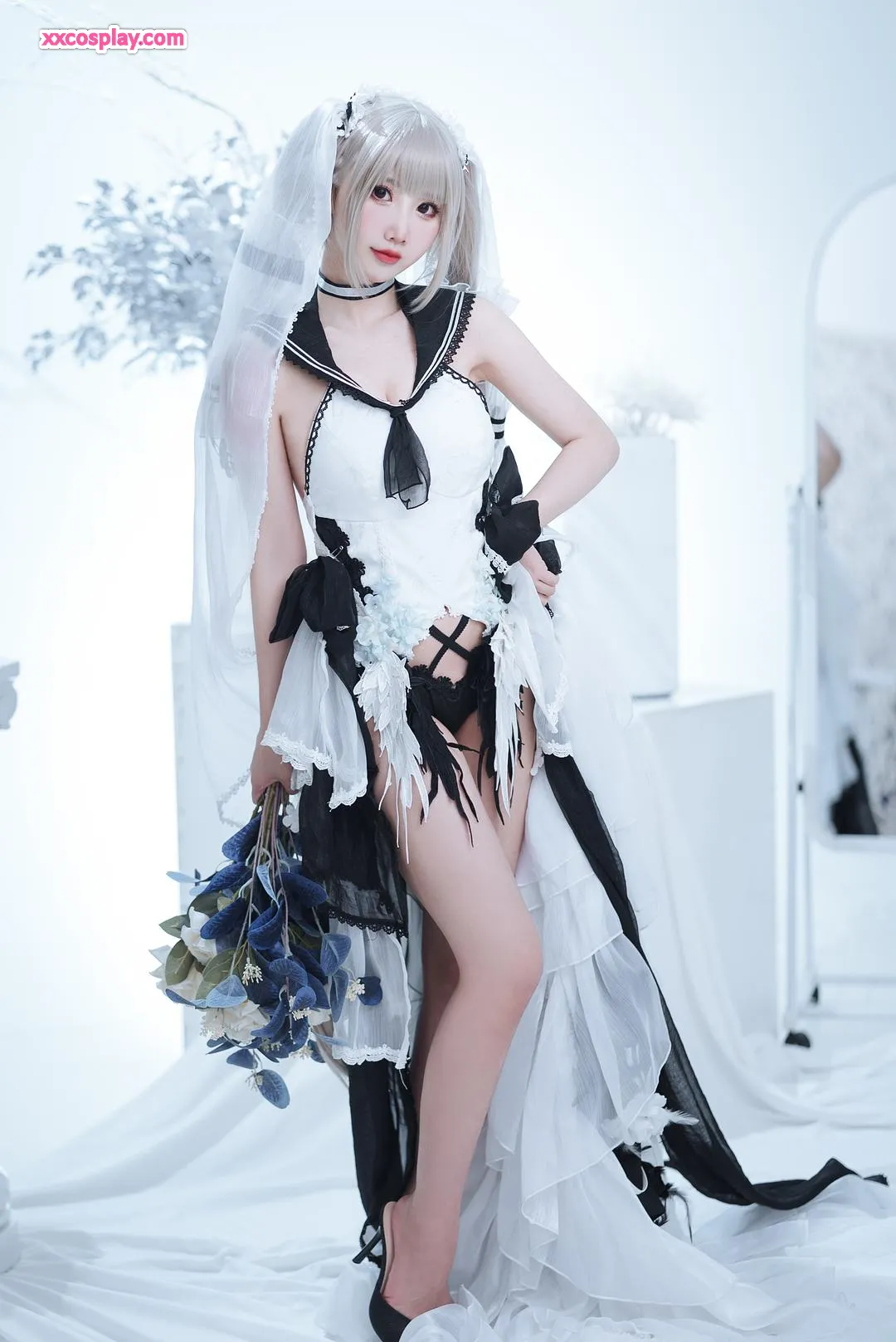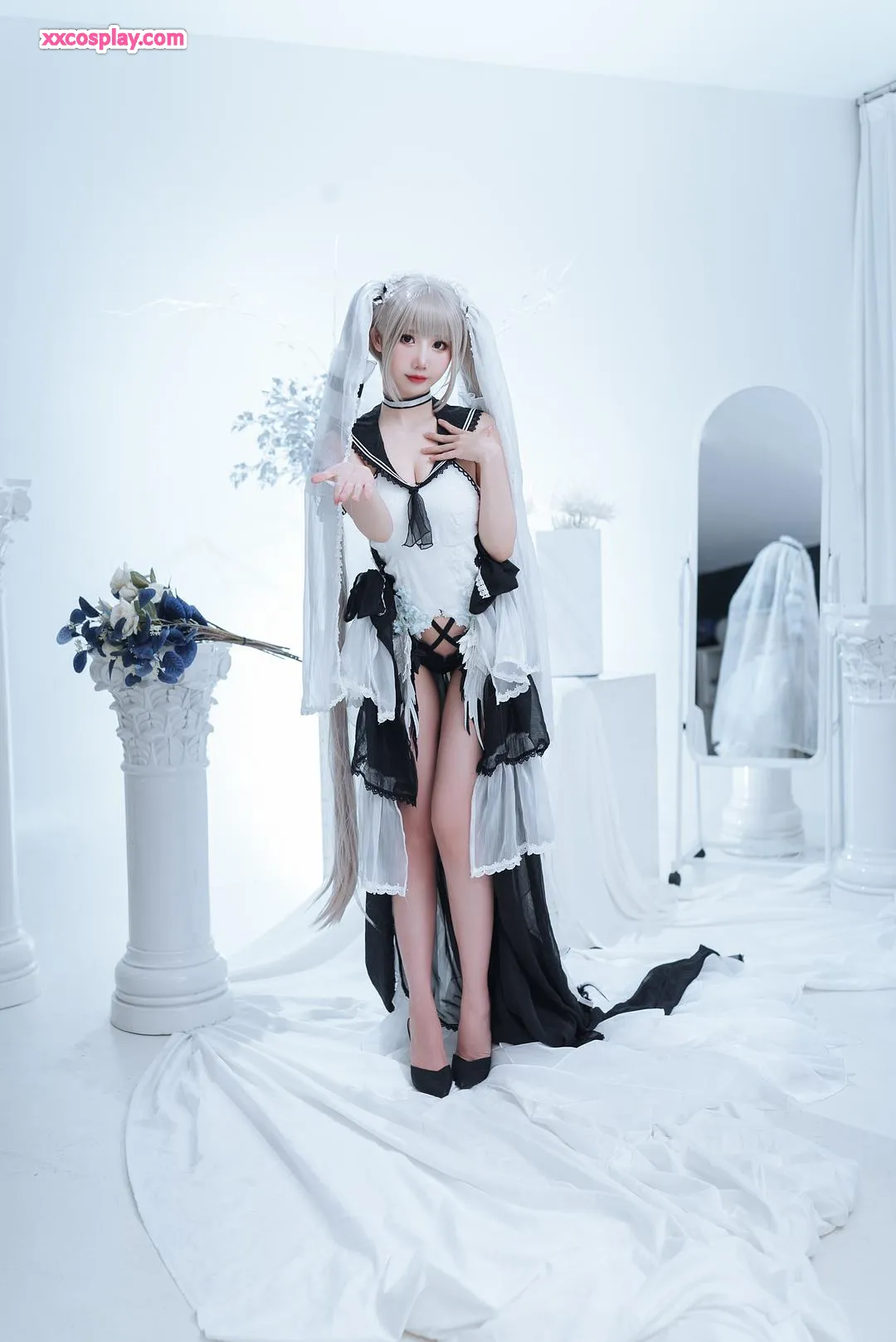 Mianbing Xianer sebagai Formidable Gaun Pengantin (Azur Lane) 面饼仙儿 Azur Lane Bride Cosplay Formidable