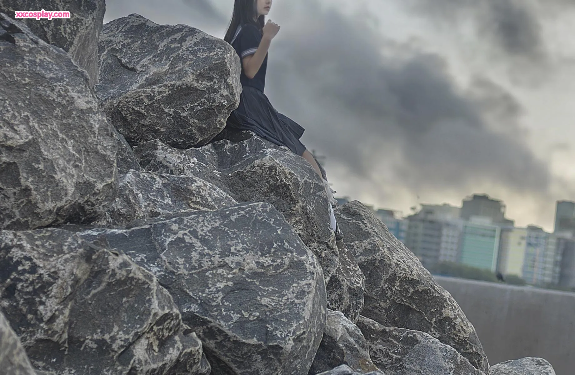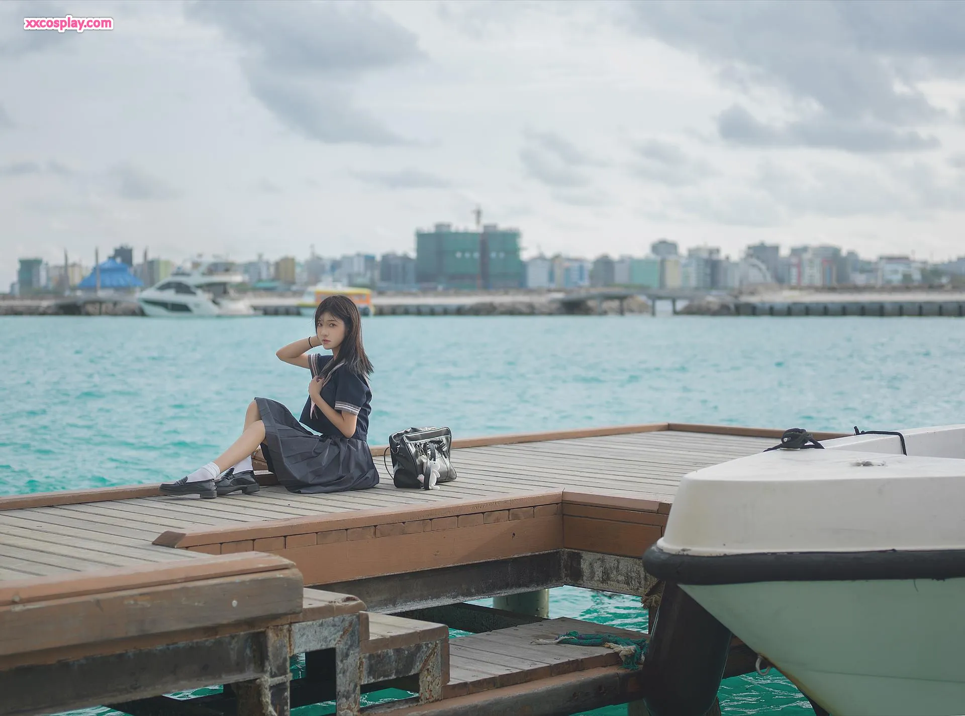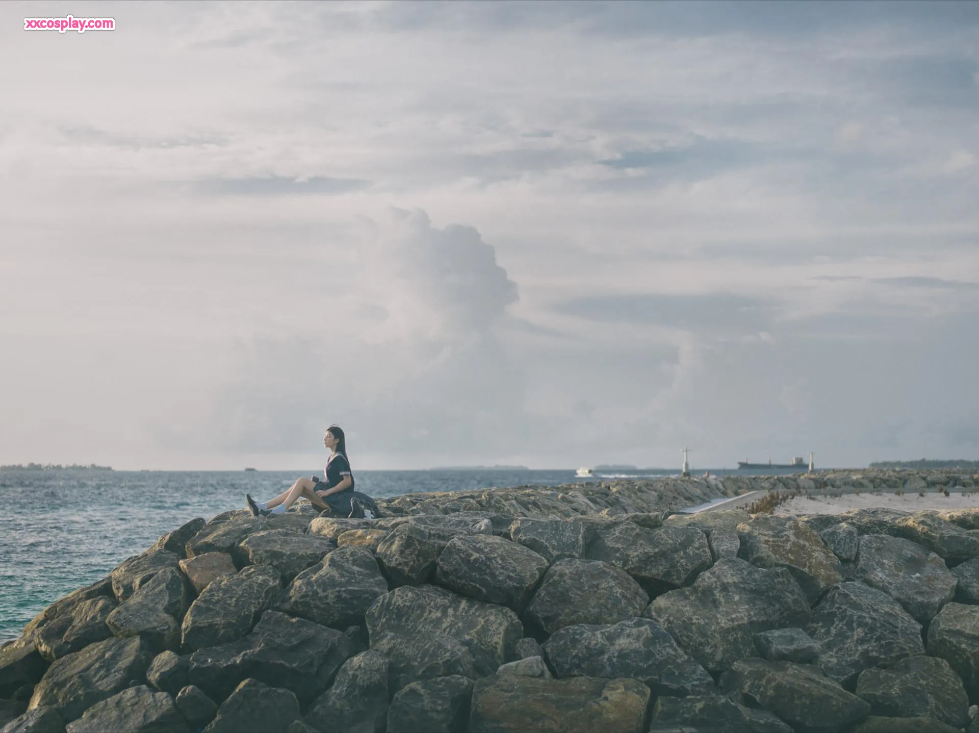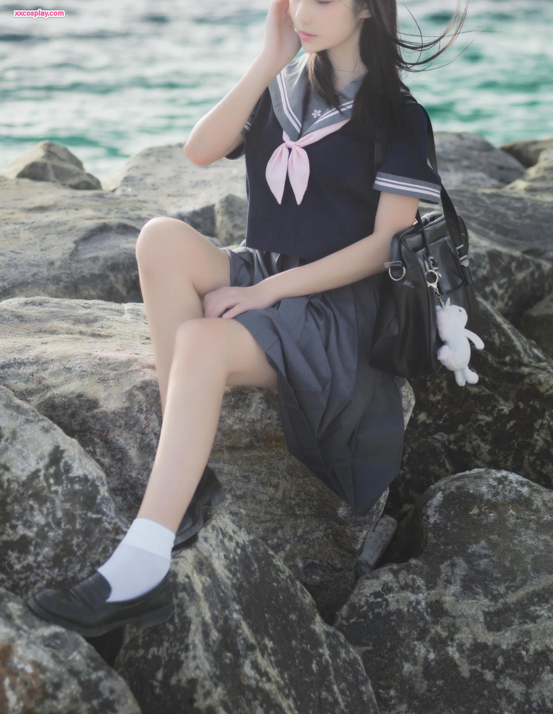 Nantao Momoko - Uniforme Escolar Azul à Beira-Mar Gravure 南桃Momoko School Uniform Seaside Gravure Outdoor