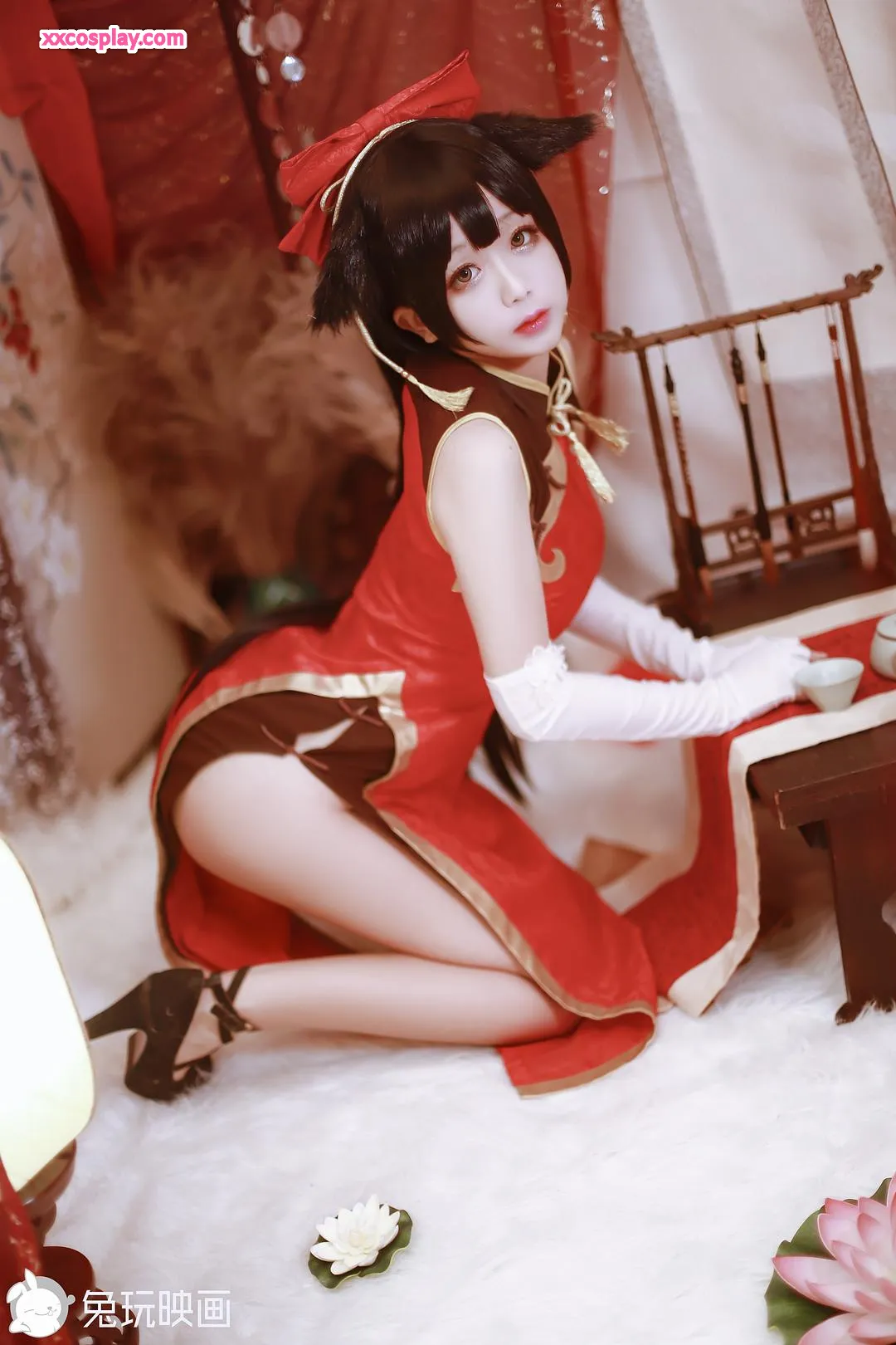 兔玩映画 ชุดกี่เพ้าสีแดงไคโอซิุง