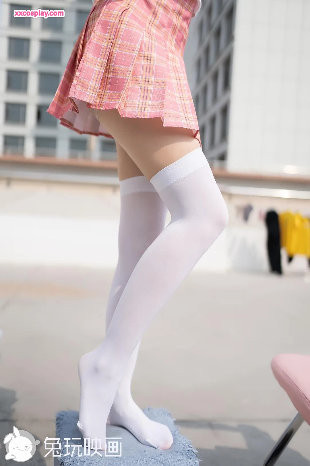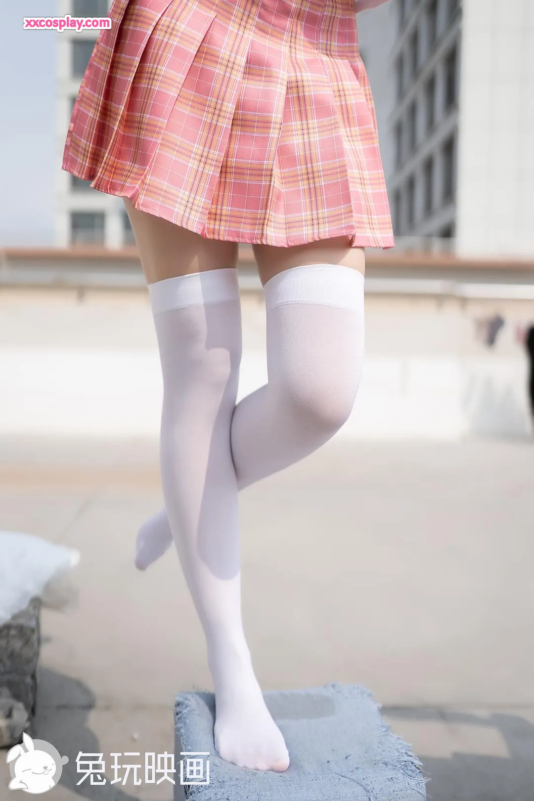 兔玩映画: สาวชุดนักเรียนอาบแดดบนดาดฟ้า