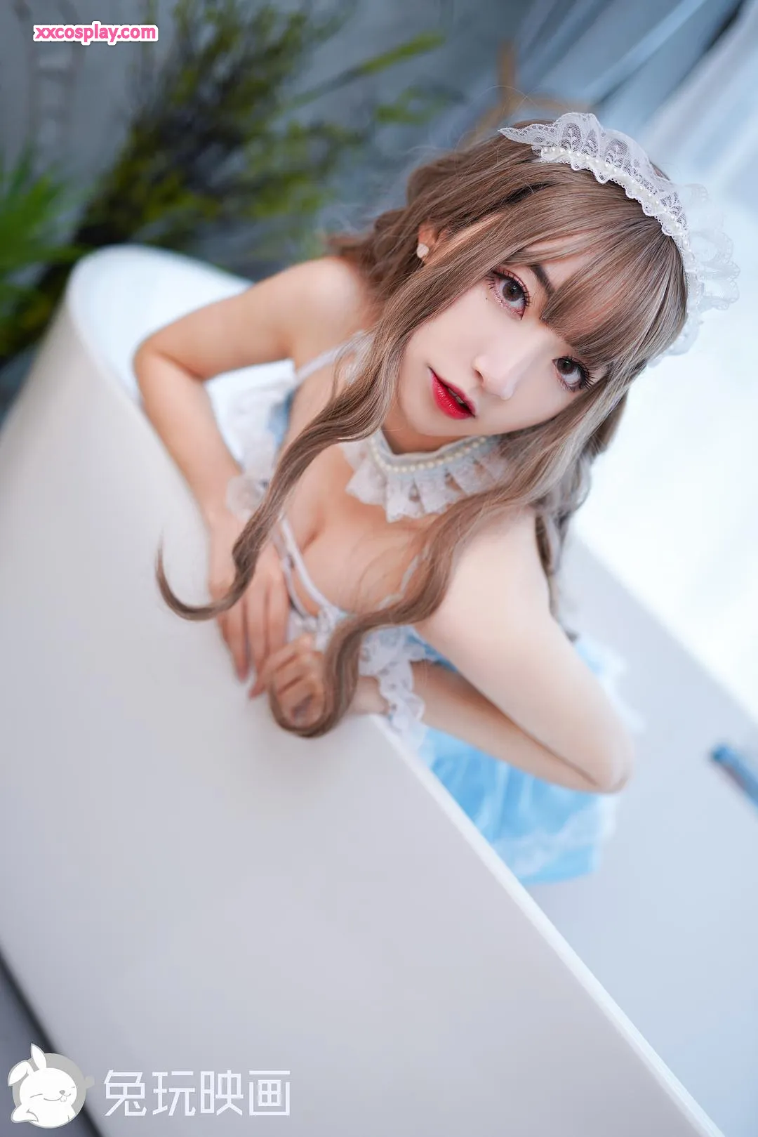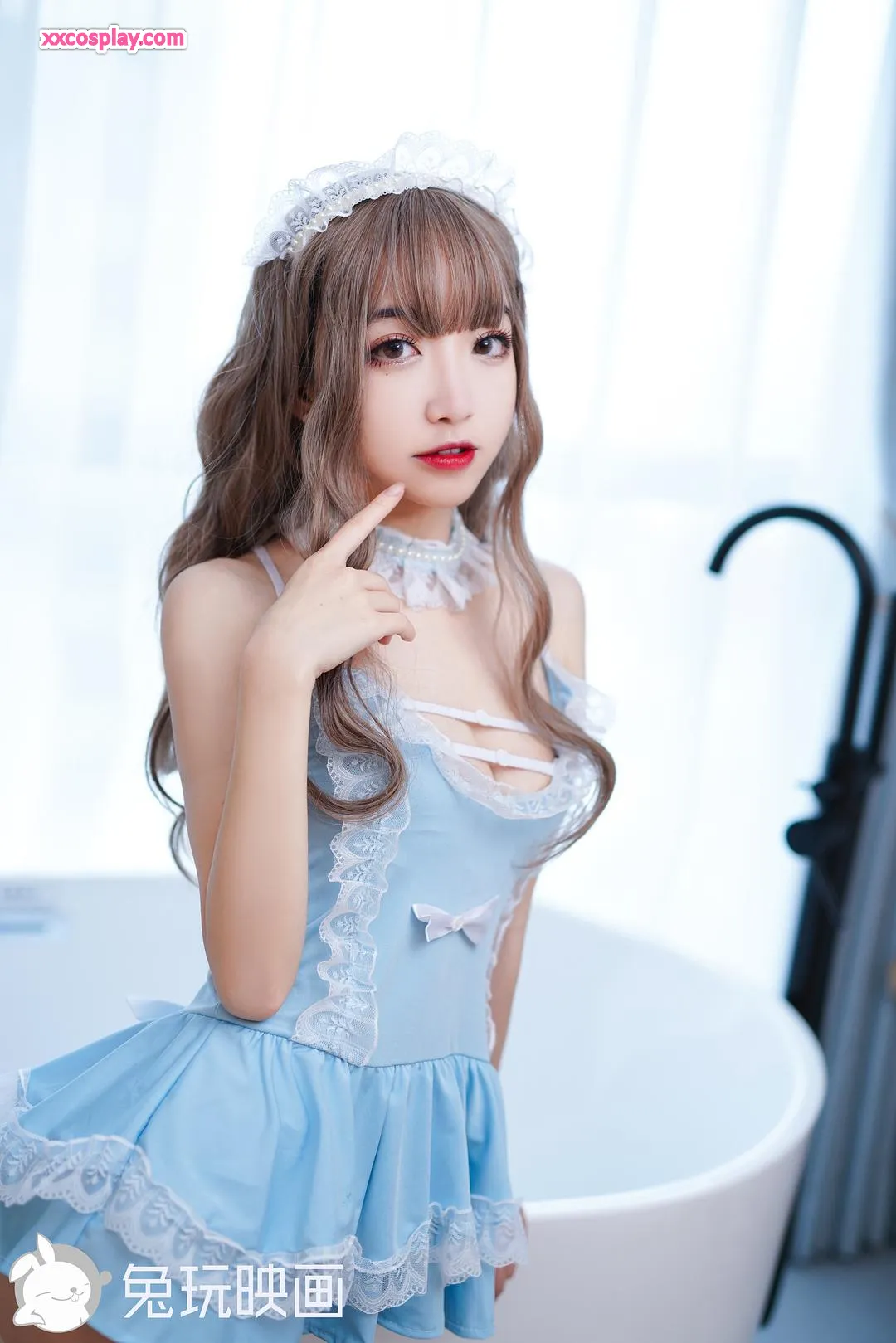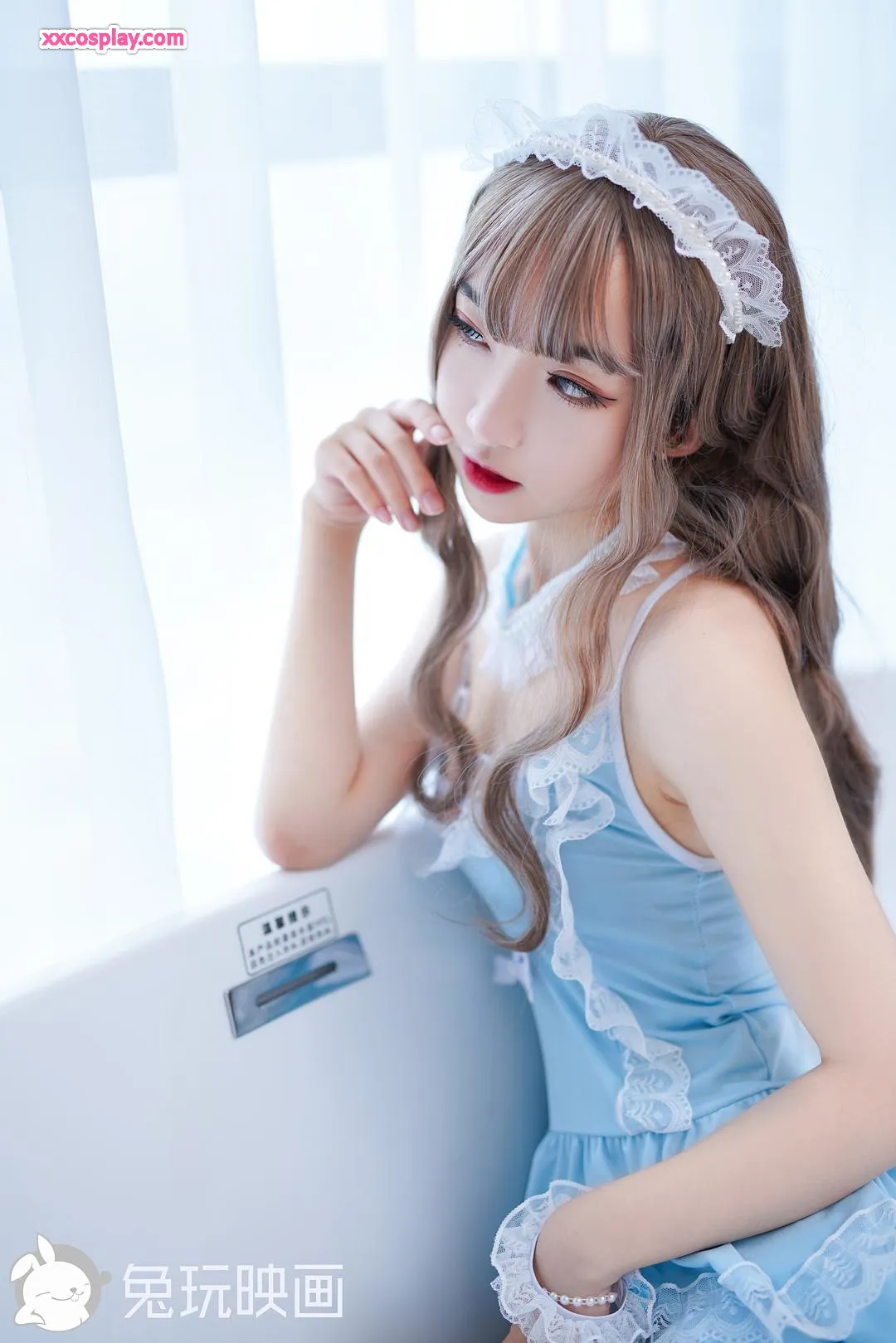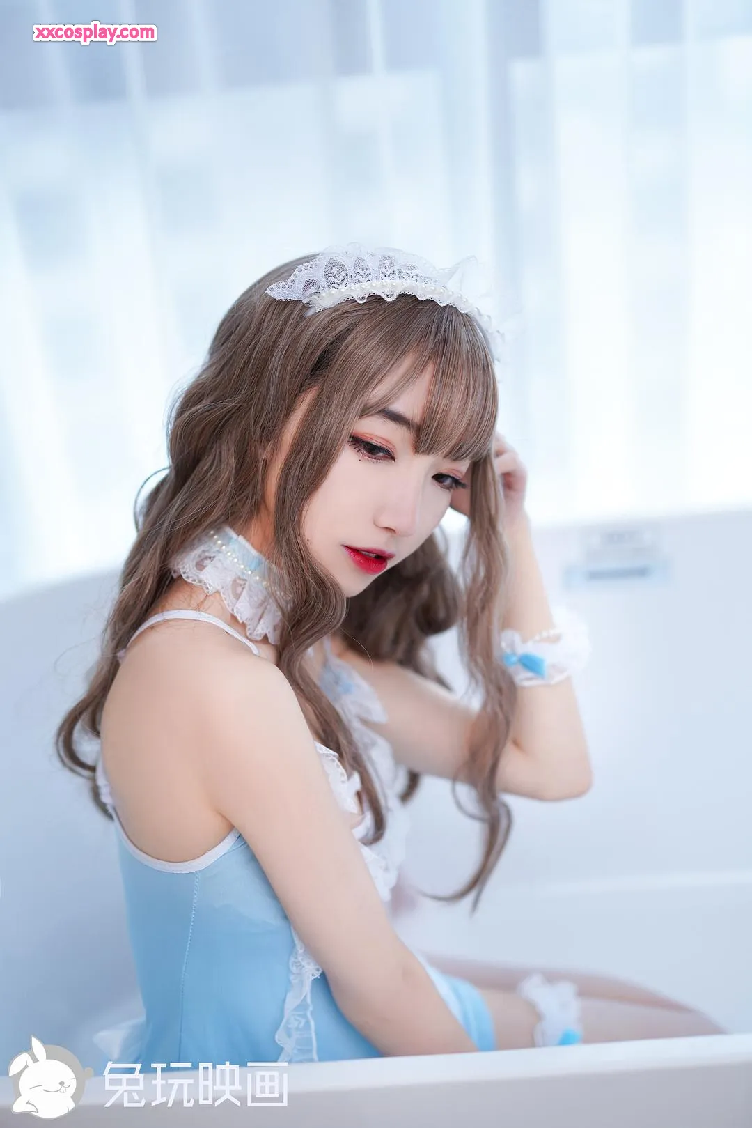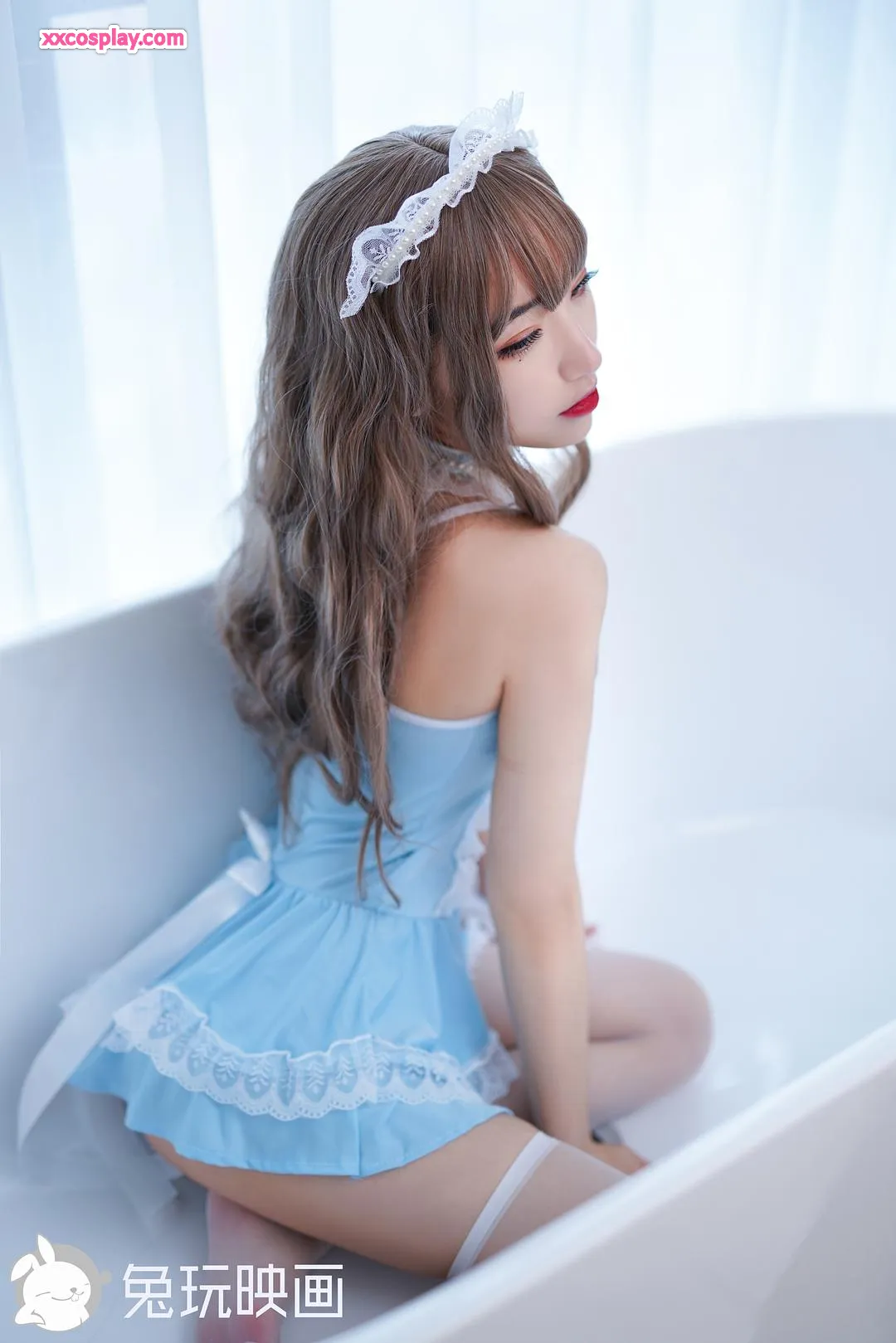 兔玩映画:浴缸小蓝蕾丝裙